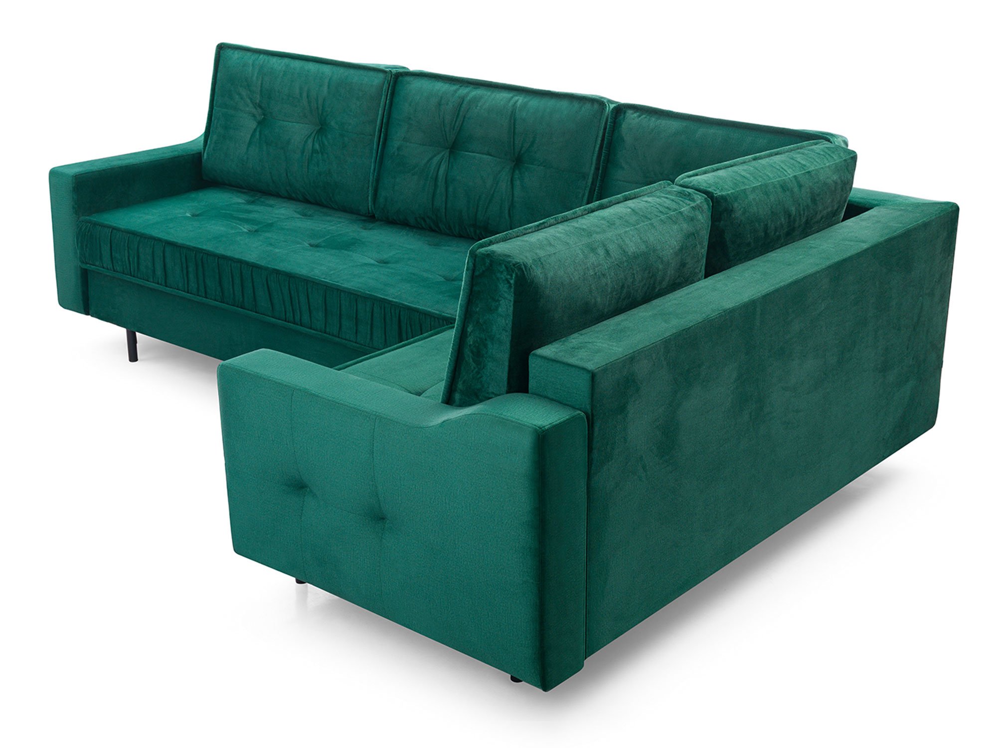 Siedzisko wyposażono w sprężyny faliste, które dbają o równomierne rozłożenie ciężaru i elastyczność podczas siedzenia. To rozwiązanie zapewnia wygodę, a jednocześnie chroni mebel przed utratą kształtu przez wiele lat. Całość osadzona jest na metalowych odkręcanych nogach, które podkreślają loftowy styl i dodają lekkości całej bryle.