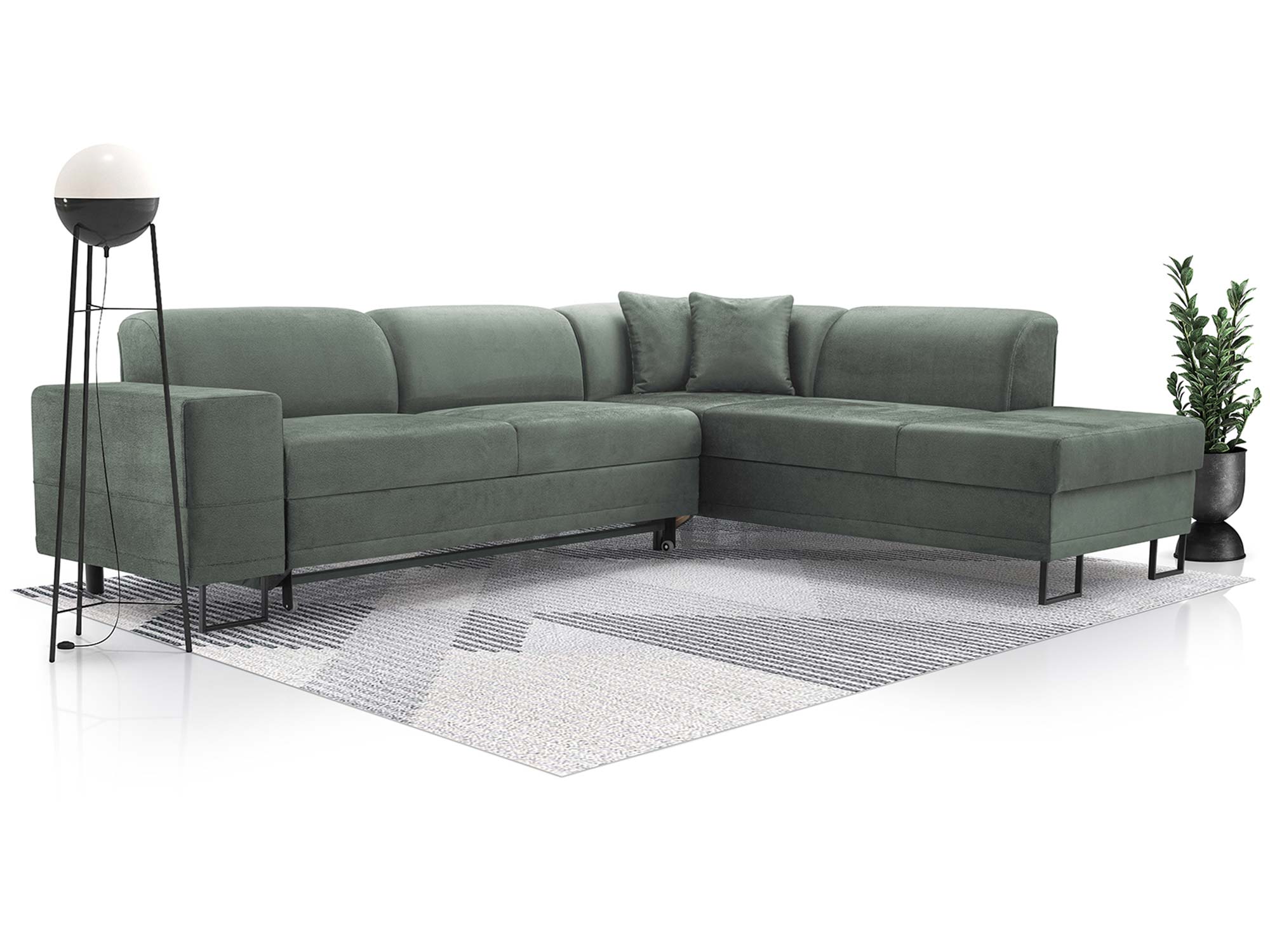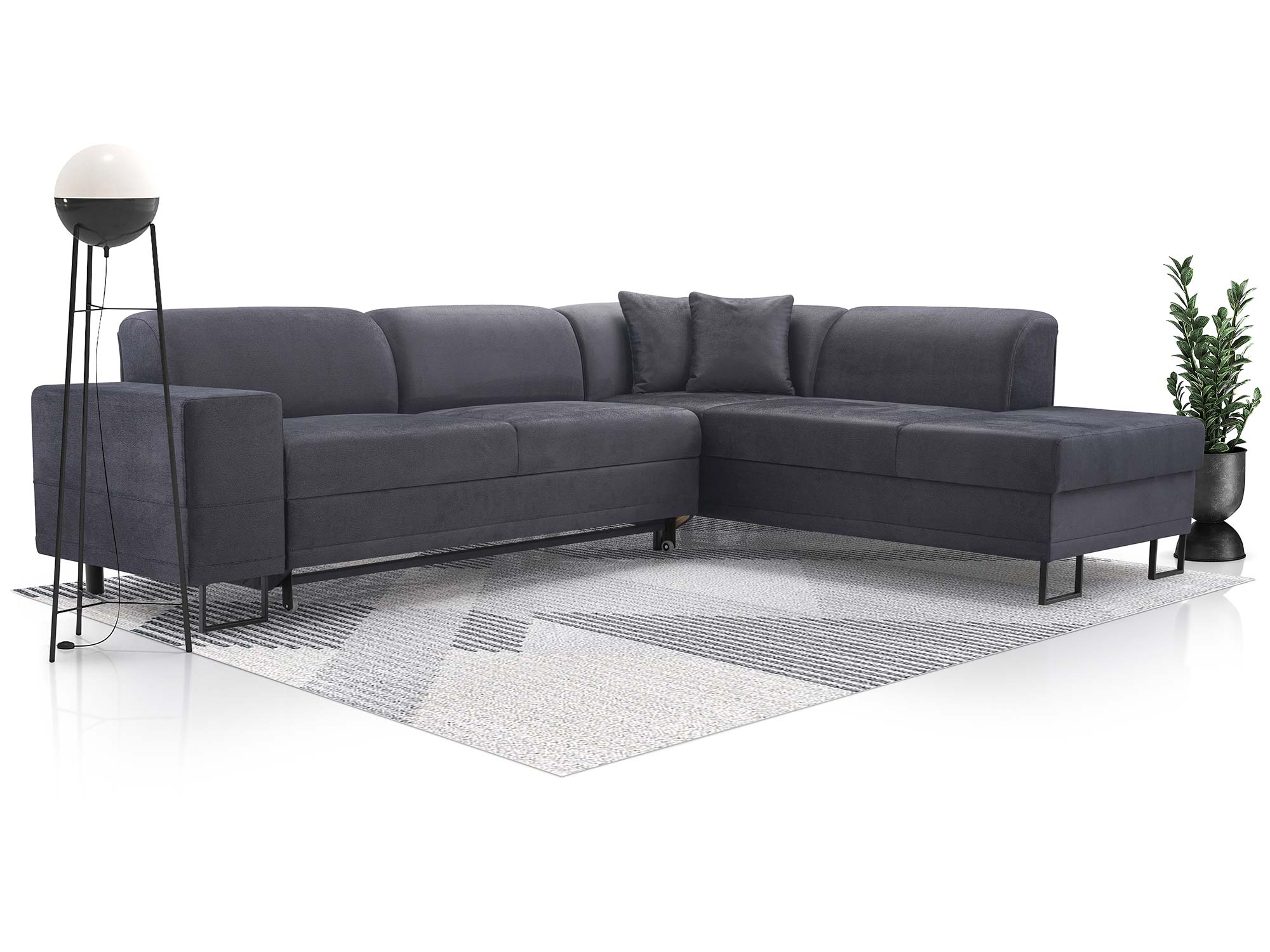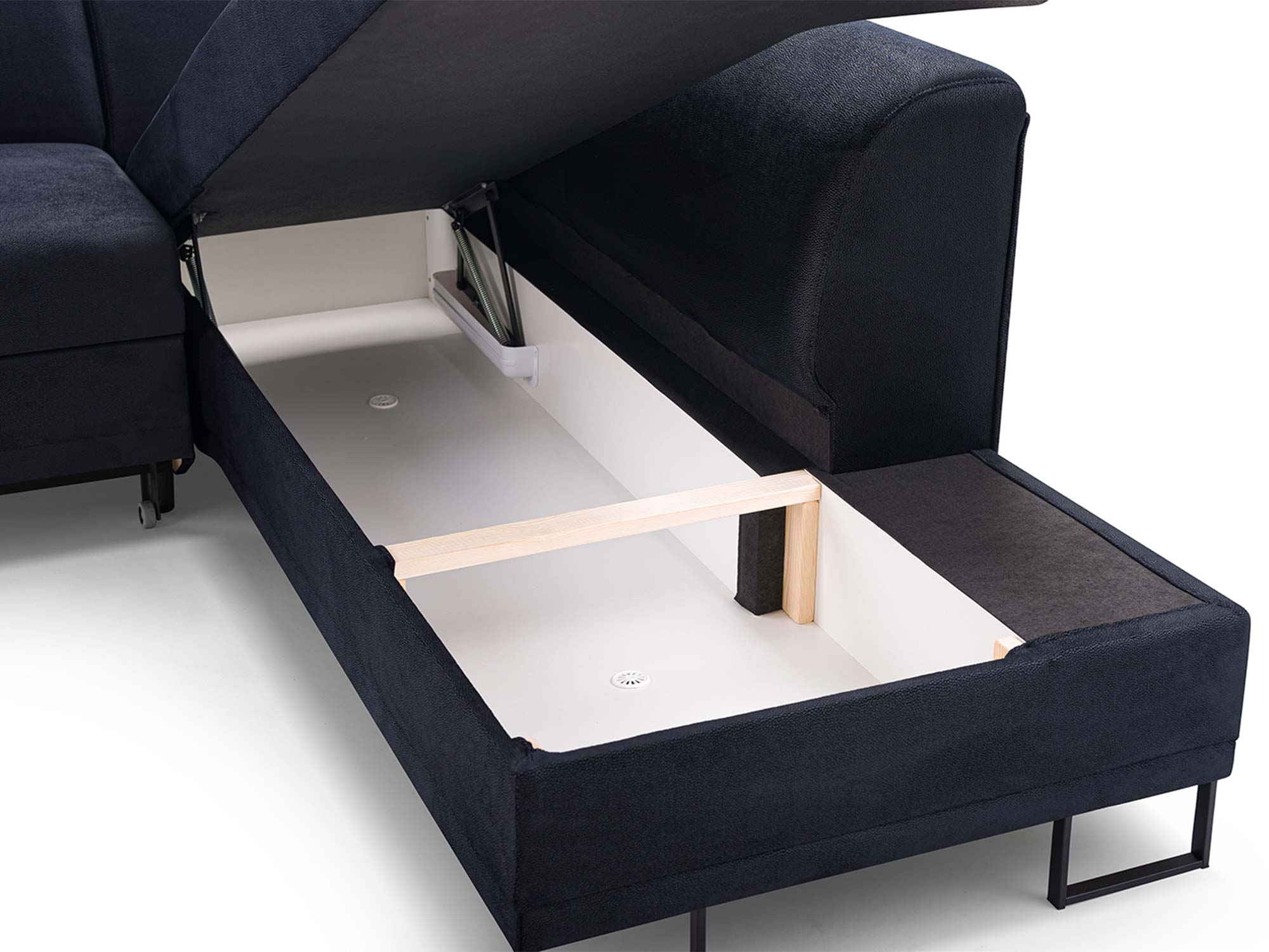 Dzięki prostemu w obsłudze systemowi rozkładania DL, kanapa w kilka chwil zmienia się w łóżko z powierzchnią spania 220×130 cm. To rozwiązanie idealne zarówno dla gości, jak i do codziennego użytku. Dodatkowy pojemnik na pościel pozwala wygodnie przechować koce, poduszki i kołdry, dzięki czemu w salonie zawsze panuje porządek.