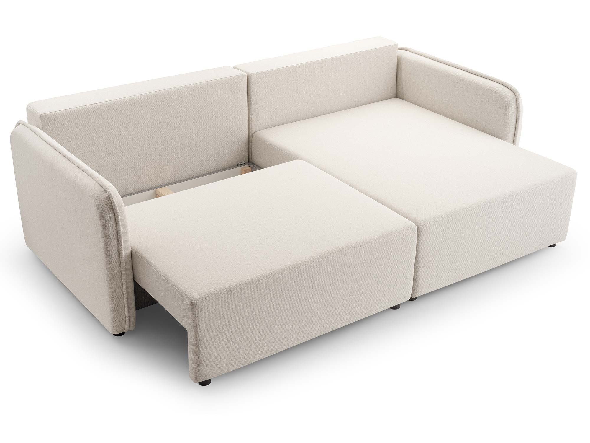 Dodatkowym atutem jest pojemnik na pościel, który pozwala na przechowywanie kołder, poduszek czy koców. To rozwiązanie, które szczególnie docenią osoby ceniące porządek i funkcjonalne wnętrza. Mimo kompaktowych wymiarów, Mimi zaskakuje przestronnością i sprytnymi rozwiązaniami.