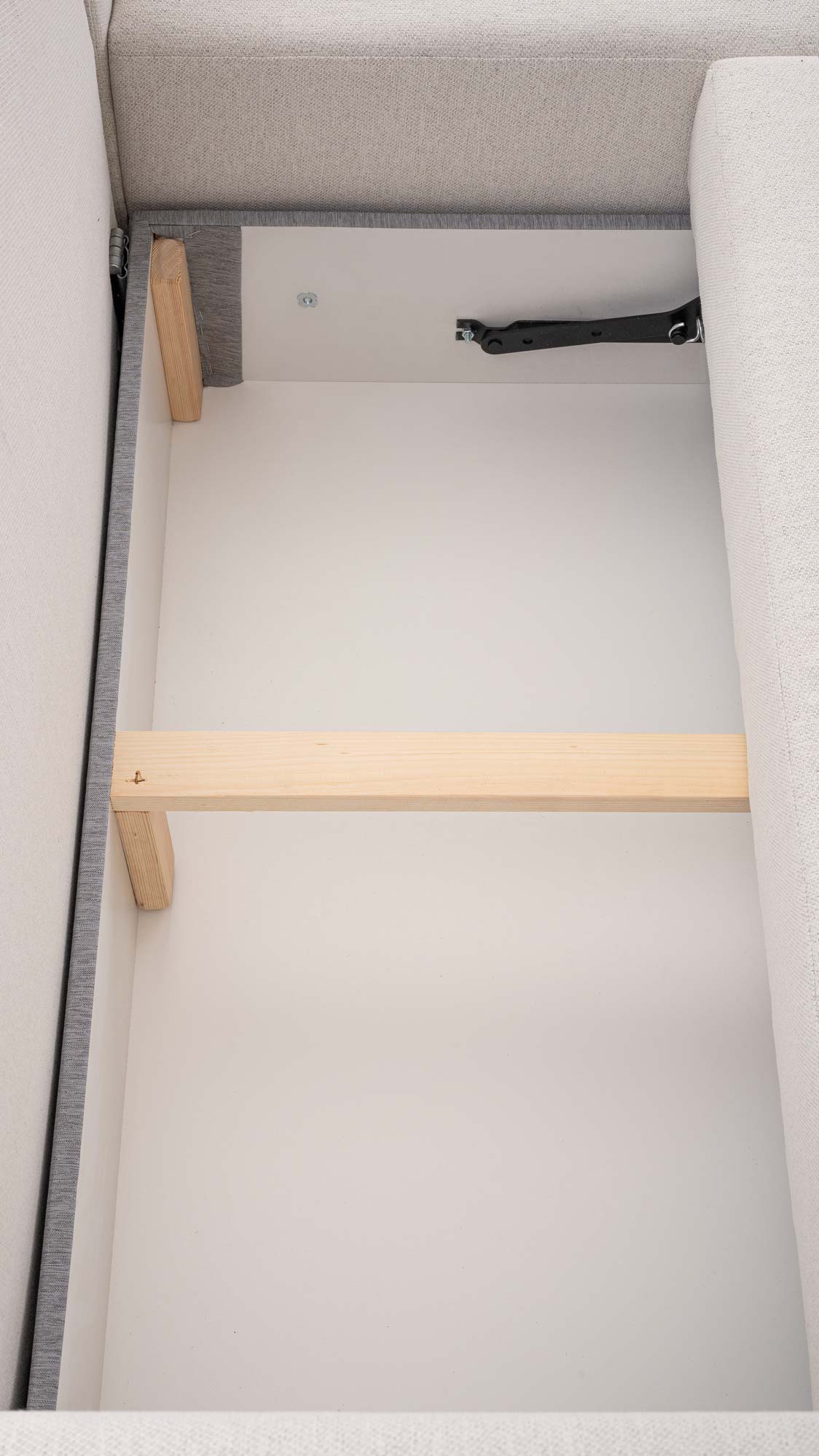 - Pojemnik na pościel – praktyczne miejsce na koce i poduszki.