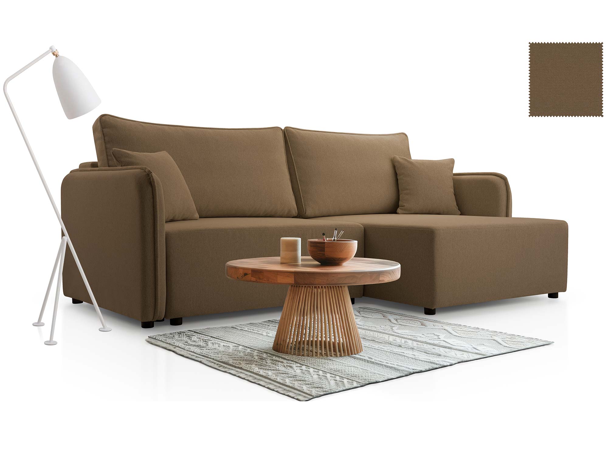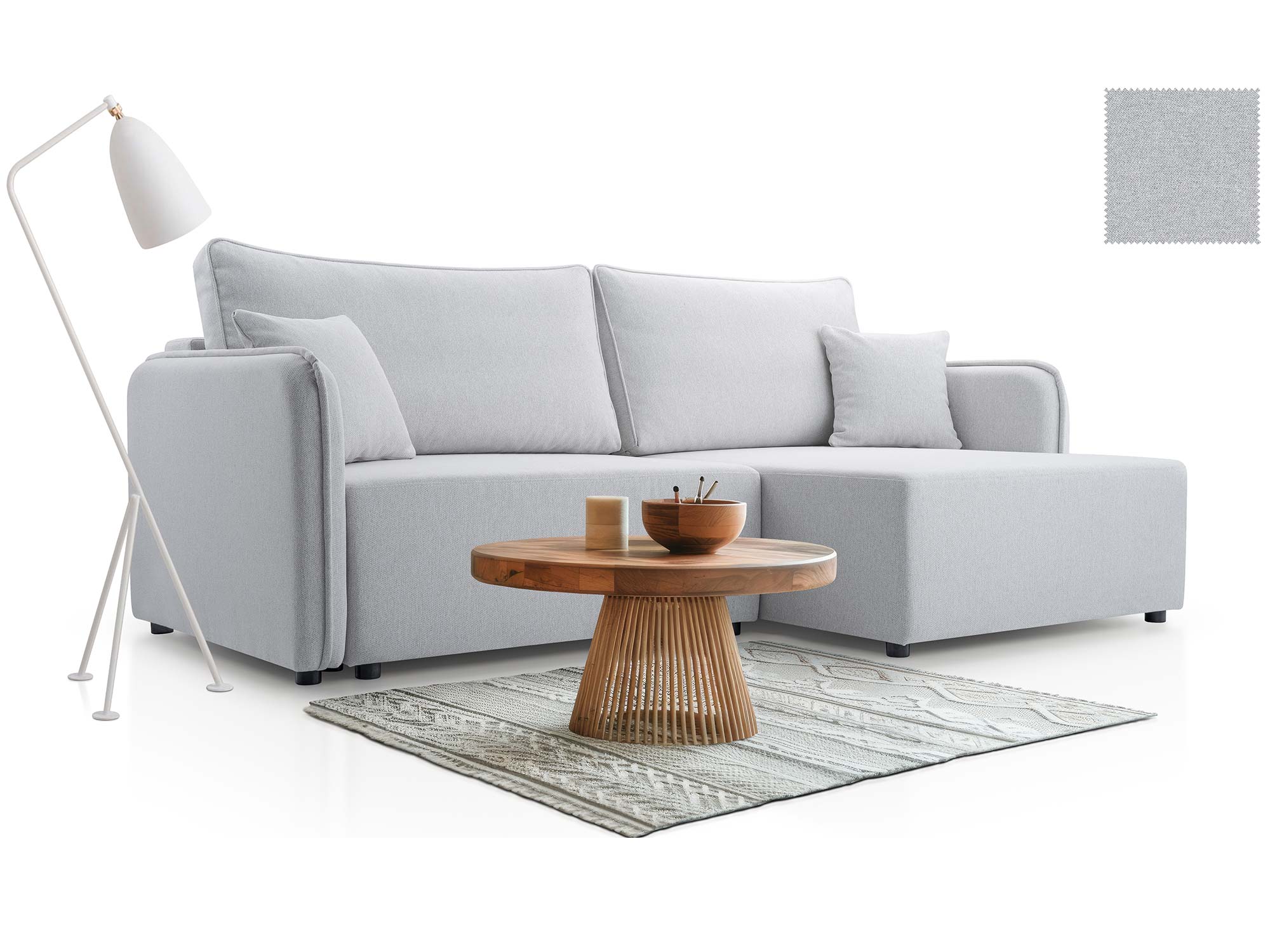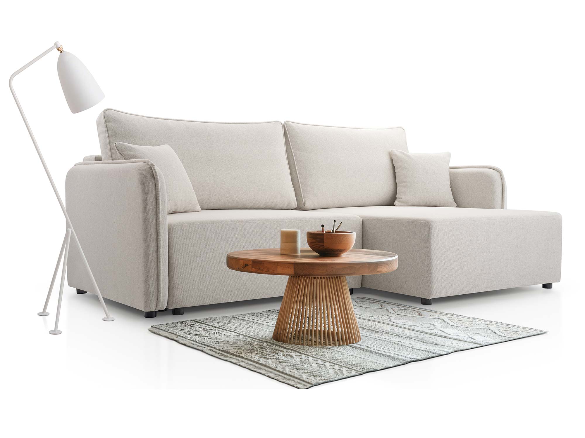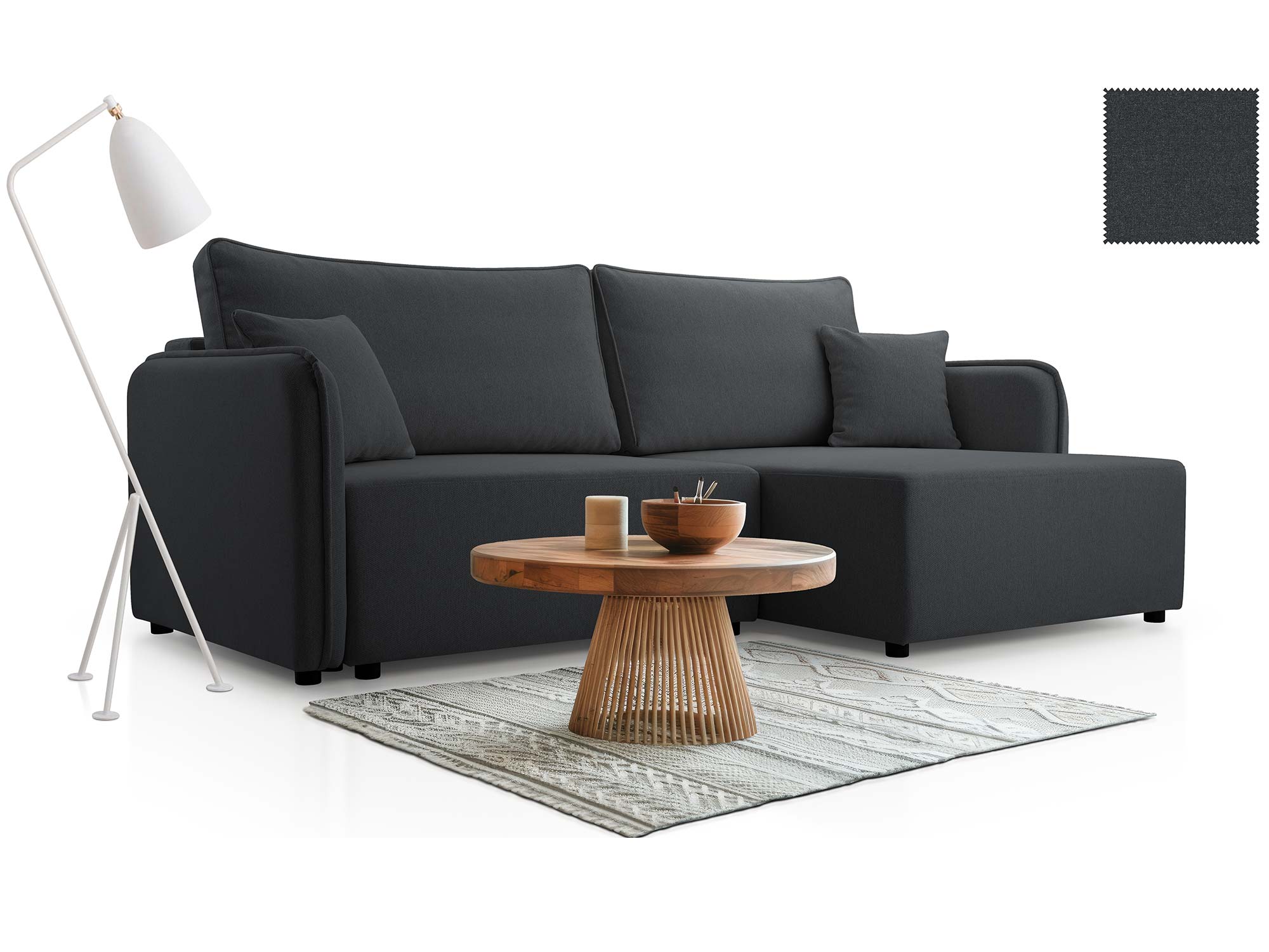 - Nowoczesny design – prosta forma, ozdobne poduszki i eleganckie wykończenie.
