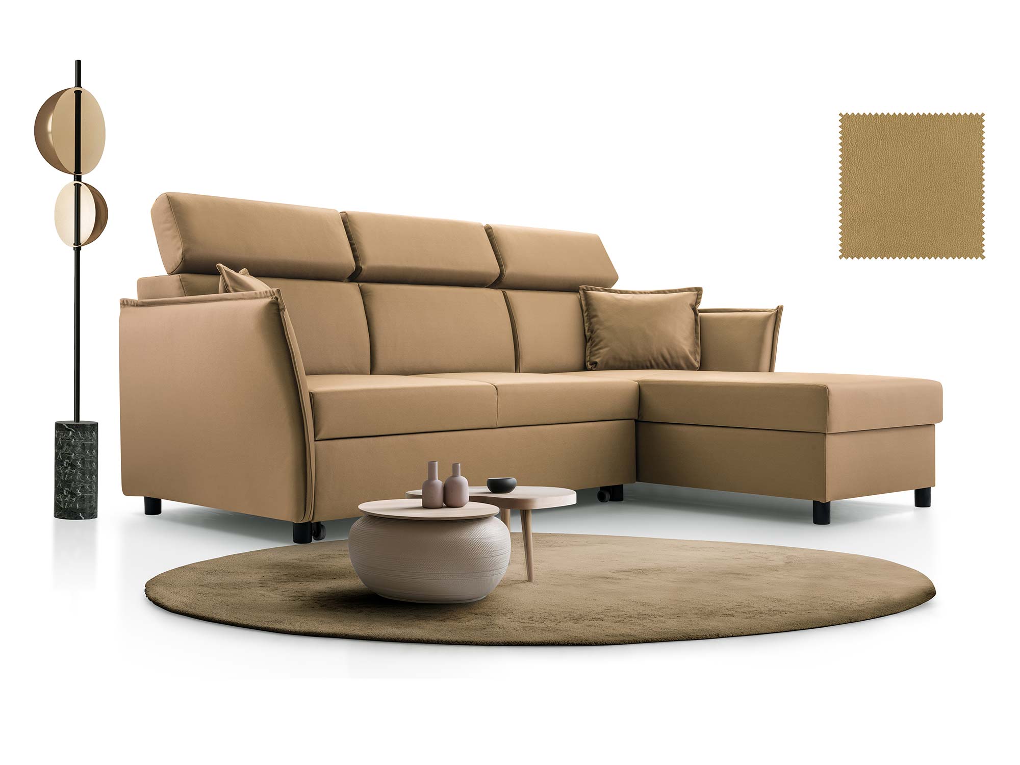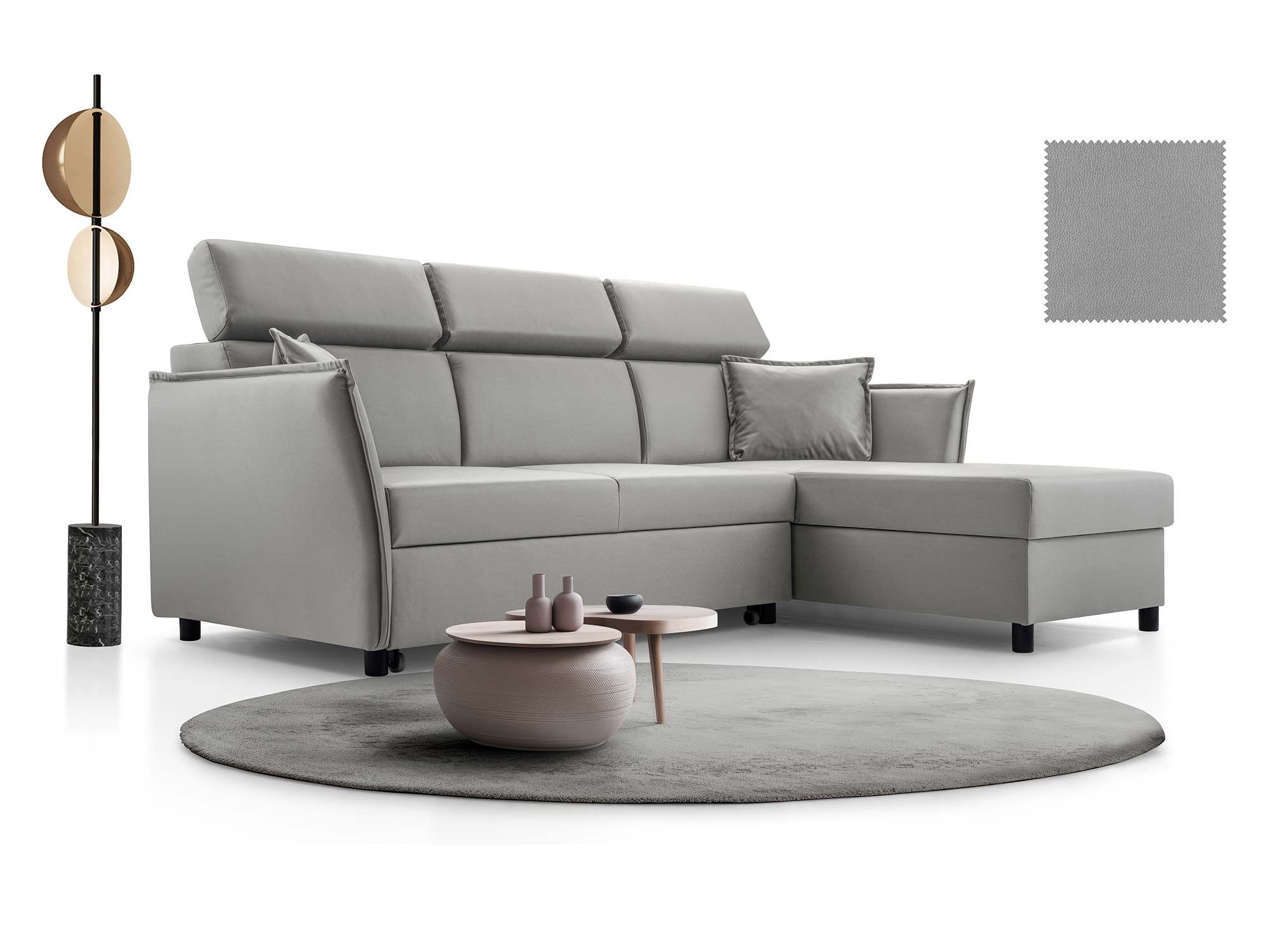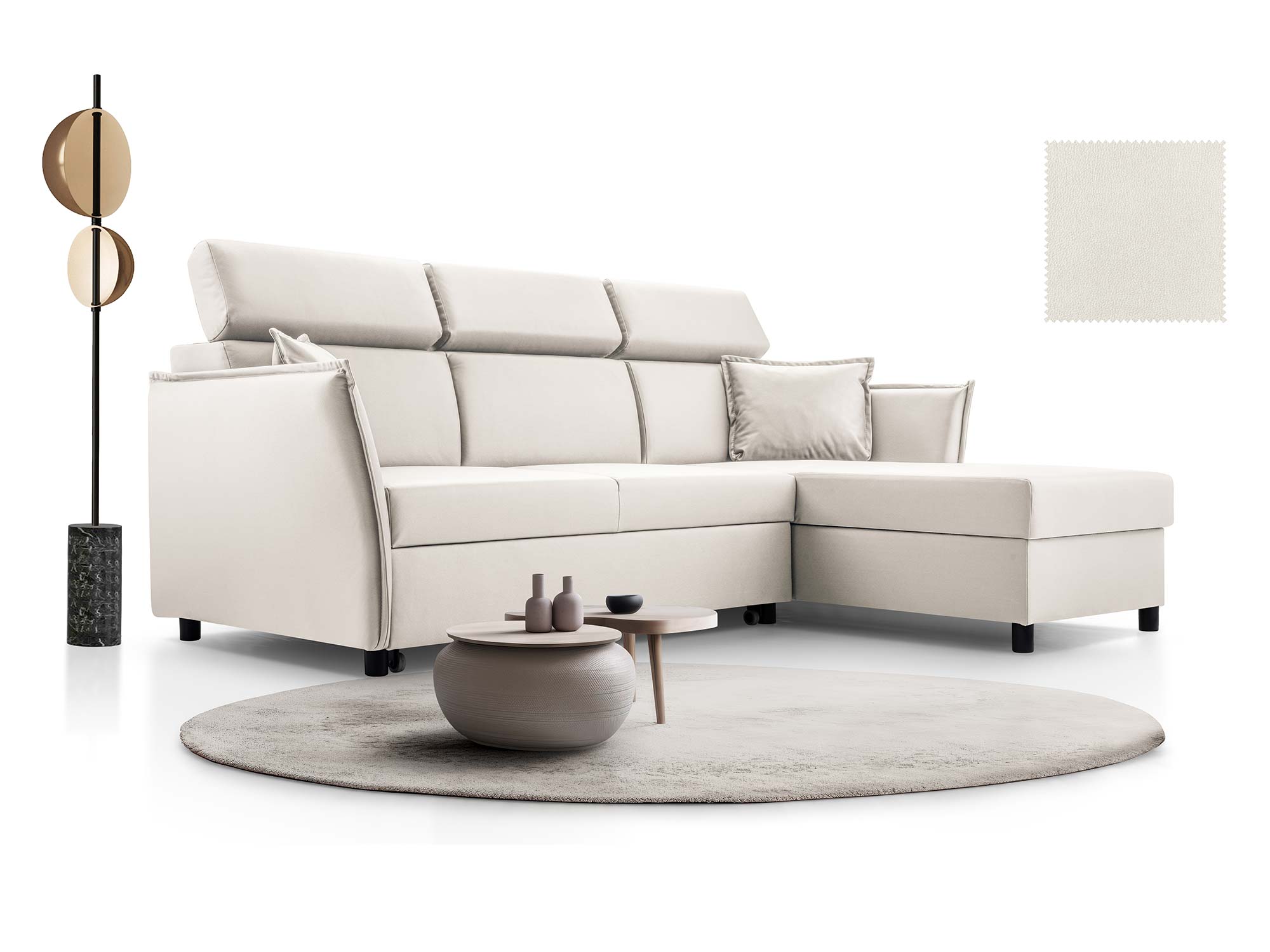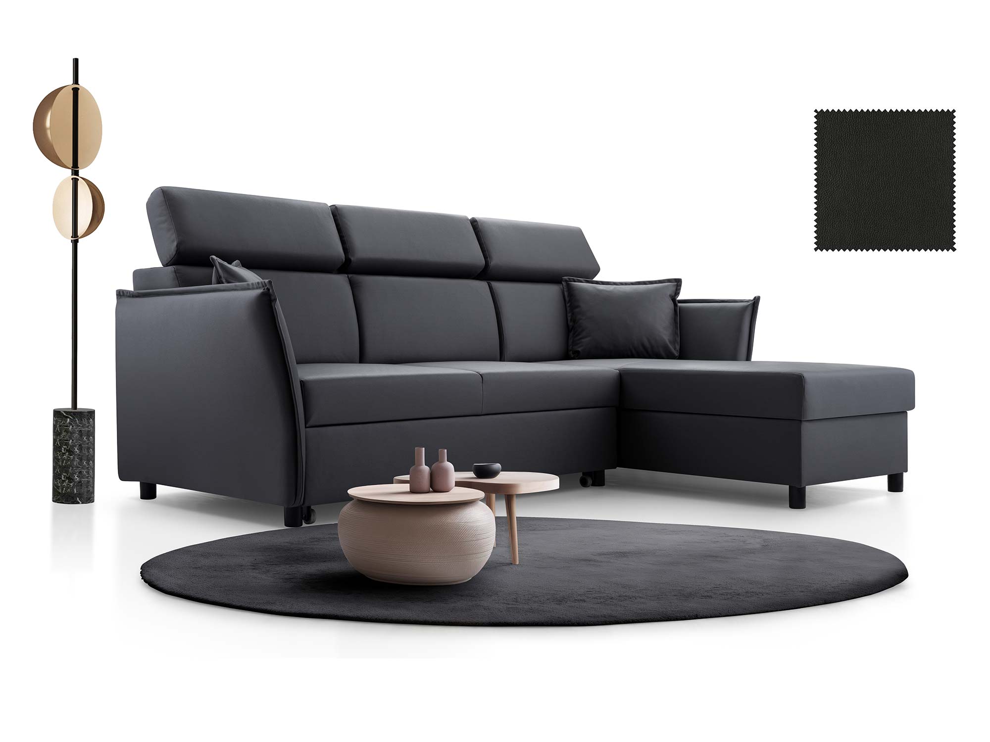 Ta kanapa to idealny kompromis pomiędzy estetyką a praktycznością – możesz na niej komfortowo wypocząć, zyskać dodatkowe miejsce do spania, a także przechowywać pościel w wbudowanym pojemniku. To rozwiązanie, które doceni każda nowoczesna rodzina.