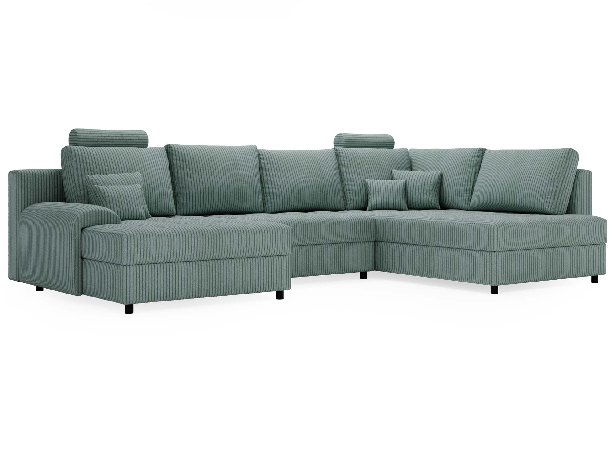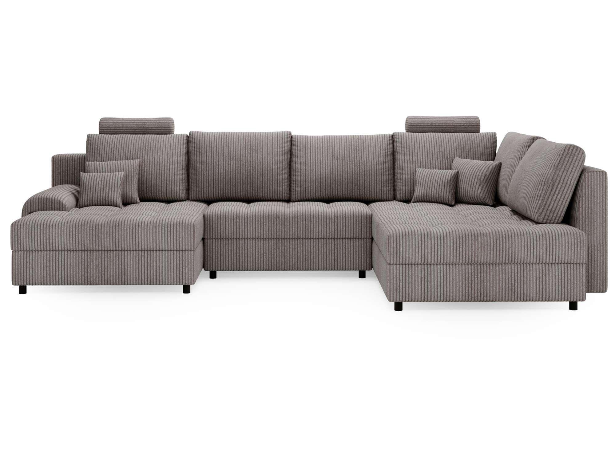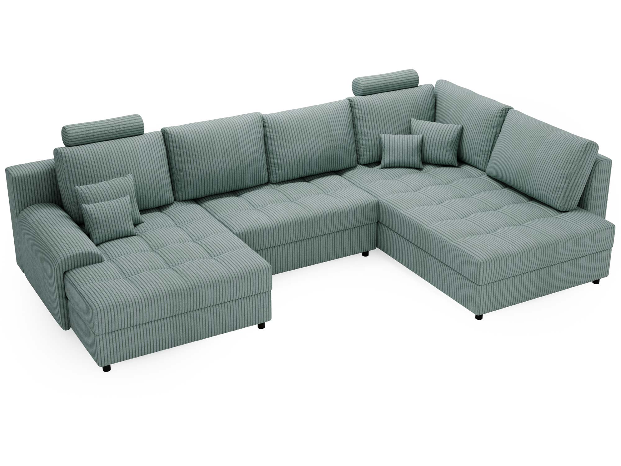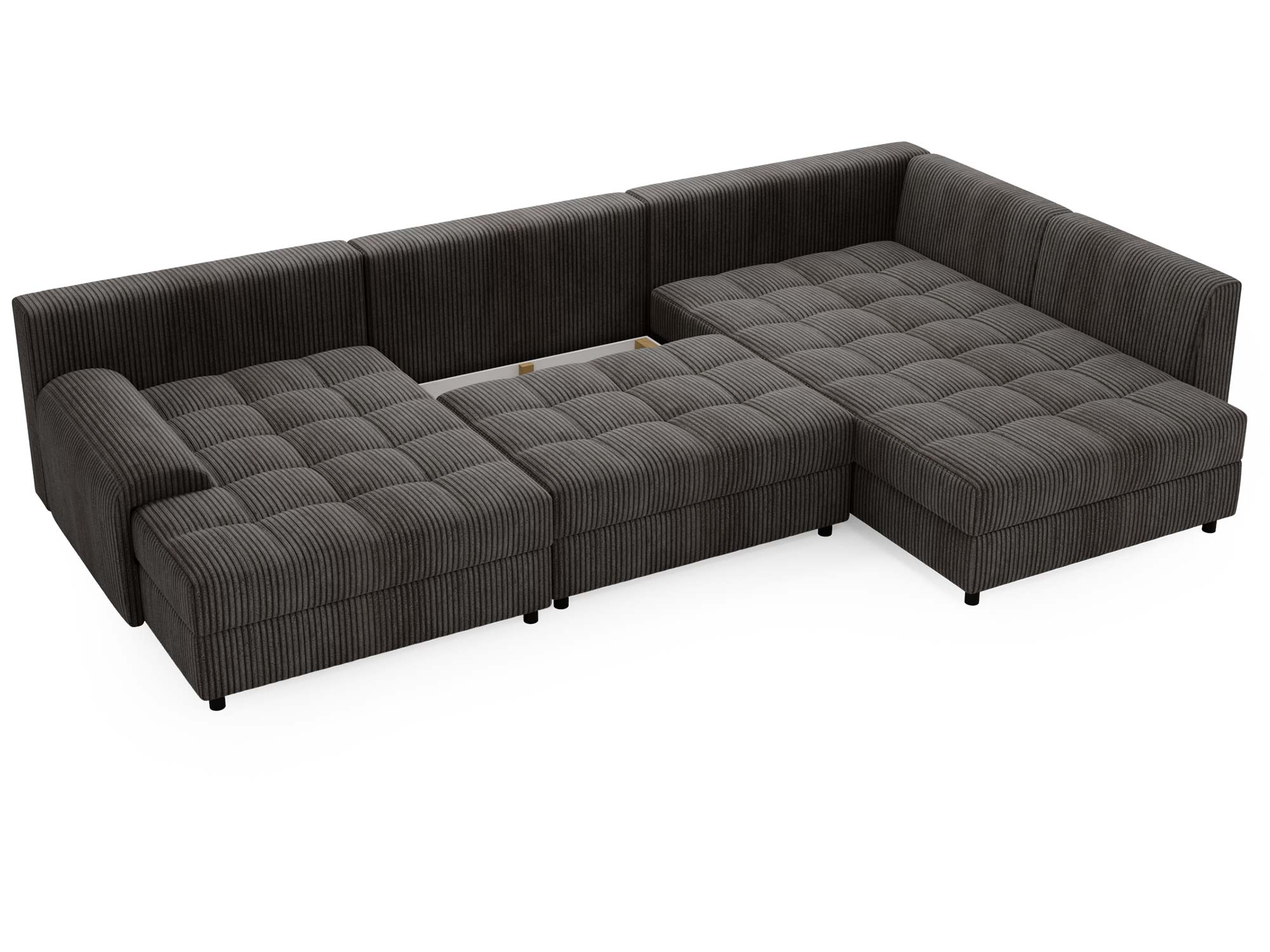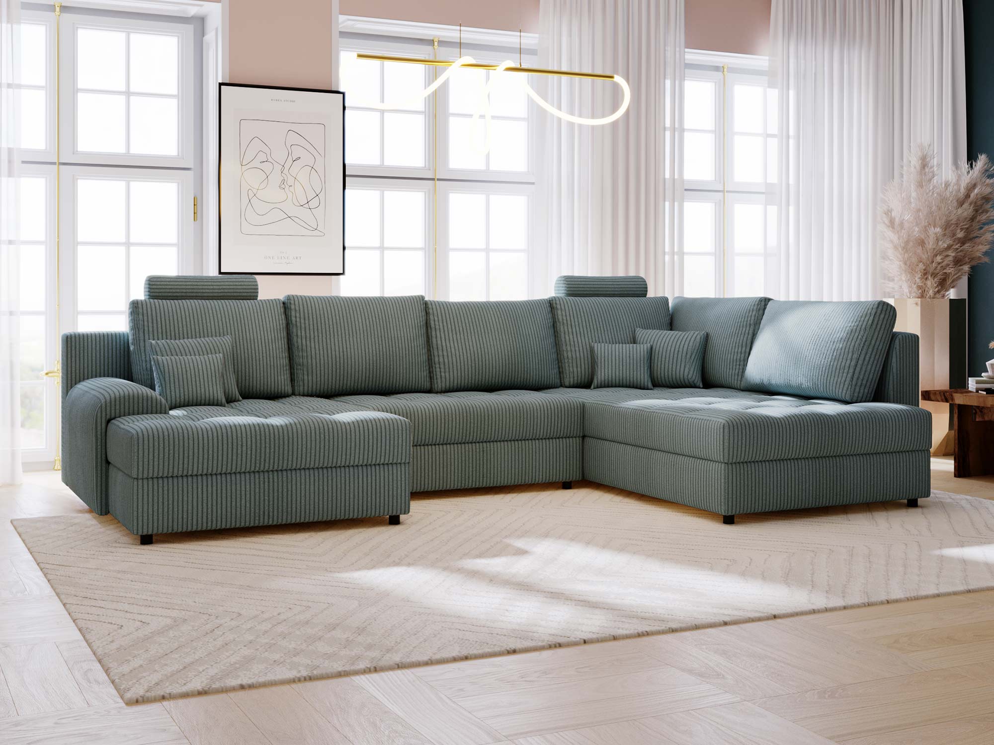 **Narożnik ATIKA Wygodny z Funkcją Spania** został stworzony z myślą o pełnym komforcie użytkowania. Dzięki wbudowanej funkcji spania, narożnik można w kilka chwil przekształcić w wygodne łóżko o powierzchni **140 x 329 cm**. Jest to idealne rozwiązanie na niespodziewane wizyty gości lub codzienne użytkowanie, zapewniające komfortowy sen bez potrzeby dodatkowego łóżka. Zintegrowany pojemnik na pościel umożliwia przechowywanie koców, poduszek i pościeli, pomagając w utrzymaniu porządku w salonie i pozwalając maksymalnie wykorzystać przestrzeń.