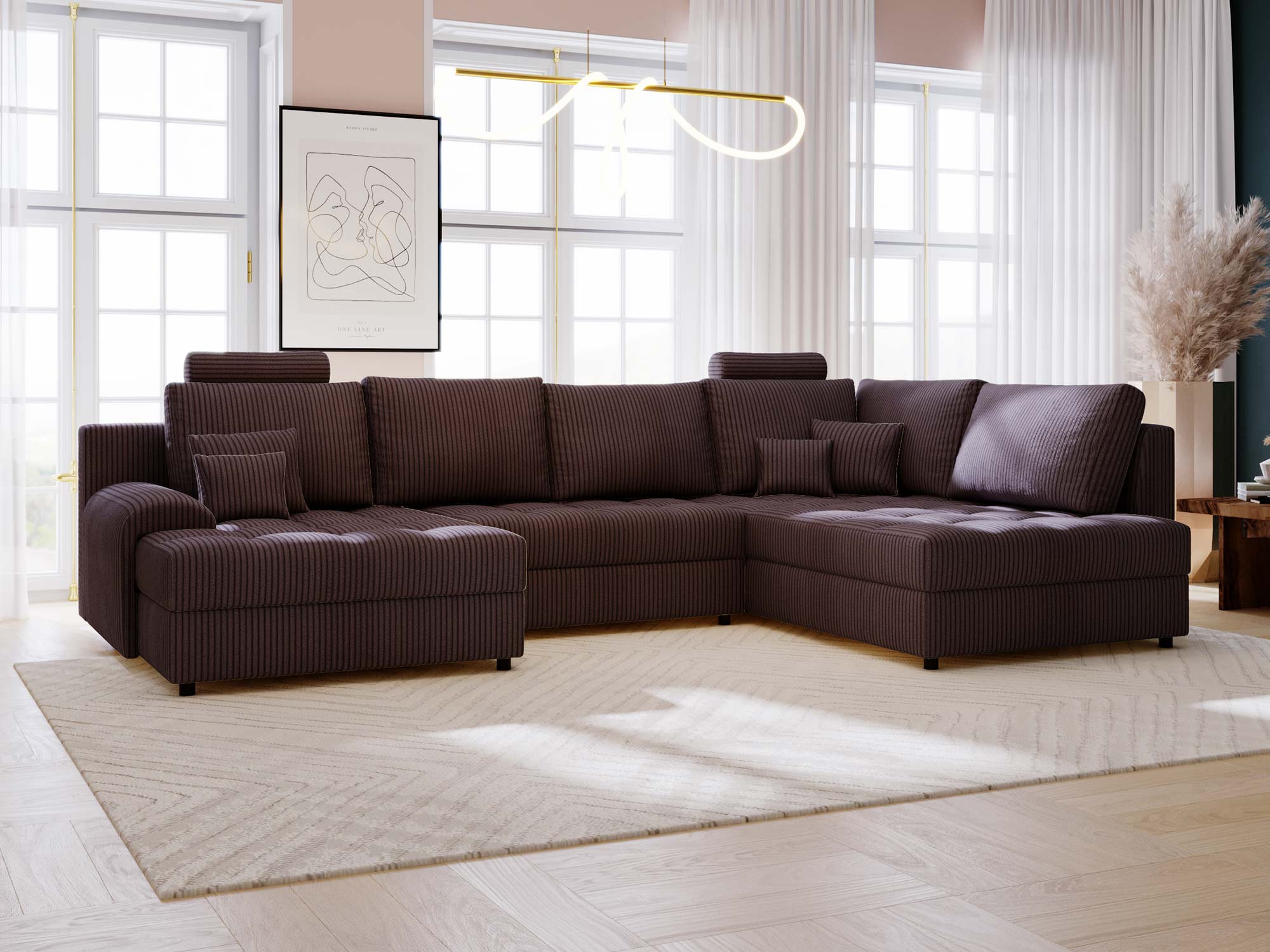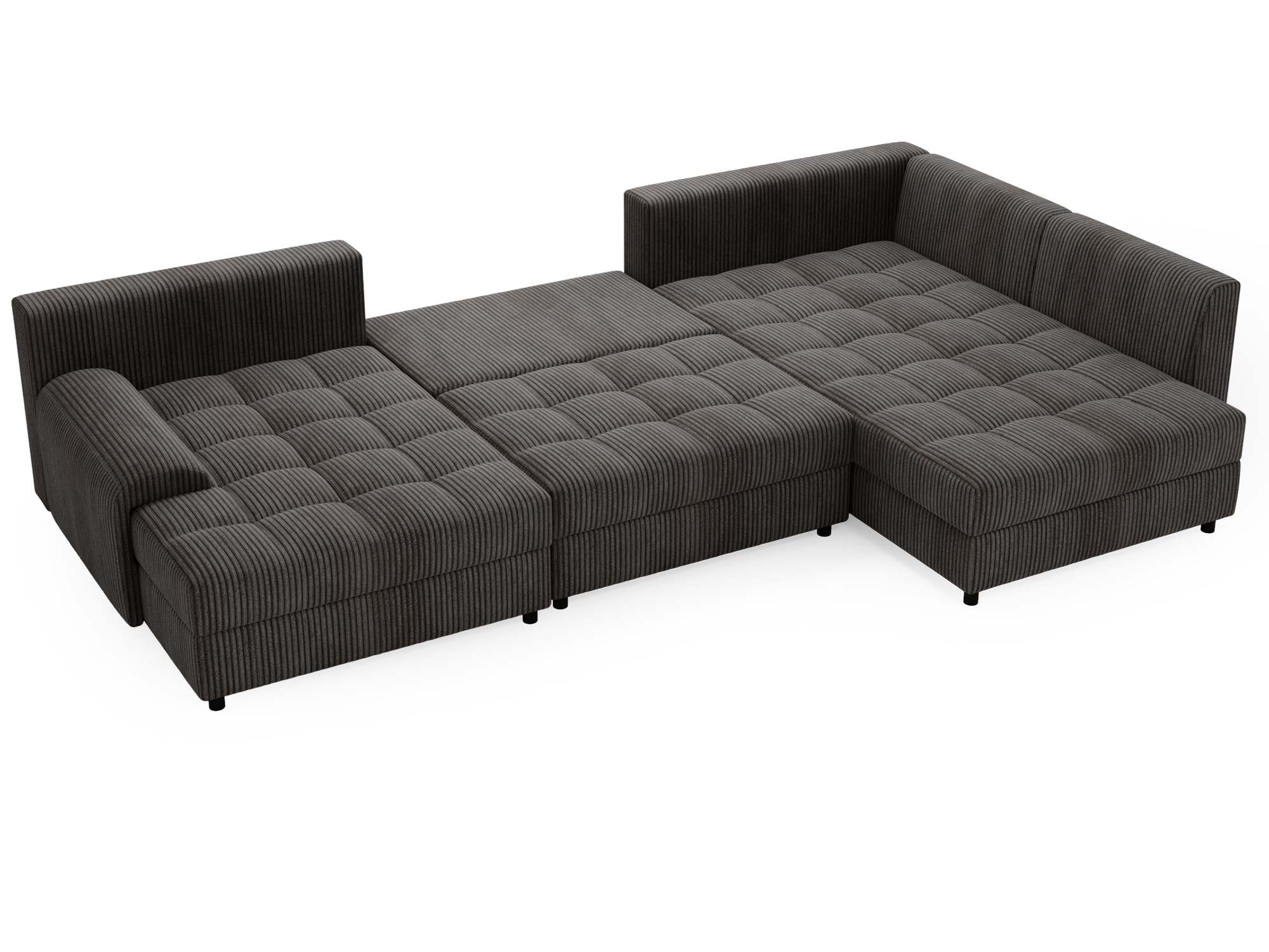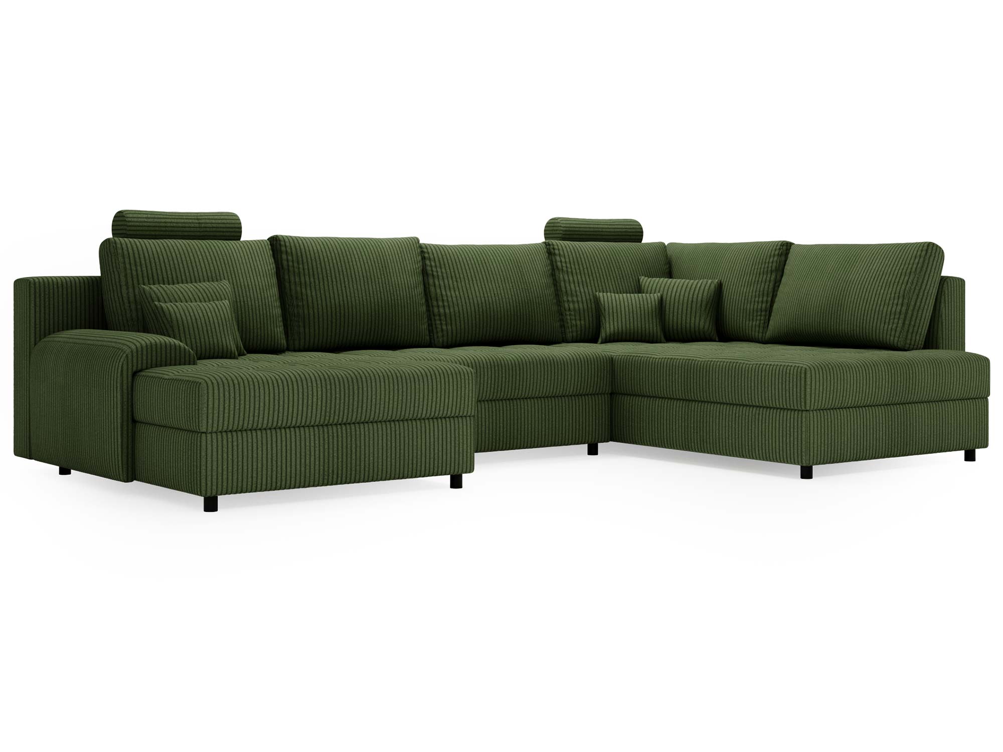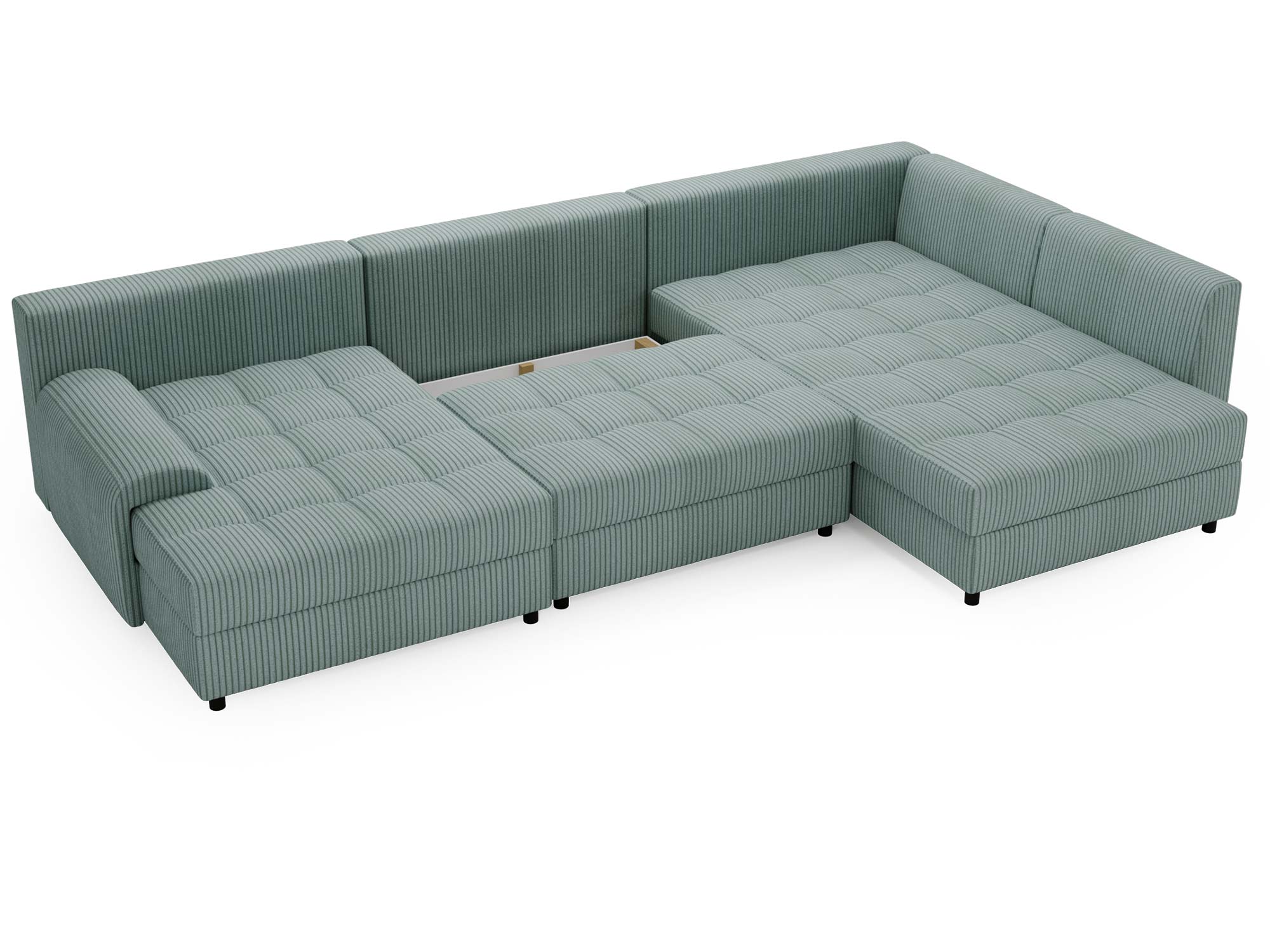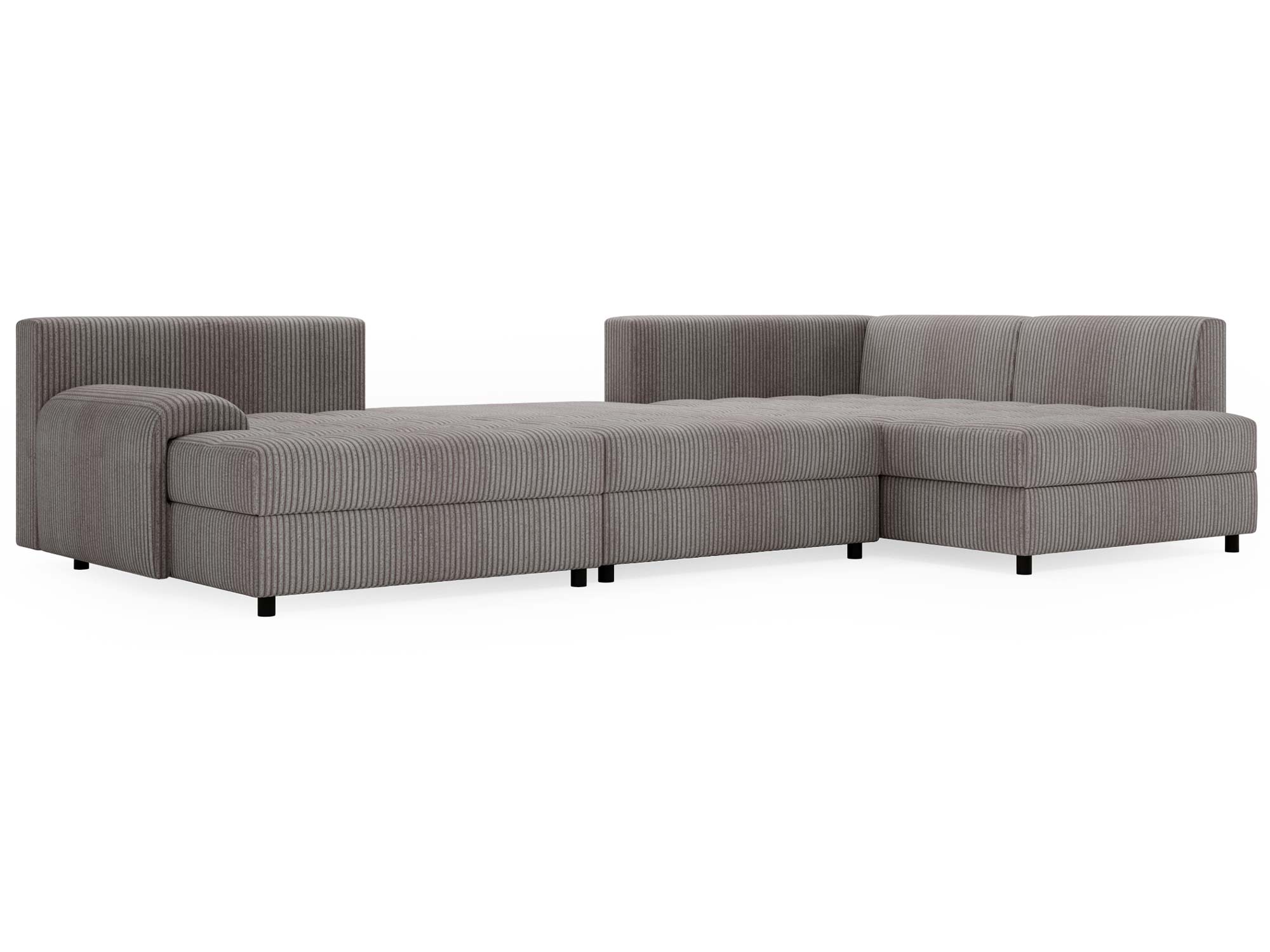 **Narożnik ATIKA Wygodny z Funkcją Spania** został stworzony z myślą o pełnym komforcie użytkowania. Dzięki wbudowanej funkcji spania, narożnik można w kilka chwil przekształcić w wygodne łóżko o powierzchni **140 x 329 cm**. Jest to idealne rozwiązanie na niespodziewane wizyty gości lub codzienne użytkowanie, zapewniające komfortowy sen bez potrzeby dodatkowego łóżka. Zintegrowany pojemnik na pościel umożliwia przechowywanie koców, poduszek i pościeli, pomagając w utrzymaniu porządku w salonie i pozwalając maksymalnie wykorzystać przestrzeń.