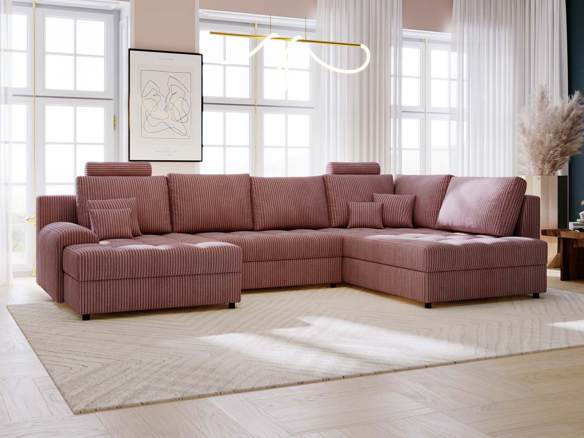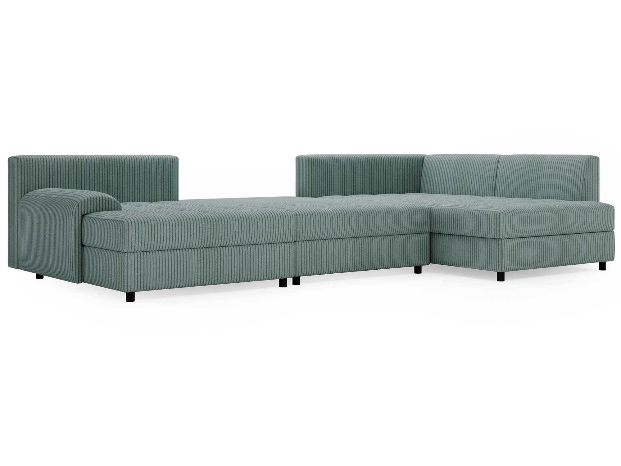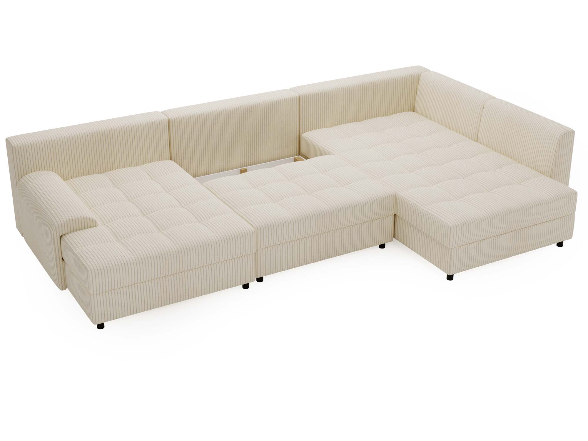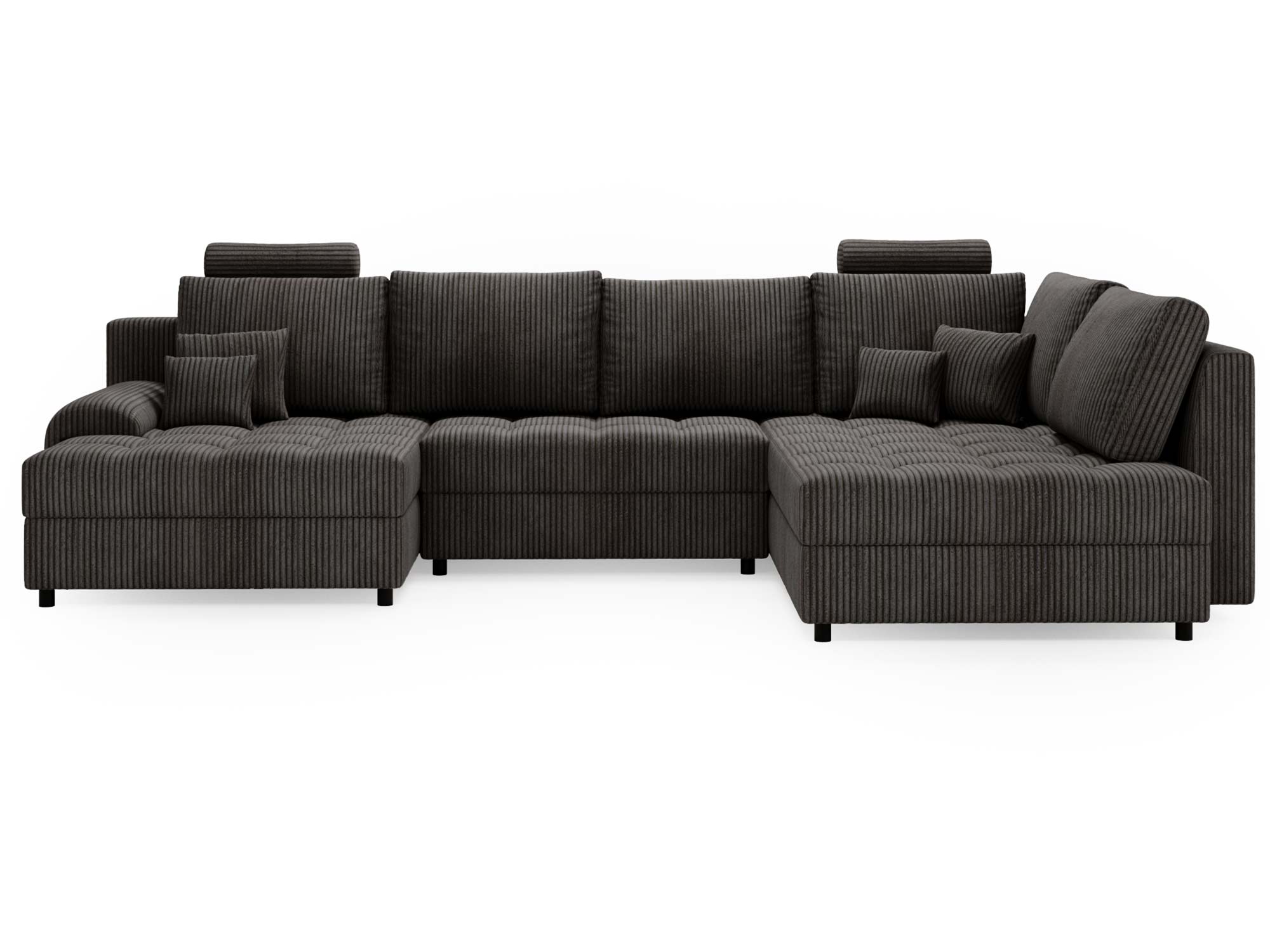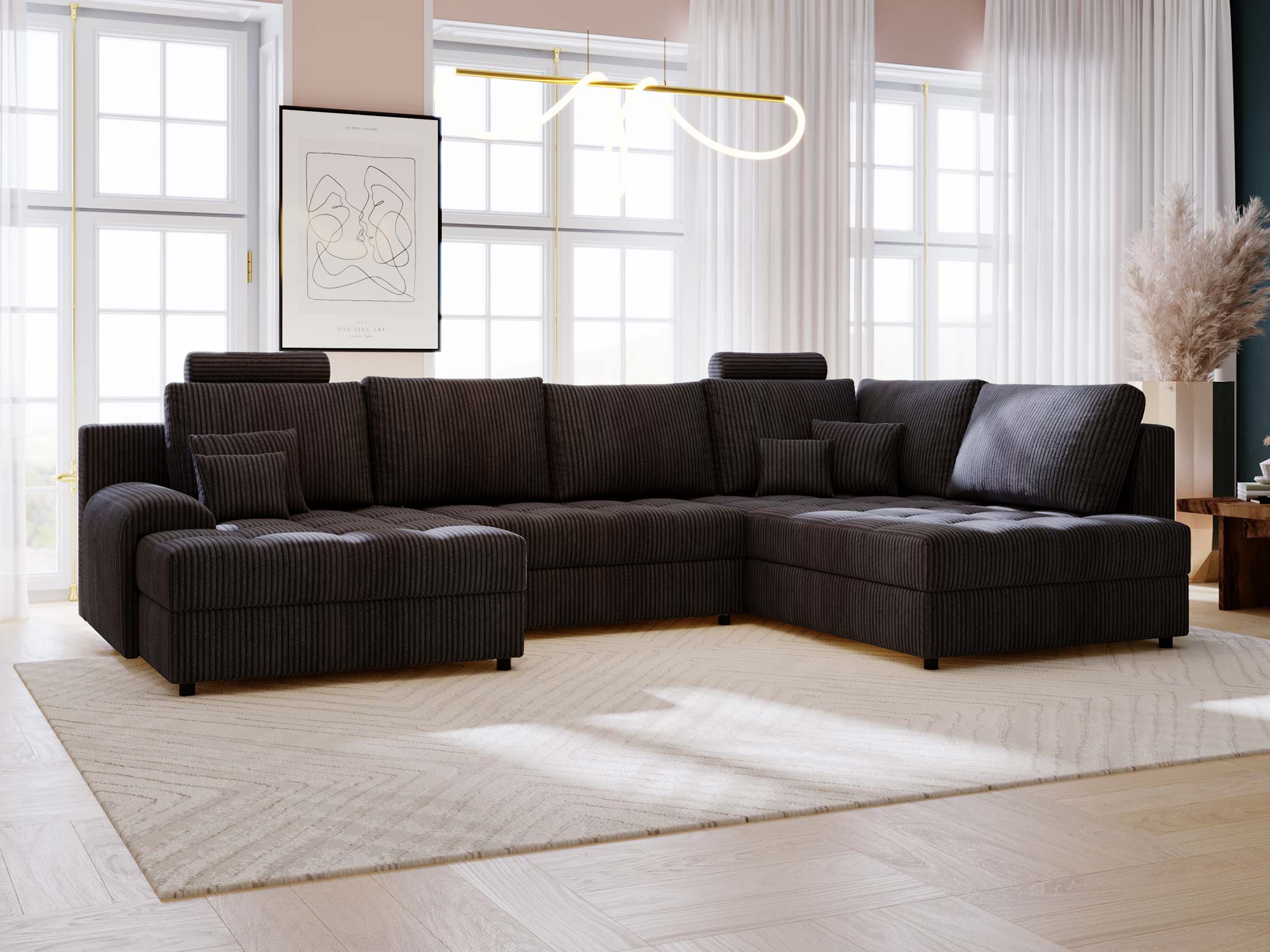 **Narożnik ATIKA Wygodny z Funkcją Spania** został stworzony z myślą o pełnym komforcie użytkowania. Dzięki wbudowanej funkcji spania, narożnik można w kilka chwil przekształcić w wygodne łóżko o powierzchni **140 x 329 cm**. Jest to idealne rozwiązanie na niespodziewane wizyty gości lub codzienne użytkowanie, zapewniające komfortowy sen bez potrzeby dodatkowego łóżka. Zintegrowany pojemnik na pościel umożliwia przechowywanie koców, poduszek i pościeli, pomagając w utrzymaniu porządku w salonie i pozwalając maksymalnie wykorzystać przestrzeń.