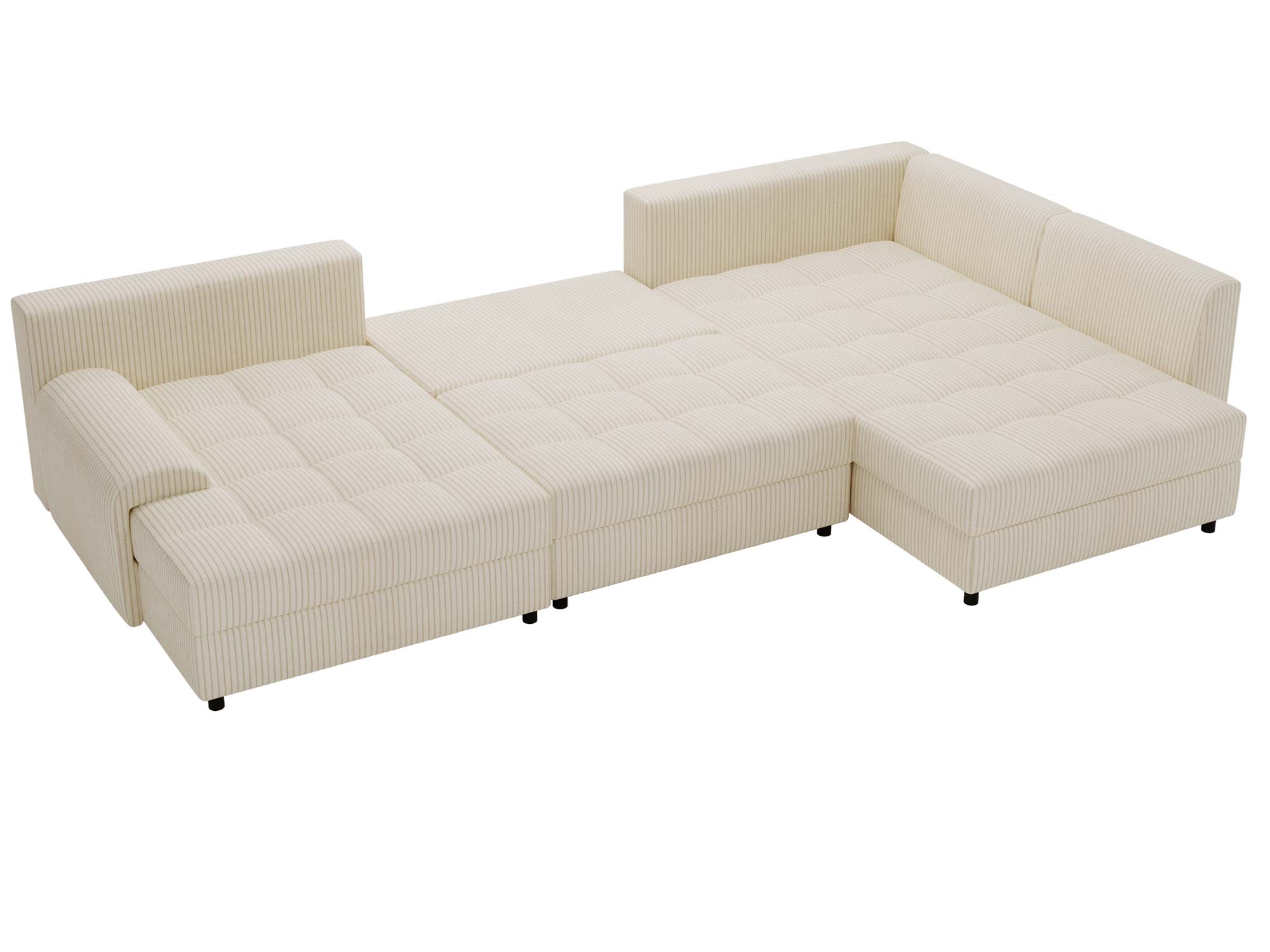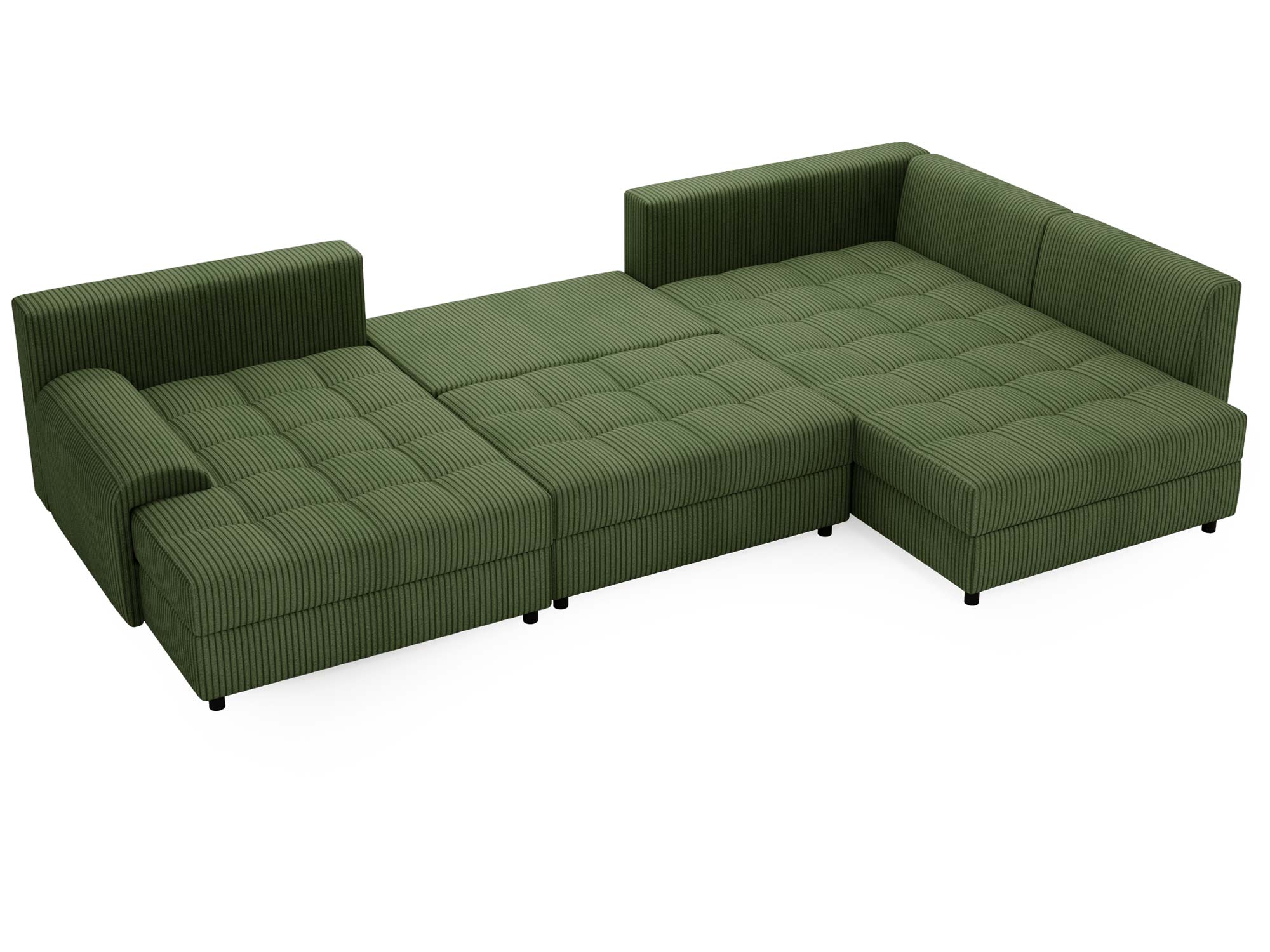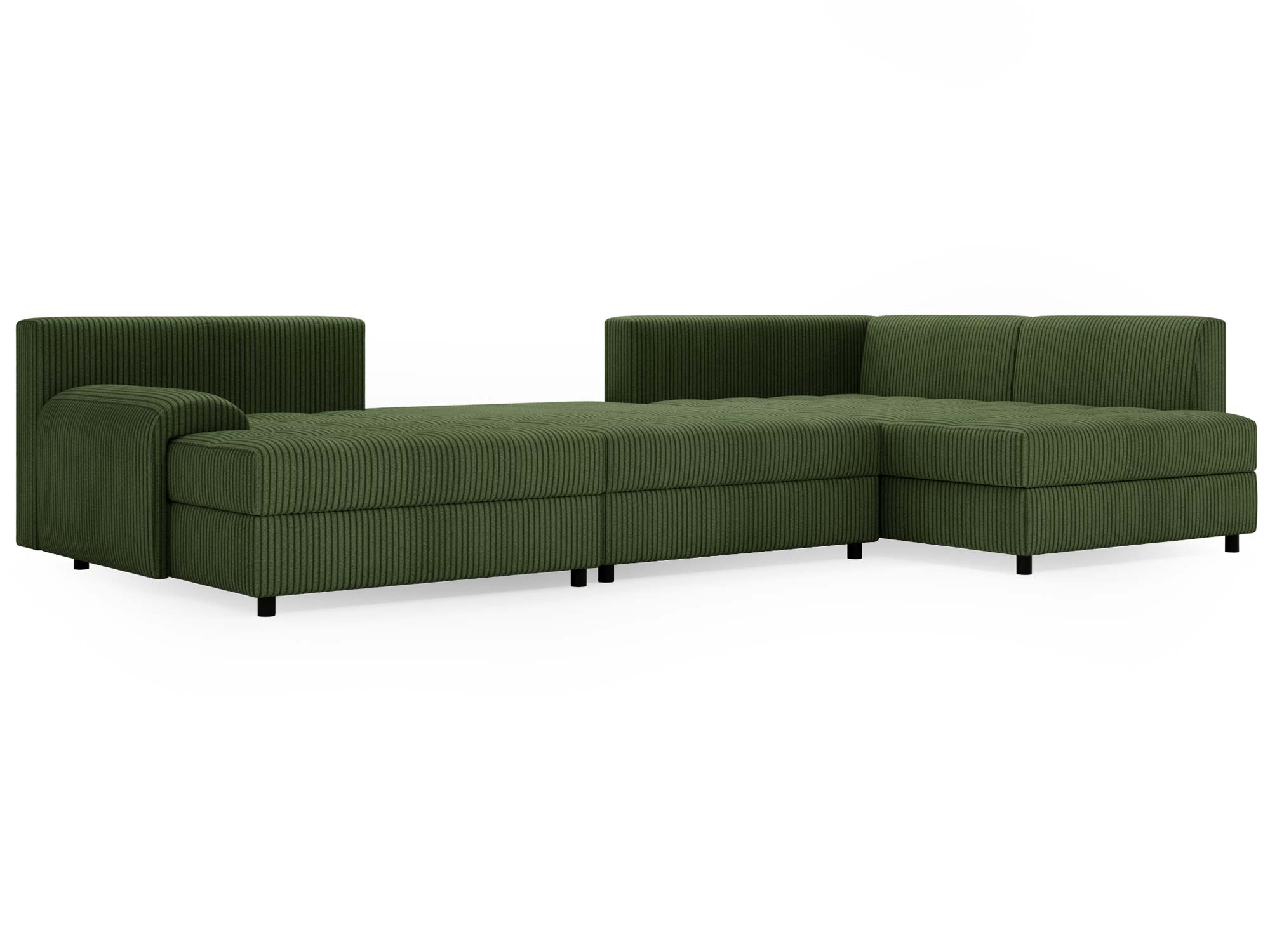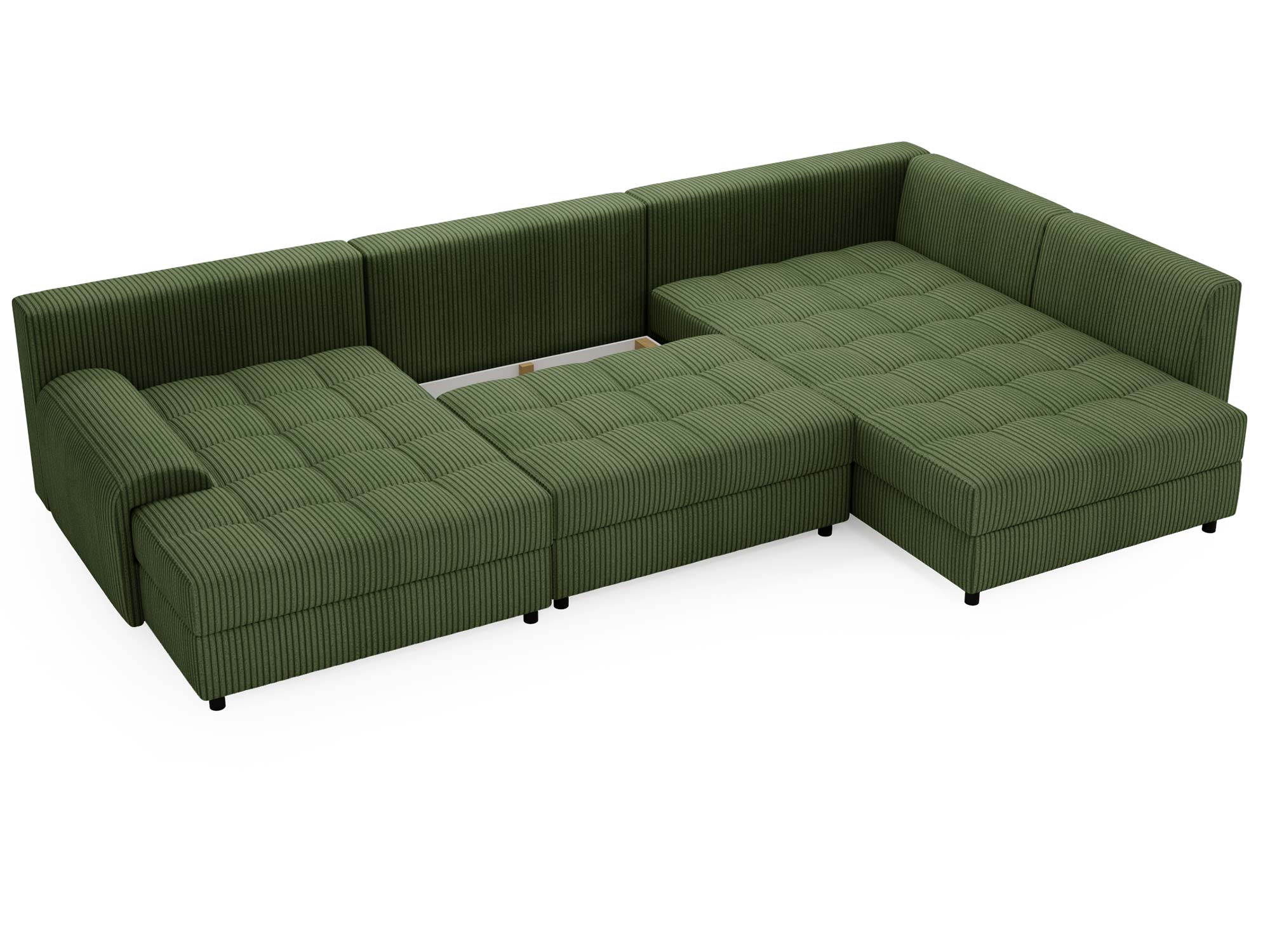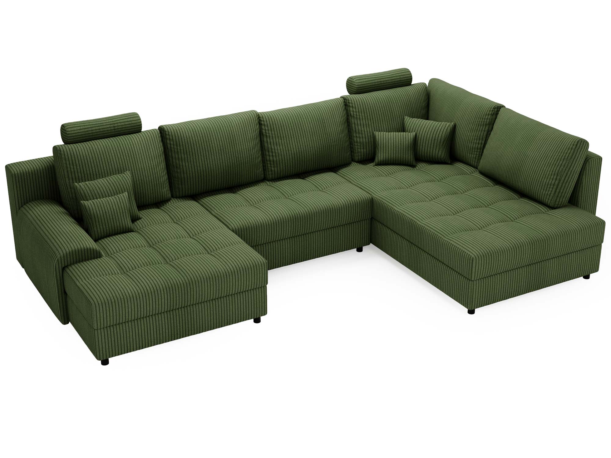 **Narożnik ATIKA Wygodny z Funkcją Spania** został stworzony z myślą o pełnym komforcie użytkowania. Dzięki wbudowanej funkcji spania, narożnik można w kilka chwil przekształcić w wygodne łóżko o powierzchni **140 x 329 cm**. Jest to idealne rozwiązanie na niespodziewane wizyty gości lub codzienne użytkowanie, zapewniające komfortowy sen bez potrzeby dodatkowego łóżka. Zintegrowany pojemnik na pościel umożliwia przechowywanie koców, poduszek i pościeli, pomagając w utrzymaniu porządku w salonie i pozwalając maksymalnie wykorzystać przestrzeń.