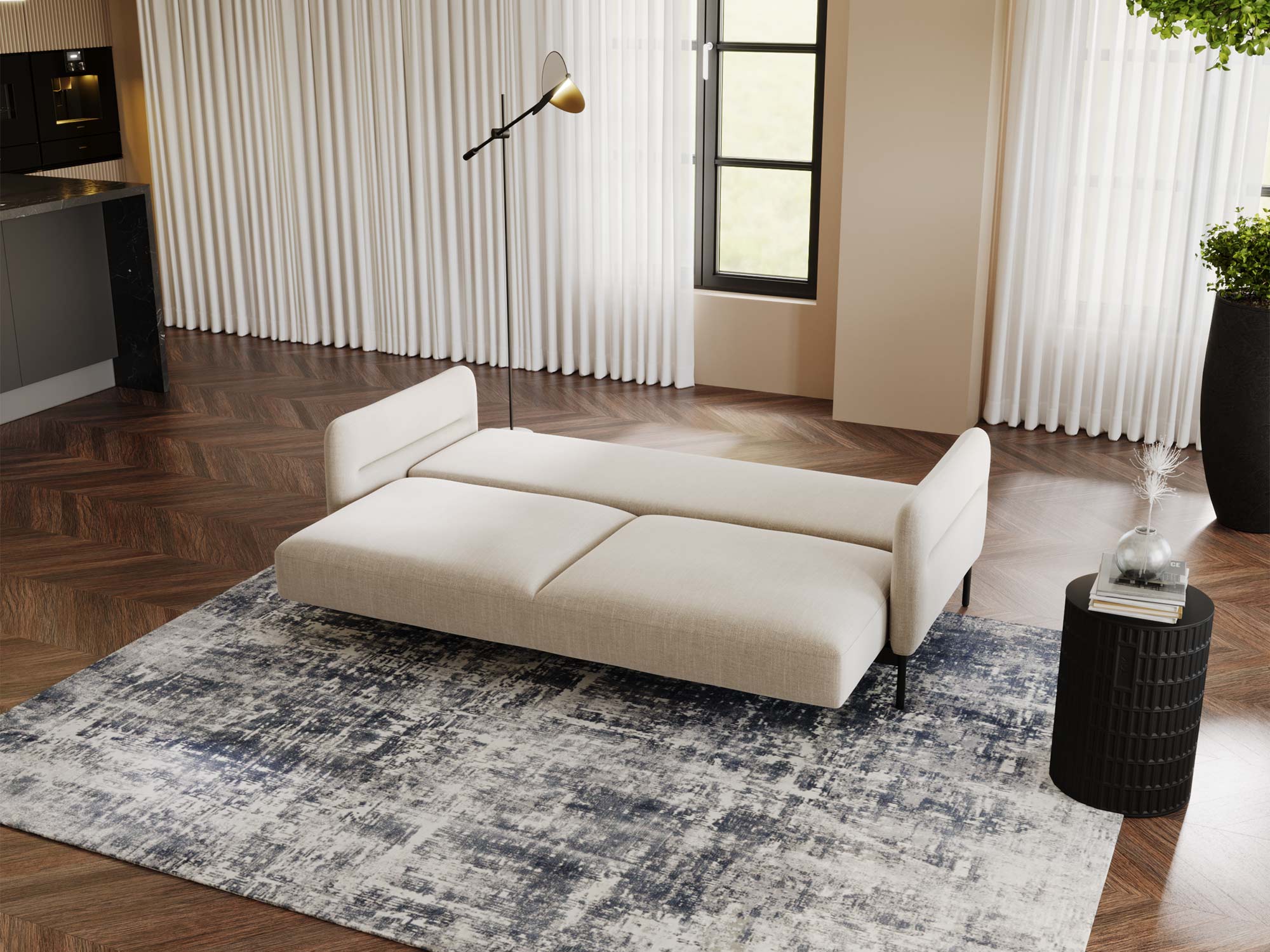 Narożnik ELLIZA wyposażony jest w funkcję spania, która umożliwia szybkie przekształcenie go w wygodne łóżko o wymiarach 140 x 200 cm. Dzięki mechanizmowi DL, rozłożenie narożnika jest szybkie i łatwe, a powierzchnia spania zapewnia wygodny odpoczynek. Dodatkowo, sofa i pufa mogą być używane razem lub oddzielnie, co pozwala na dostosowanie aranżacji wnętrza do Twoich potrzeb. ELLIZA to mebel, który sprawdzi się zarówno na co dzień, jak i podczas wizyt gości.