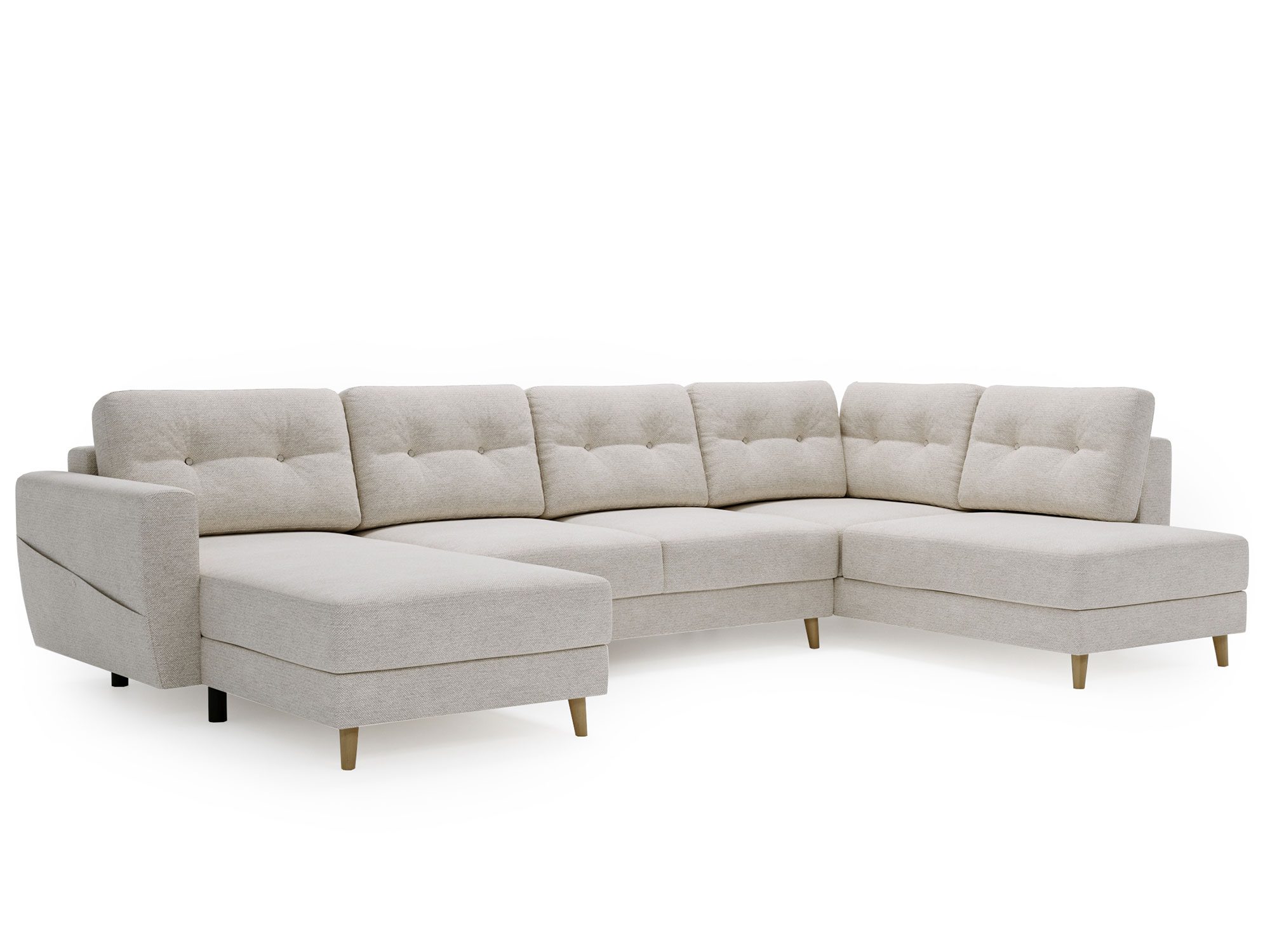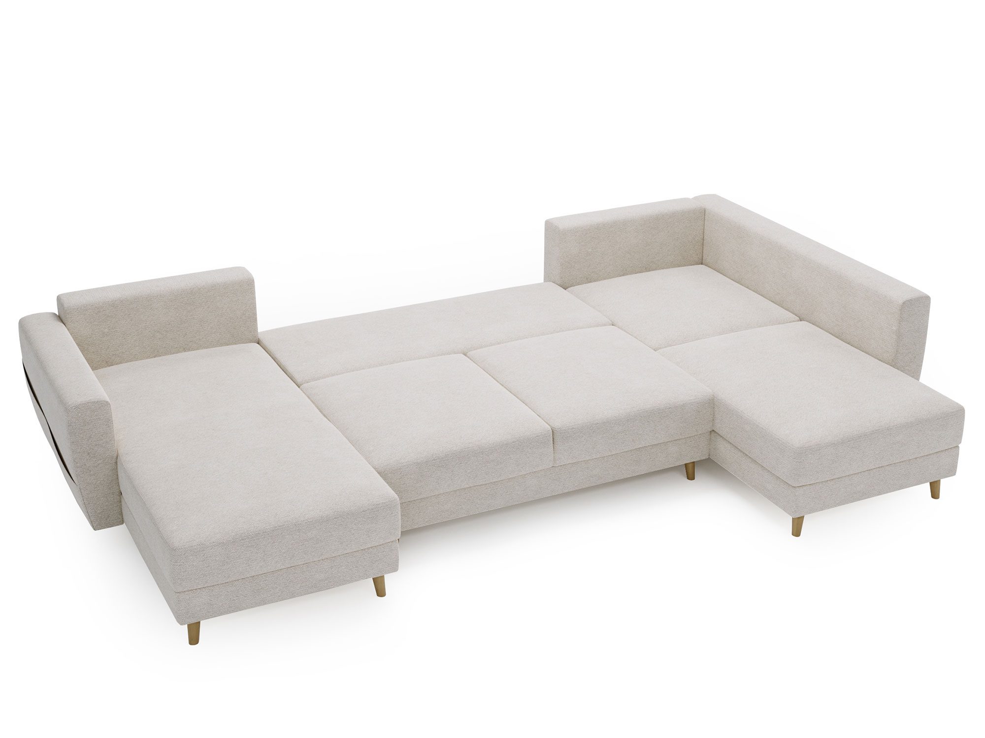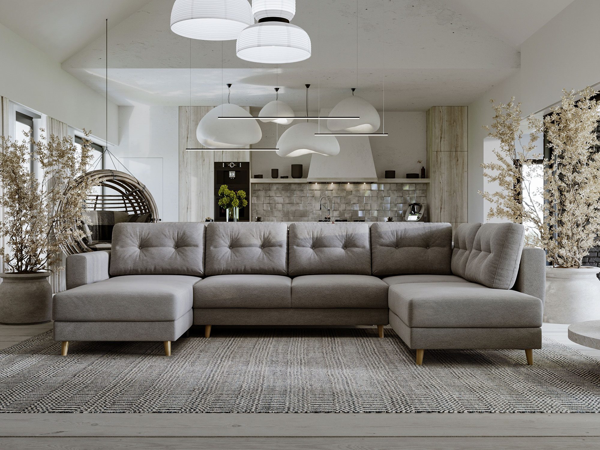 **Narożnik EVELIN Beżowy Skandynawski Styl** został zaprojektowany z myślą o wygodzie dla całej rodziny. Jego kształt w literę U zapewnia obszerną przestrzeń do relaksu, gdzie każdy znajdzie dla siebie idealne miejsce. **Siedzisko zbudowane na sprężynach falistych** gwarantuje doskonałe podparcie dla ciała, dzięki czemu EVELIN staje się idealnym miejscem do codziennego odpoczynku. Miękkie poduszki oparciowe, które można dowolnie aranżować, zapewniają dodatkowy komfort, umożliwiając dopasowanie mebla do indywidualnych potrzeb.