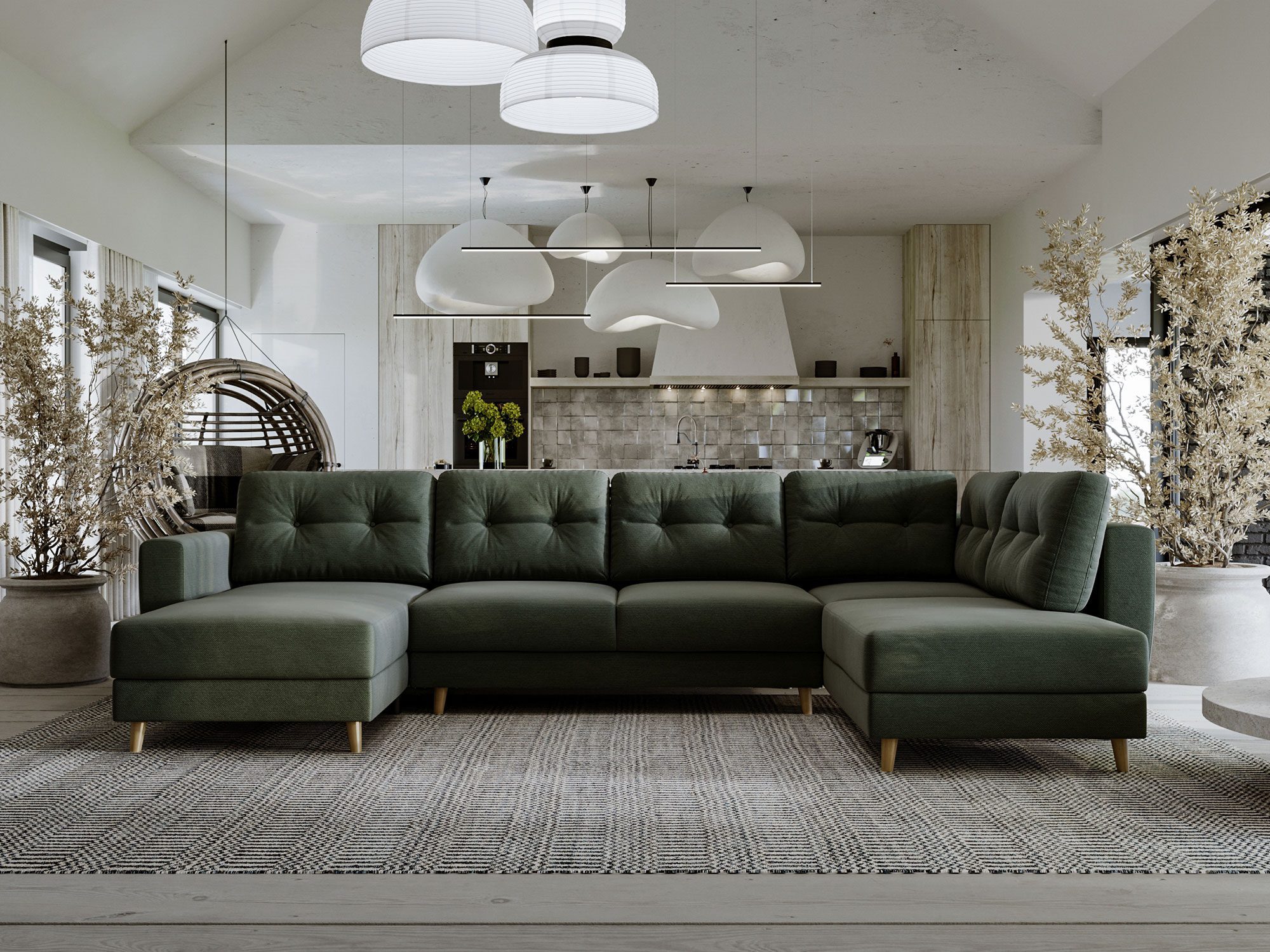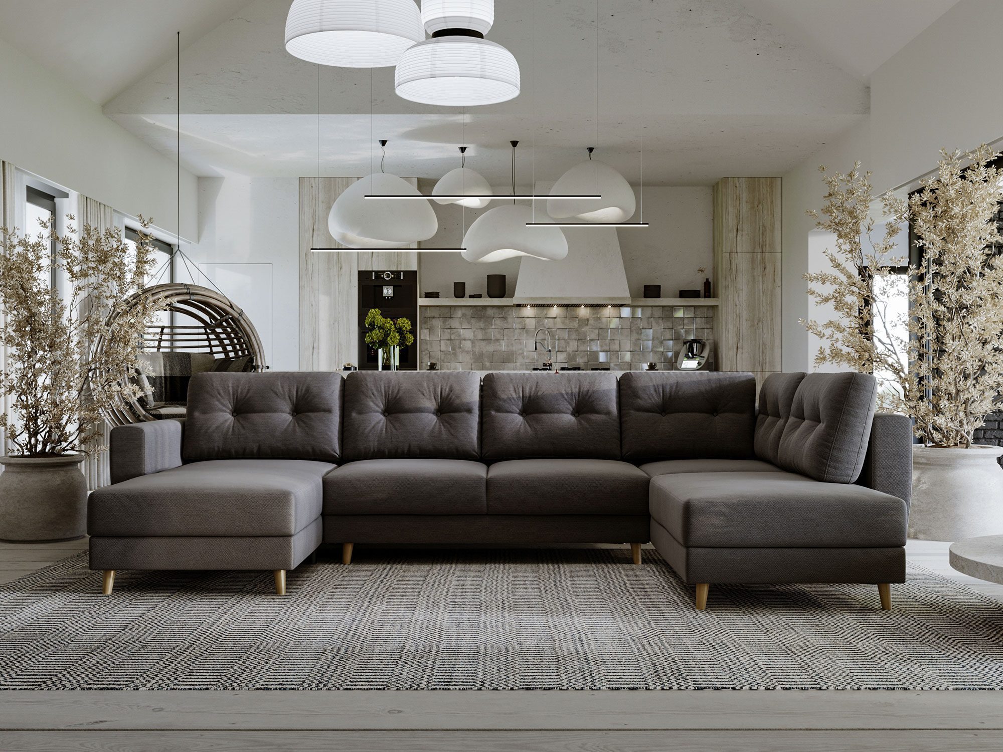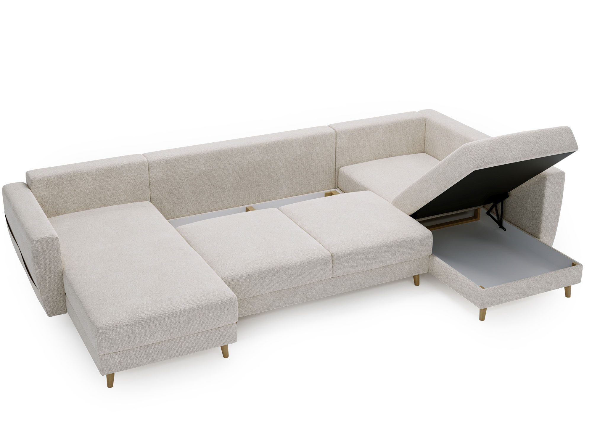 **Narożnik EVELIN Beżowy Skandynawski Styl** został zaprojektowany z myślą o wygodzie dla całej rodziny. Jego kształt w literę U zapewnia obszerną przestrzeń do relaksu, gdzie każdy znajdzie dla siebie idealne miejsce. **Siedzisko zbudowane na sprężynach falistych** gwarantuje doskonałe podparcie dla ciała, dzięki czemu EVELIN staje się idealnym miejscem do codziennego odpoczynku. Miękkie poduszki oparciowe, które można dowolnie aranżować, zapewniają dodatkowy komfort, umożliwiając dopasowanie mebla do indywidualnych potrzeb.