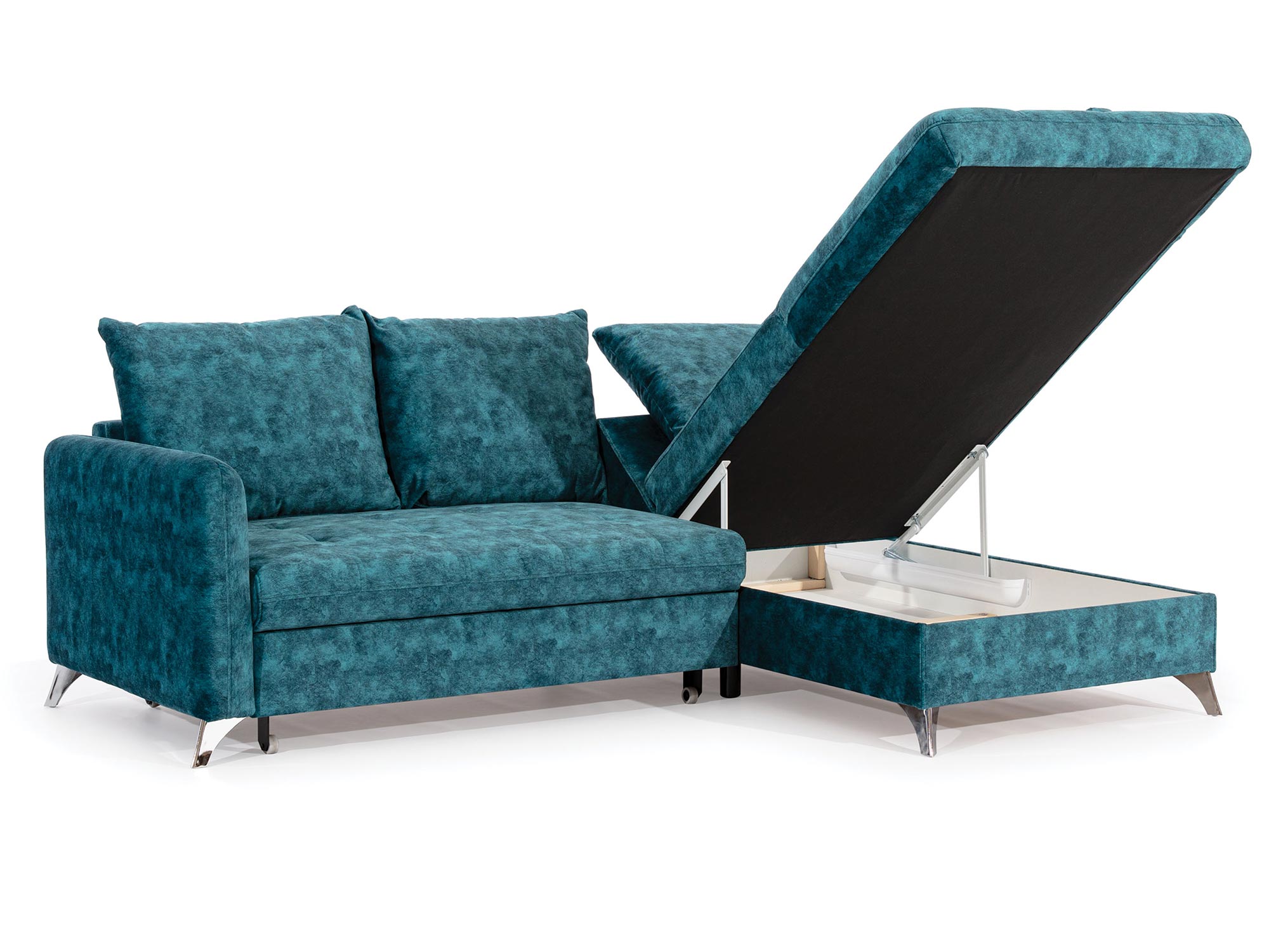• Wygodne siedzisko i materac – Siedzisko wypełnione pianką VP oferuje optymalne wsparcie i komfort. Dodatkowo piankowy materac zapewnia wygodę podczas snu i odpoczynku, co sprawia, że narożnik Lazona to doskonały wybór do codziennego użytku.