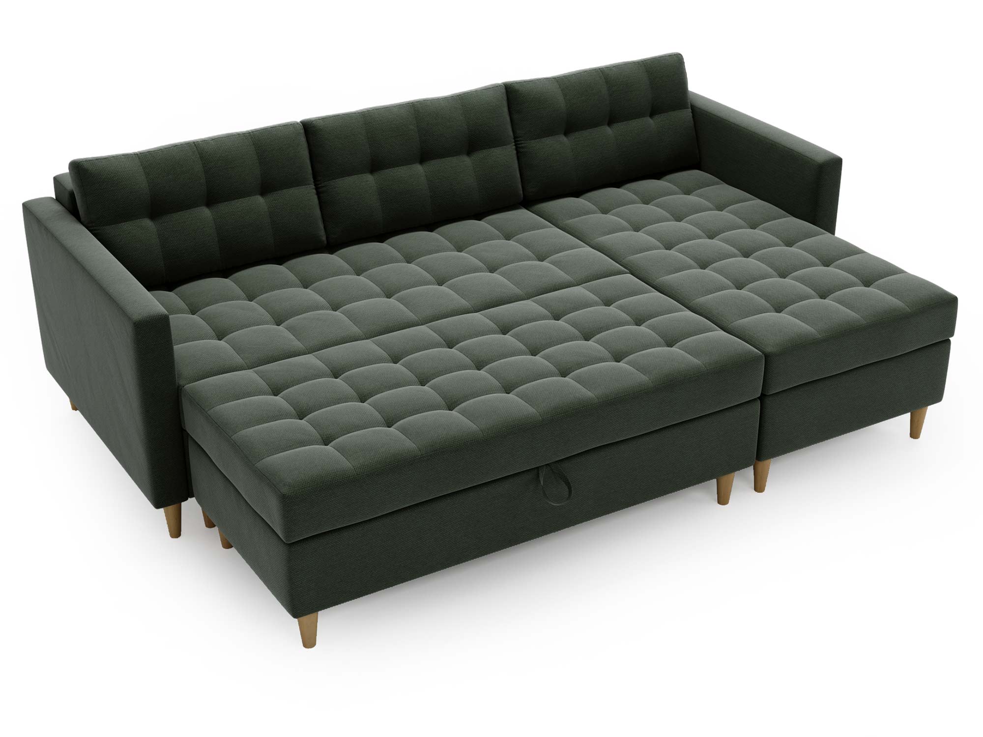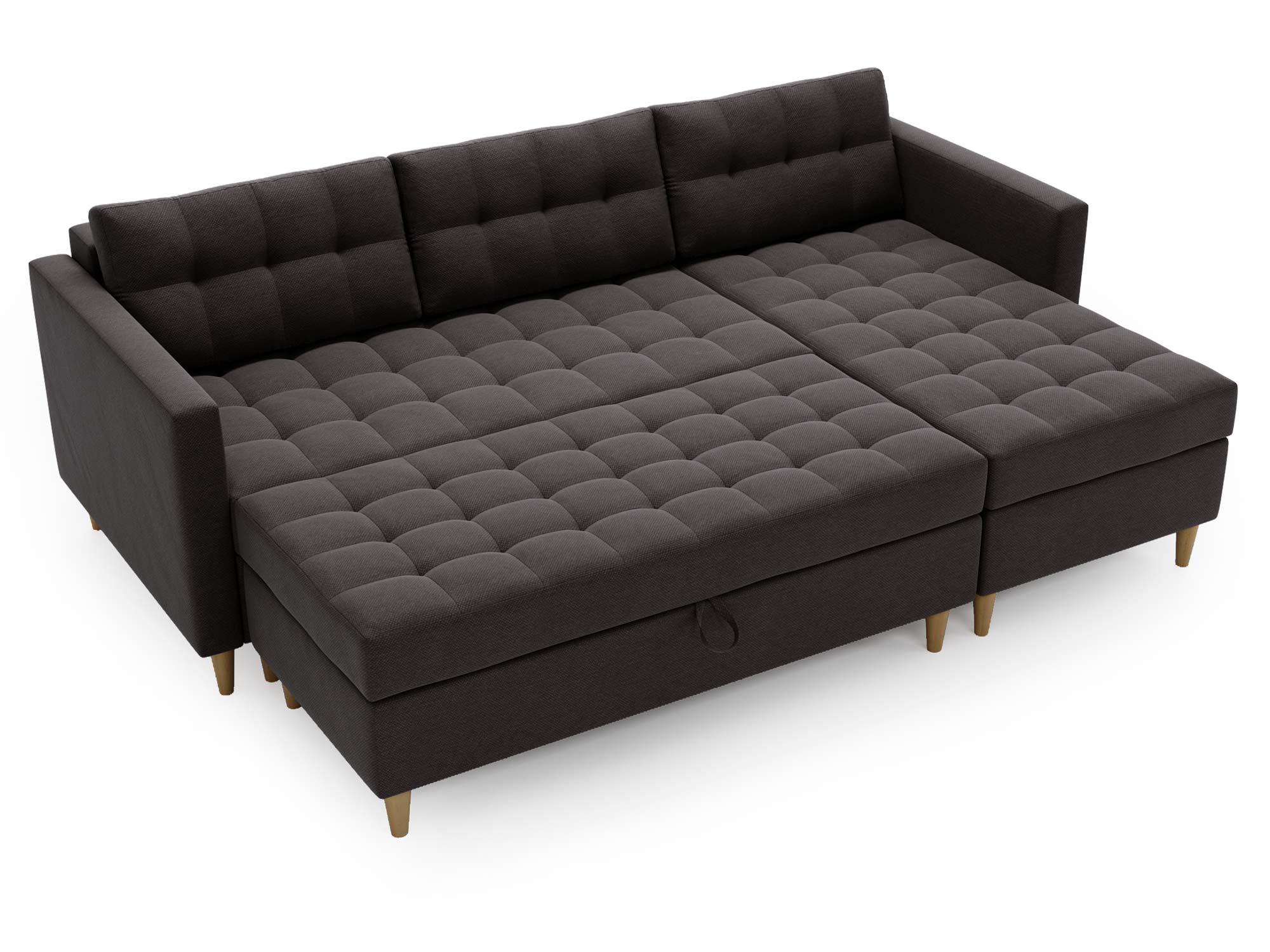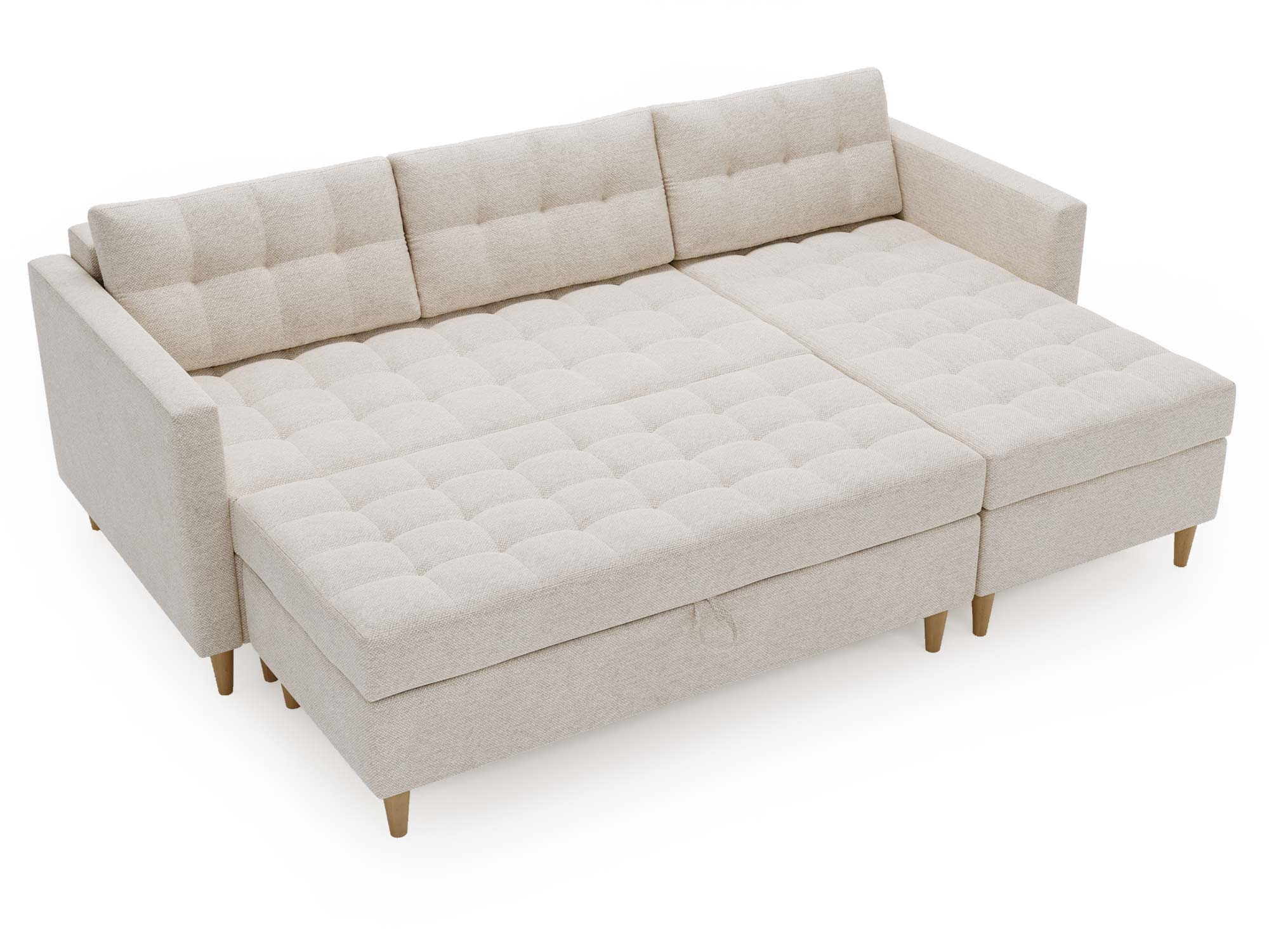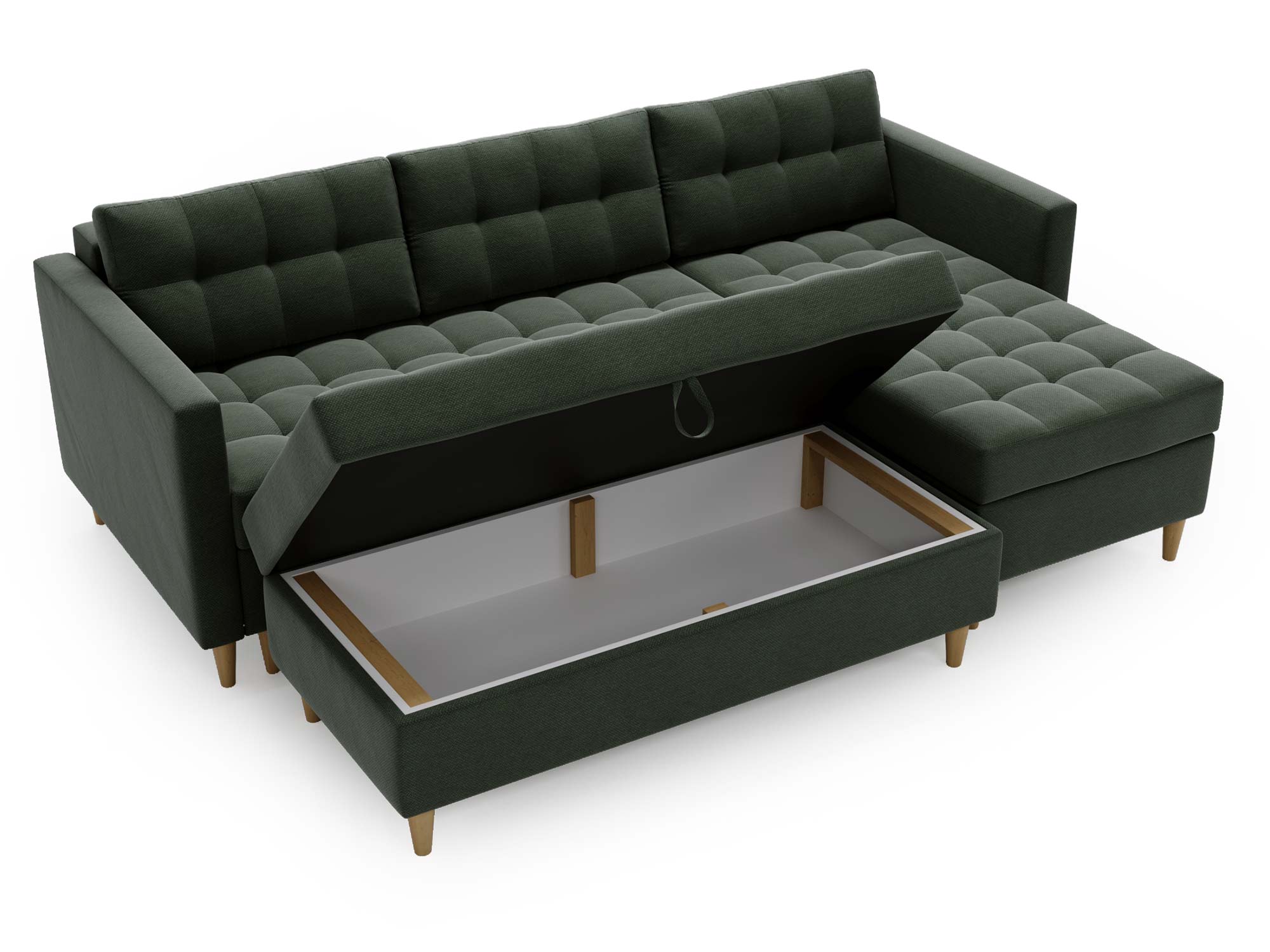 - Wbudowana skrzynka w pufie umożliwia przechowywanie pościeli i innych drobiazgów.