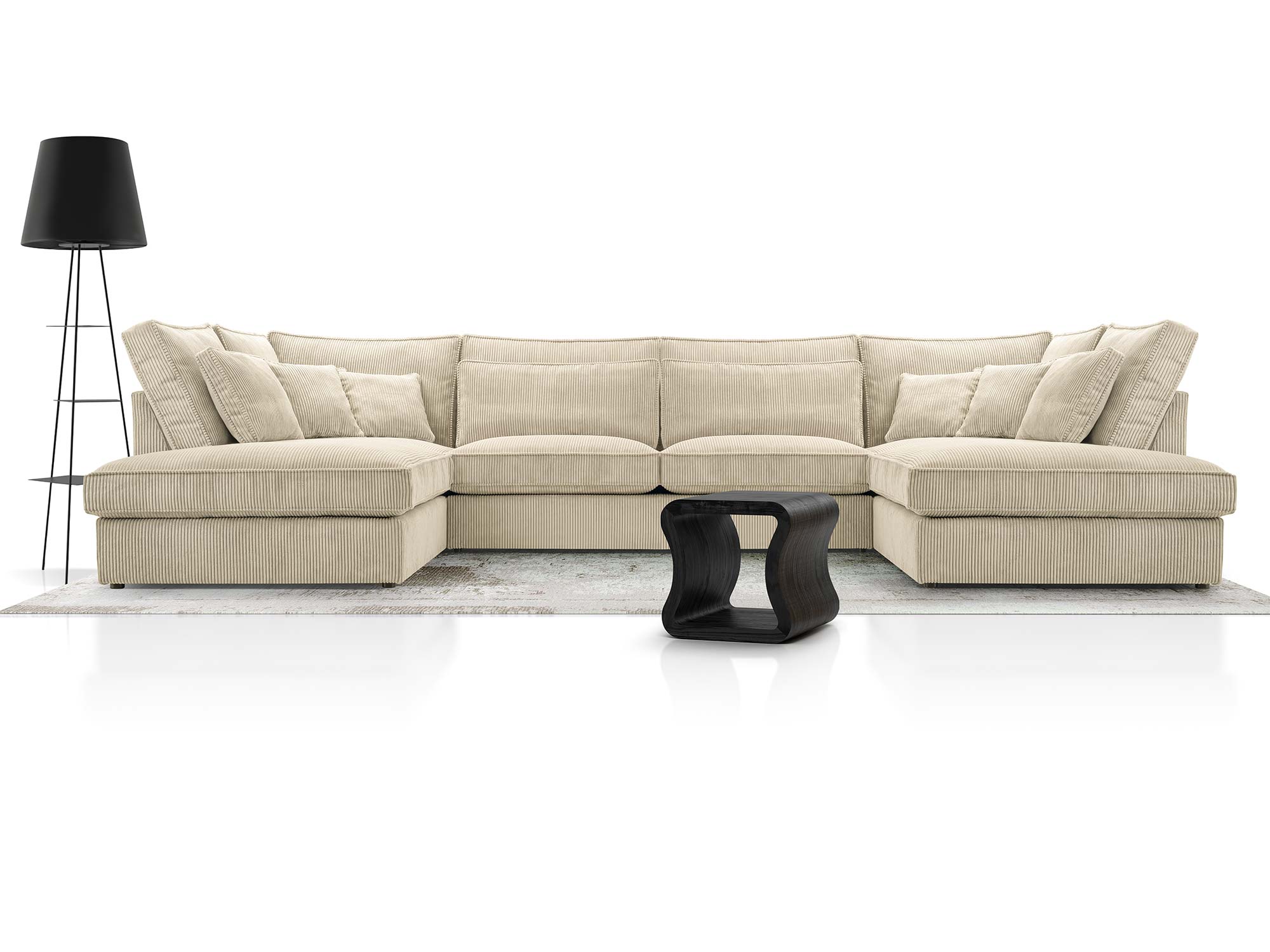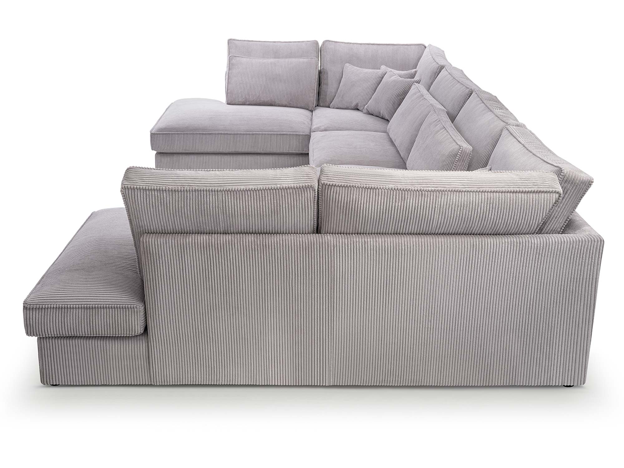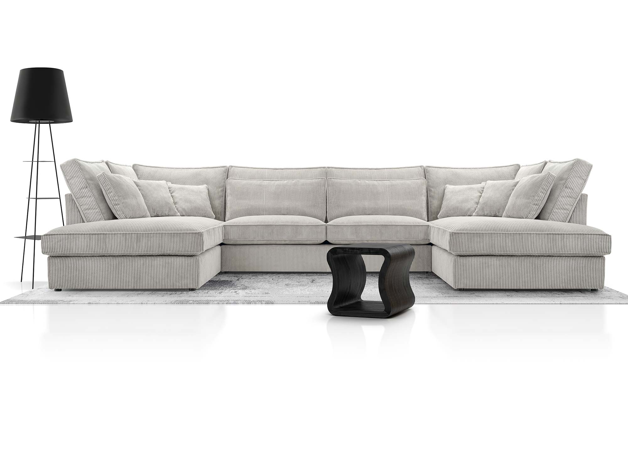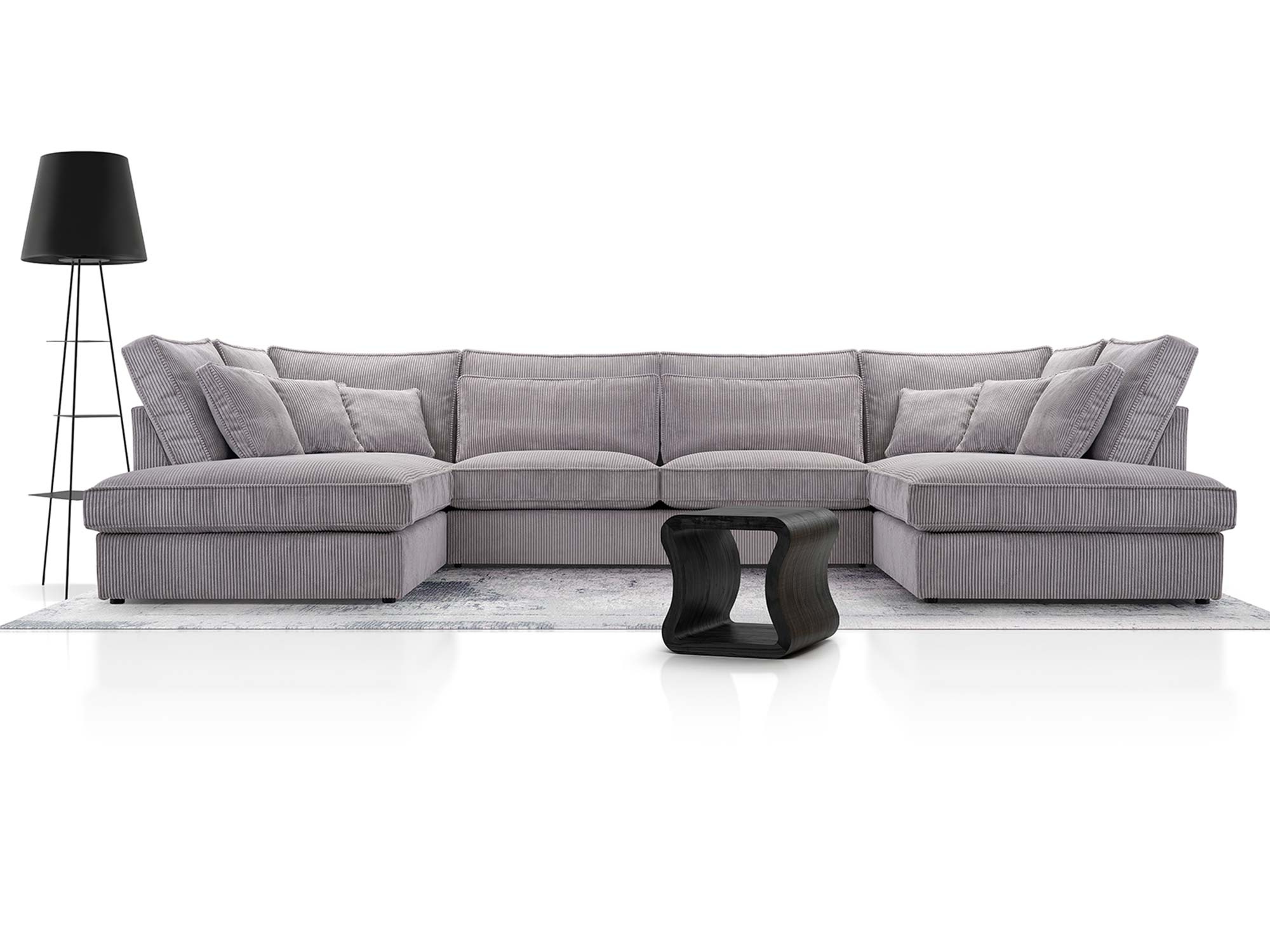 Vera U to narożnik dla wymagających – bez funkcji spania, bez pojemnika, a więc całkowicie skoncentrowany na wygodzie siedzenia i wytrzymałości. Dzięki jakościowym materiałom oraz klasycznemu układowi w kształcie litery U stanie się centrum domowej strefy relaksu.