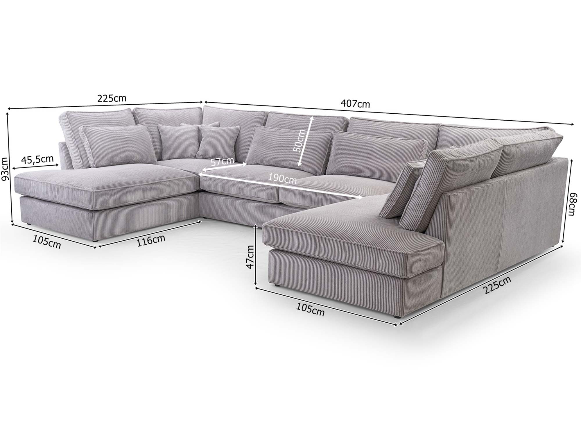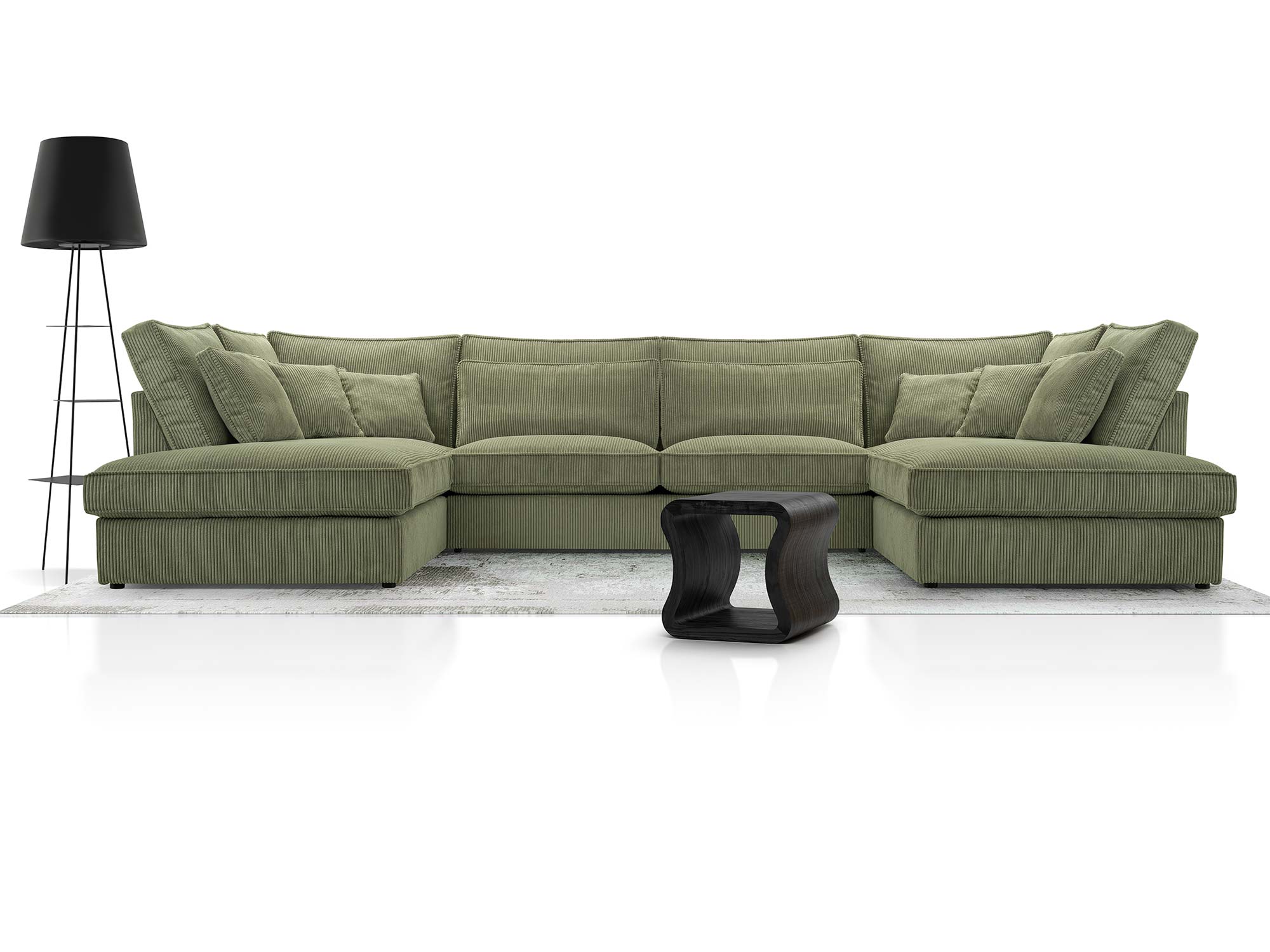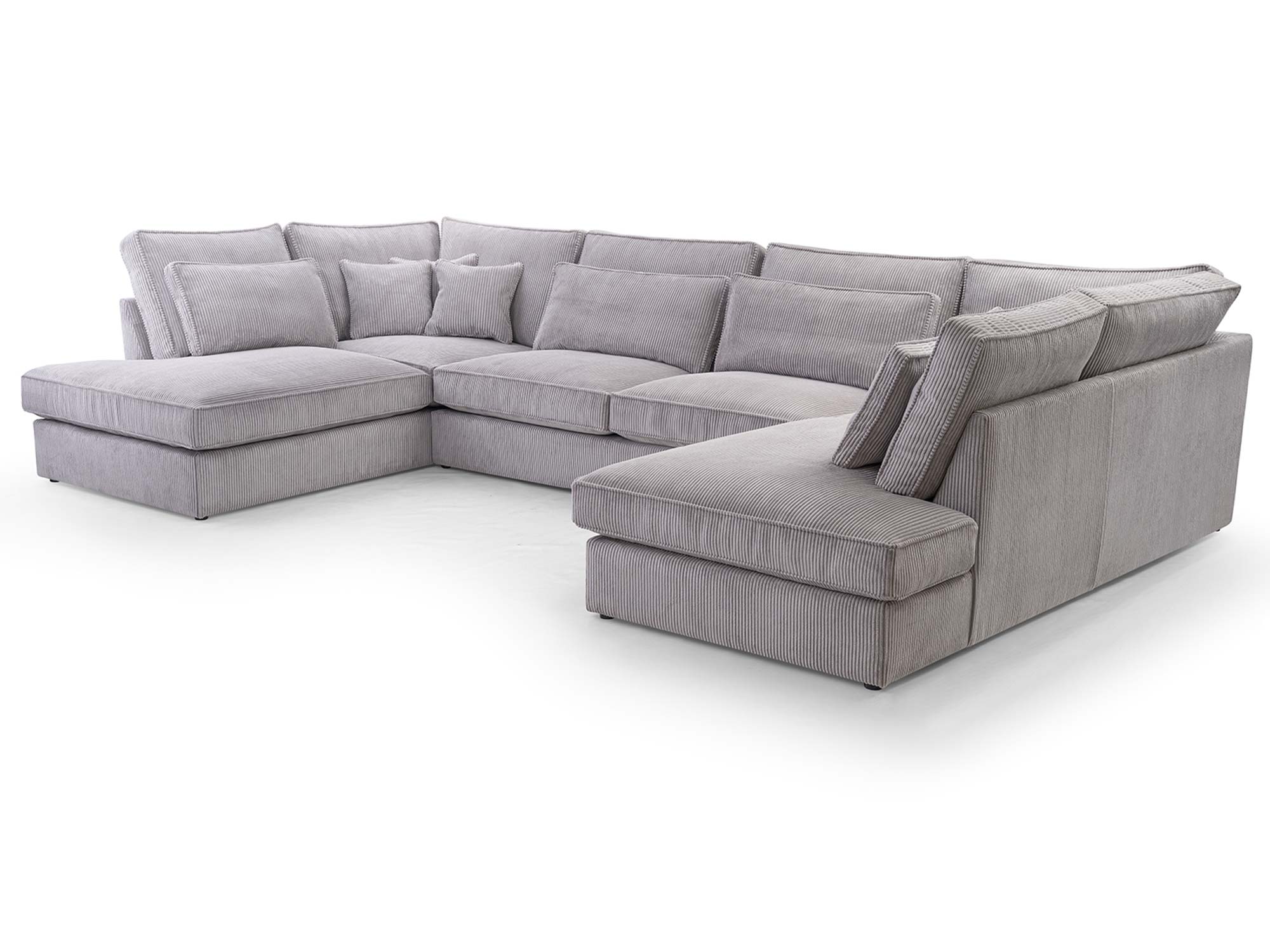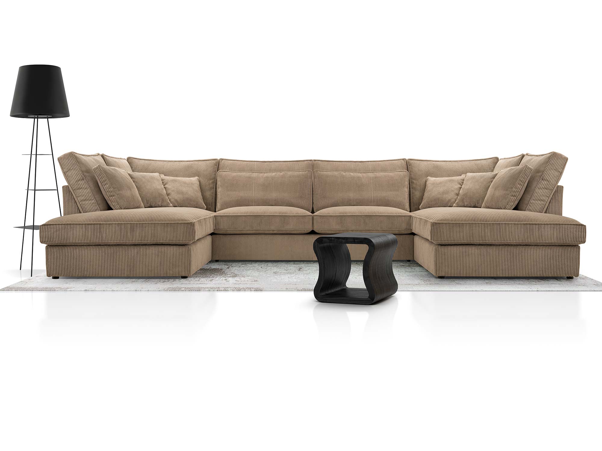 Vera U to narożnik dla wymagających – bez funkcji spania, bez pojemnika, a więc całkowicie skoncentrowany na wygodzie siedzenia i wytrzymałości. Dzięki jakościowym materiałom oraz klasycznemu układowi w kształcie litery U stanie się centrum domowej strefy relaksu.