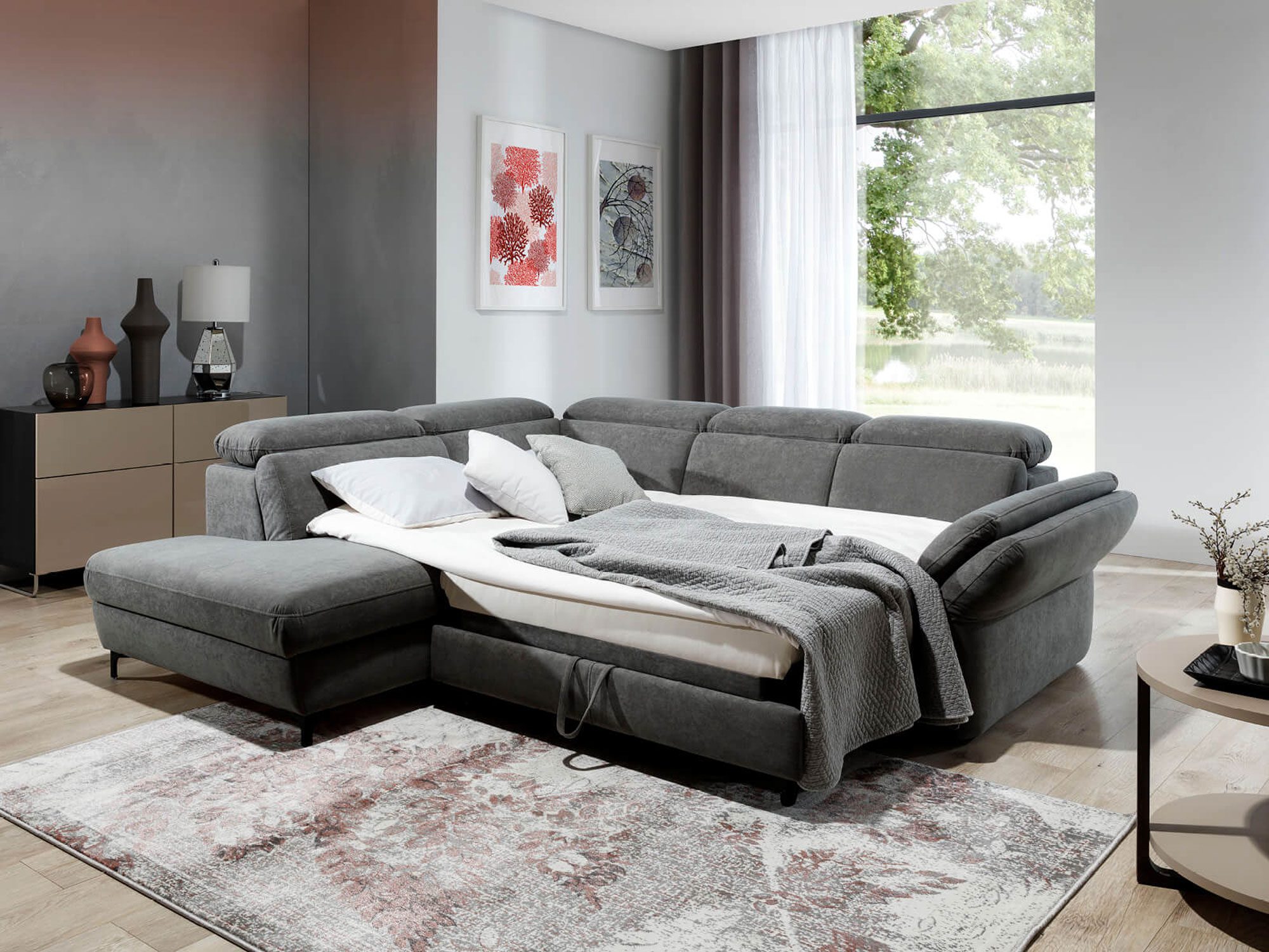 - Łatwość użytkowania – Intuicyjny mechanizm rozkładania sprawia, że przekształcenie narożnika w łóżko jest szybkie i proste, co czyni Paolo idealnym wyborem do codziennego użytku.
