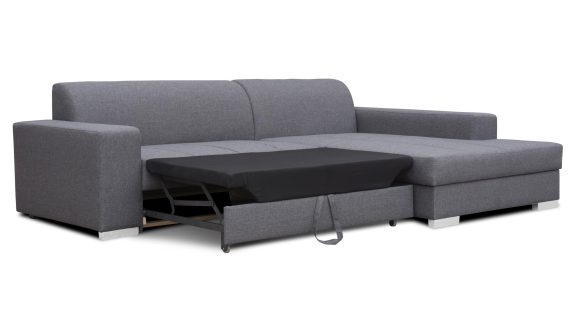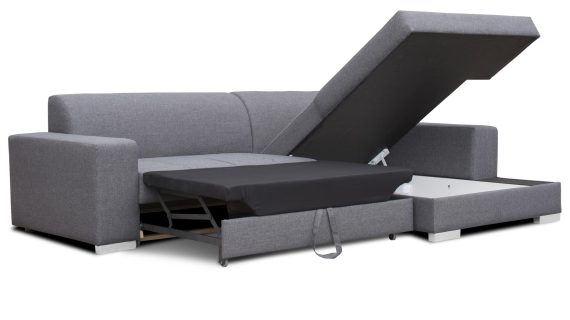 Narożnik rozkładany w kolorze szarym z funkcją spania i pojemnikiem
