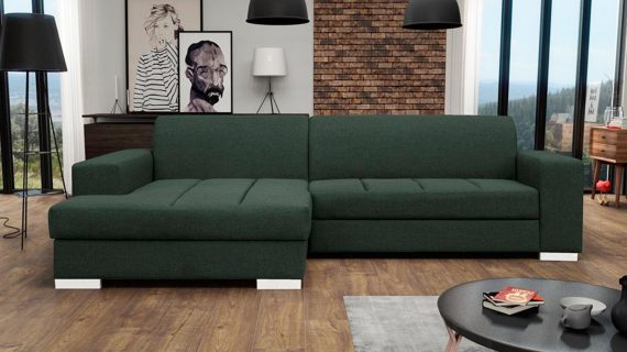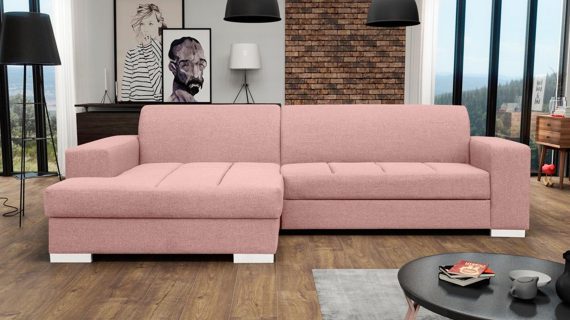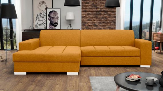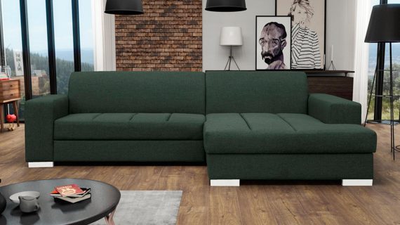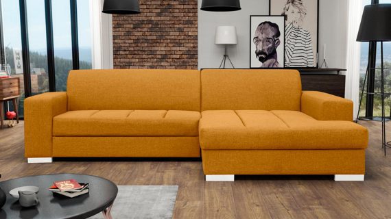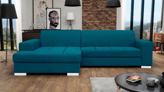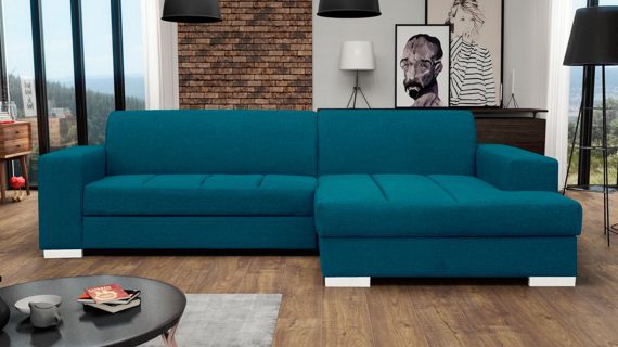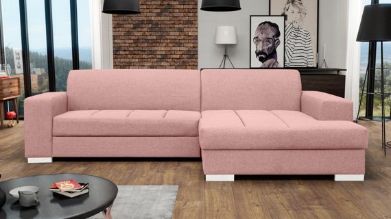 Co najważniejsze wykorzystane do produkcji prezentowanego mebla materiały gwarantują jego odpowiednią elastyczność i wygodę, a przy tym jego nienaganny wygląd. Ponadto narożnik wyposażony jest w pojemnik na pościel oraz funkcję spania umożliwiającą rozłożenie narożnika. Co więcej ten nowoczesny model tapicerowany jest tkaniną o szerokiej gamie kolorystycznej do wyboru. Pozwoli to przede wszystkim na idealne dopasowanie go do własnych preferencji i wystroju urządzanego wnętrza.