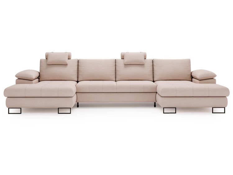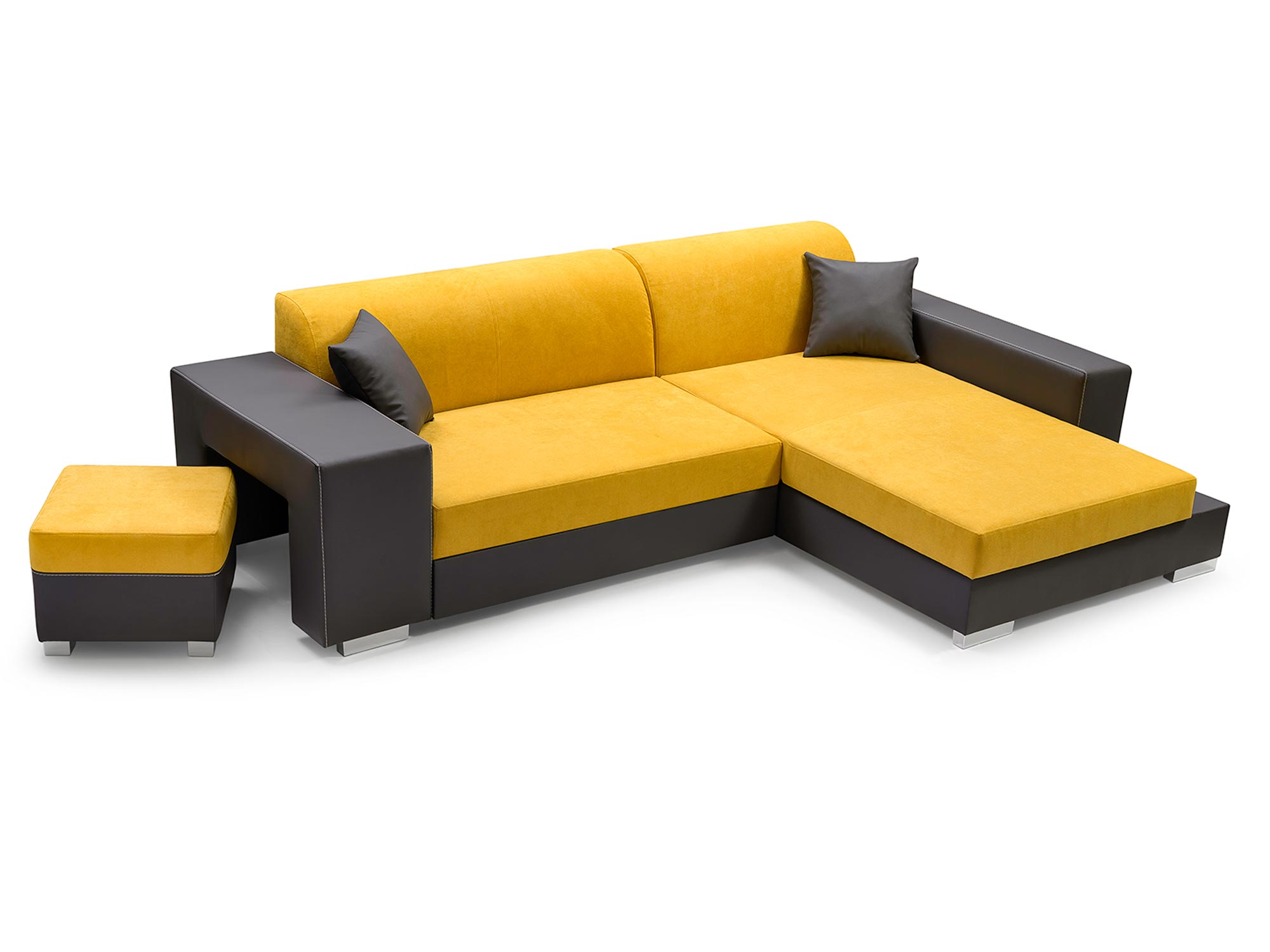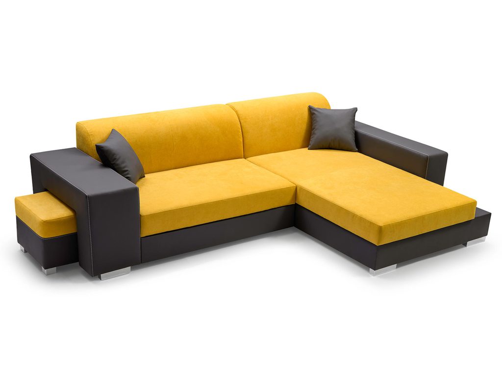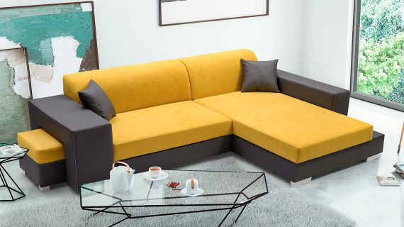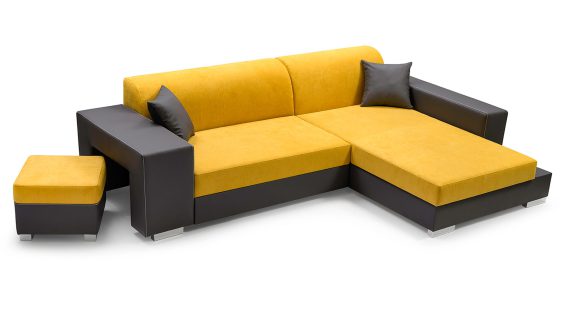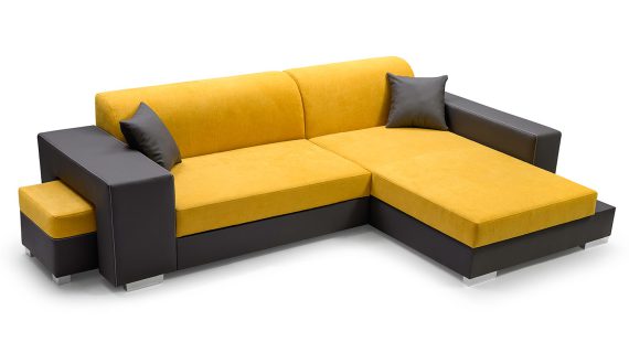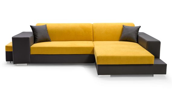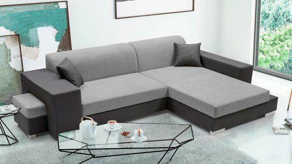 Przede wszystkim nowoczesny narożnik z pufą DELMAS funkcjonalny w codziennym użytkowaniu model z funkcją spania. Ponadto przyciąga wzrok swoim modernistycznym designem. Co więcej narożnik dostępny jest w wersji prawostronnej lub lewostronnej do wyboru, dzięki czemu można łatwością dopasować go do wnętrza. Dodatkowo mebel posiada nóżki w kolorze chromu, które dodają mu elegancji.