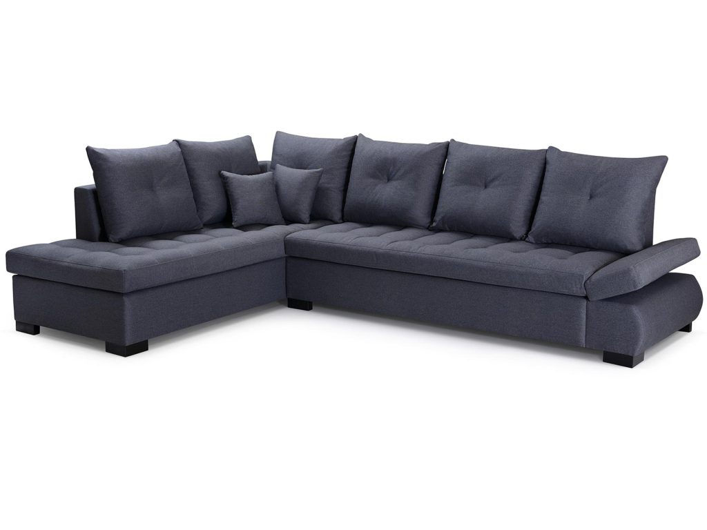 Po pierwsze wygodny narożnik z poduszkami BAMAKO dostępny jest w wersji prawo- lub lewostronnej do wyboru dzięki czemu łatwo można dostosować ją do każdego pomieszczenia. Ponadto model został wypełniony w sprężynę falistą, a także piankę tapicerską oraz specjalną silikonową poduszką silikonem, dzięki czemu zapewnia niebywały komfort. Co więcej narożnik BAMAKO posiada regulowany podłokietnik, który świetnie może posłużyć jako zagłówek do drzemki. Dodatkowo mebel ten zdecydowanie przyciąga uwagę, dzięki swojemu pikowanemu siedziskowi i dekoracyjnym poduszkom jako oparcie .