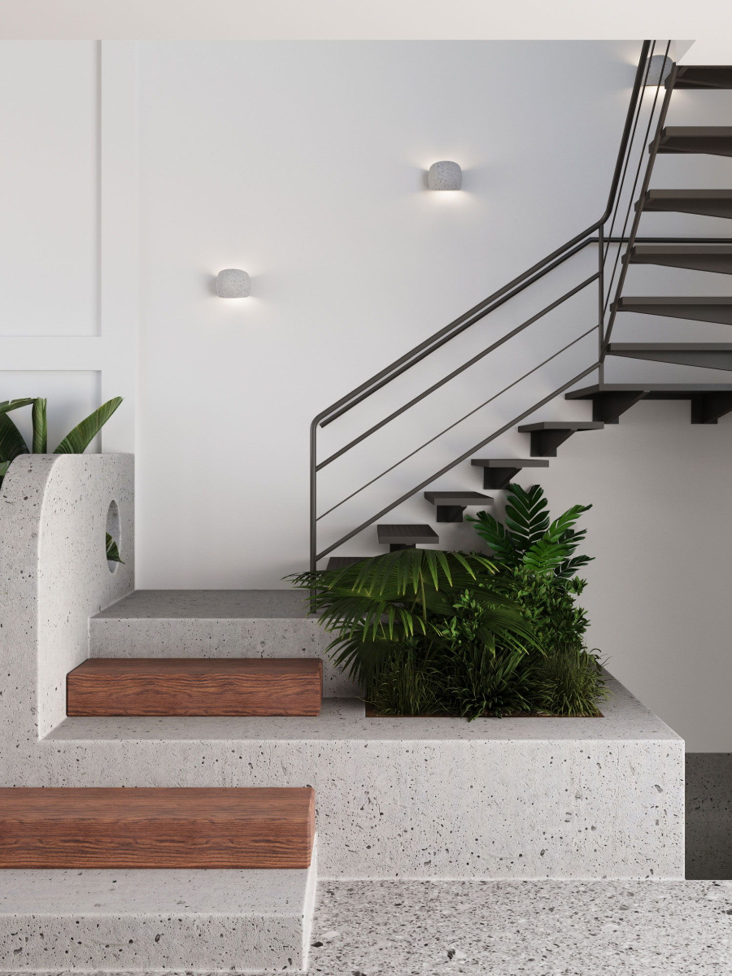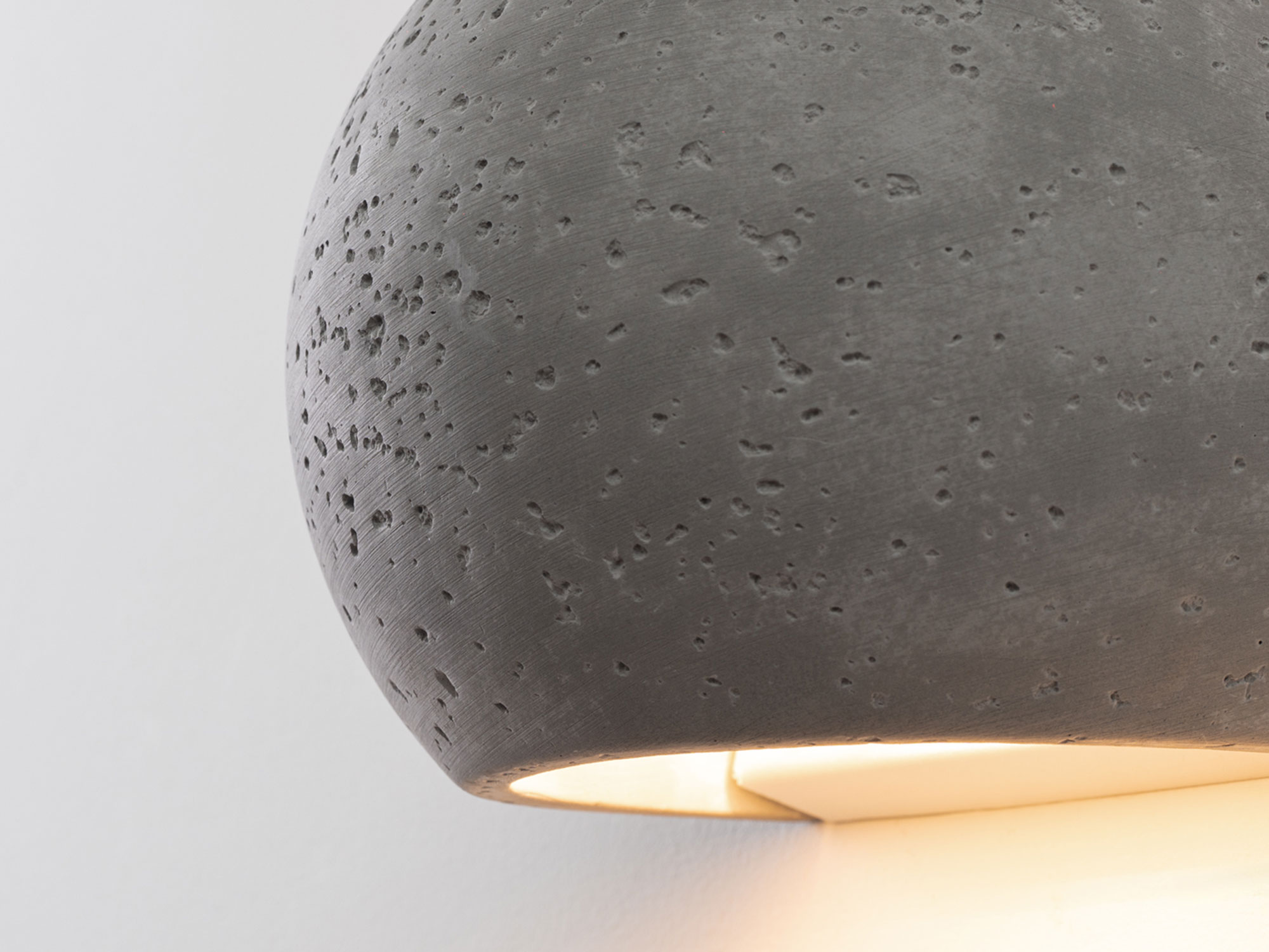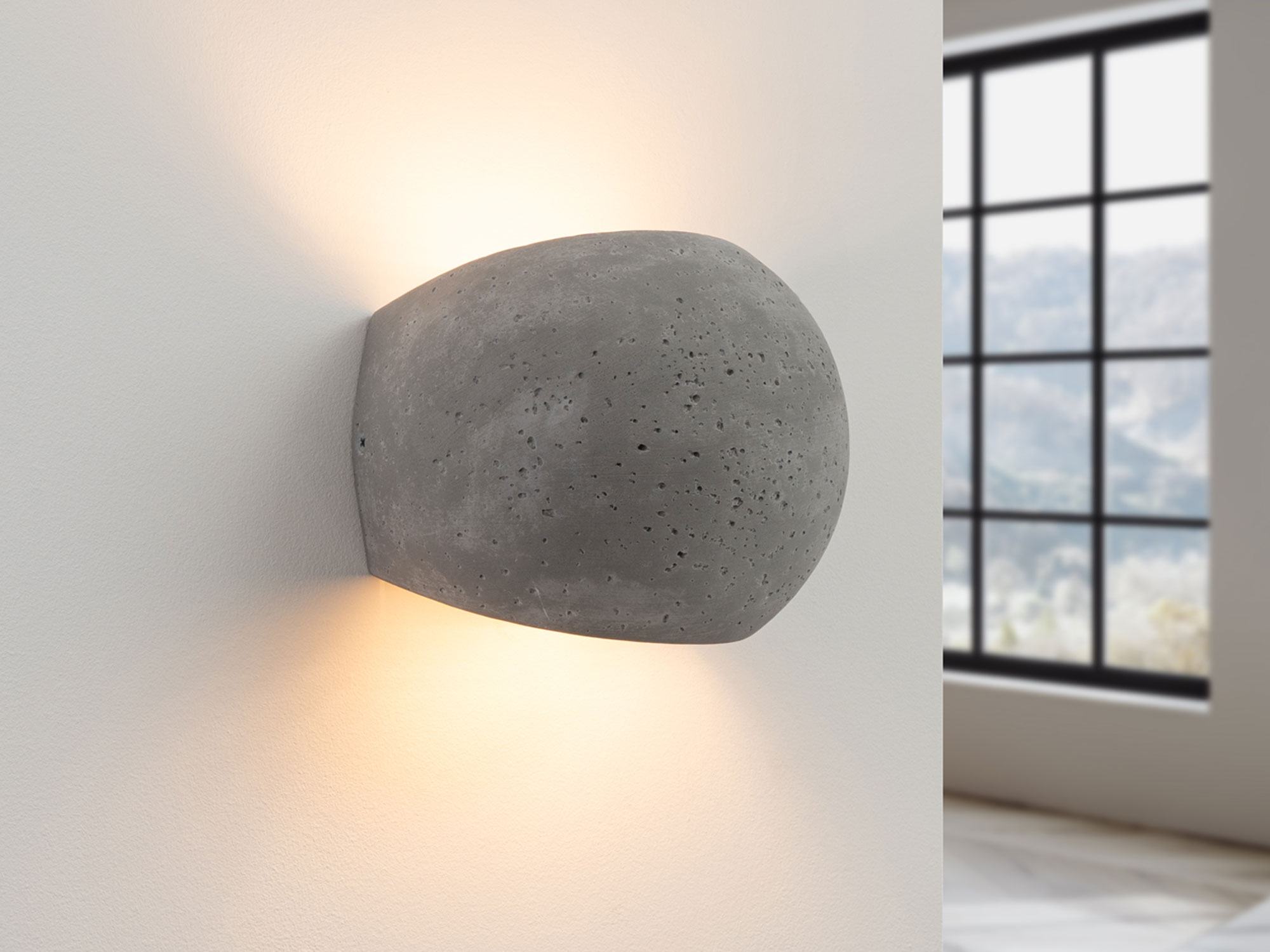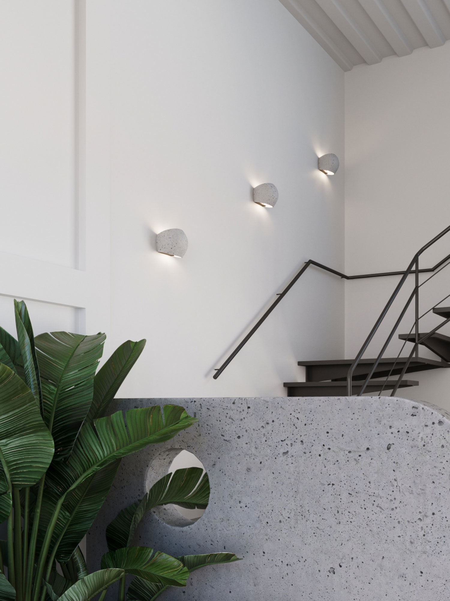 Industrialne wnętrza kochają autentyczne materiały: beton, stal, drewno. Kinkiet ORBITA idealnie wpisuje się w tę filozofię – jego korpus wykonano z litego betonu, który urzeka surowym, matowym wykończeniem. Naturalna szarość sprawia, że lampa jest neutralna, a jednocześnie przyciąga uwagę swoją formą. To właśnie prostota i naturalność czynią ją tak wyjątkową.