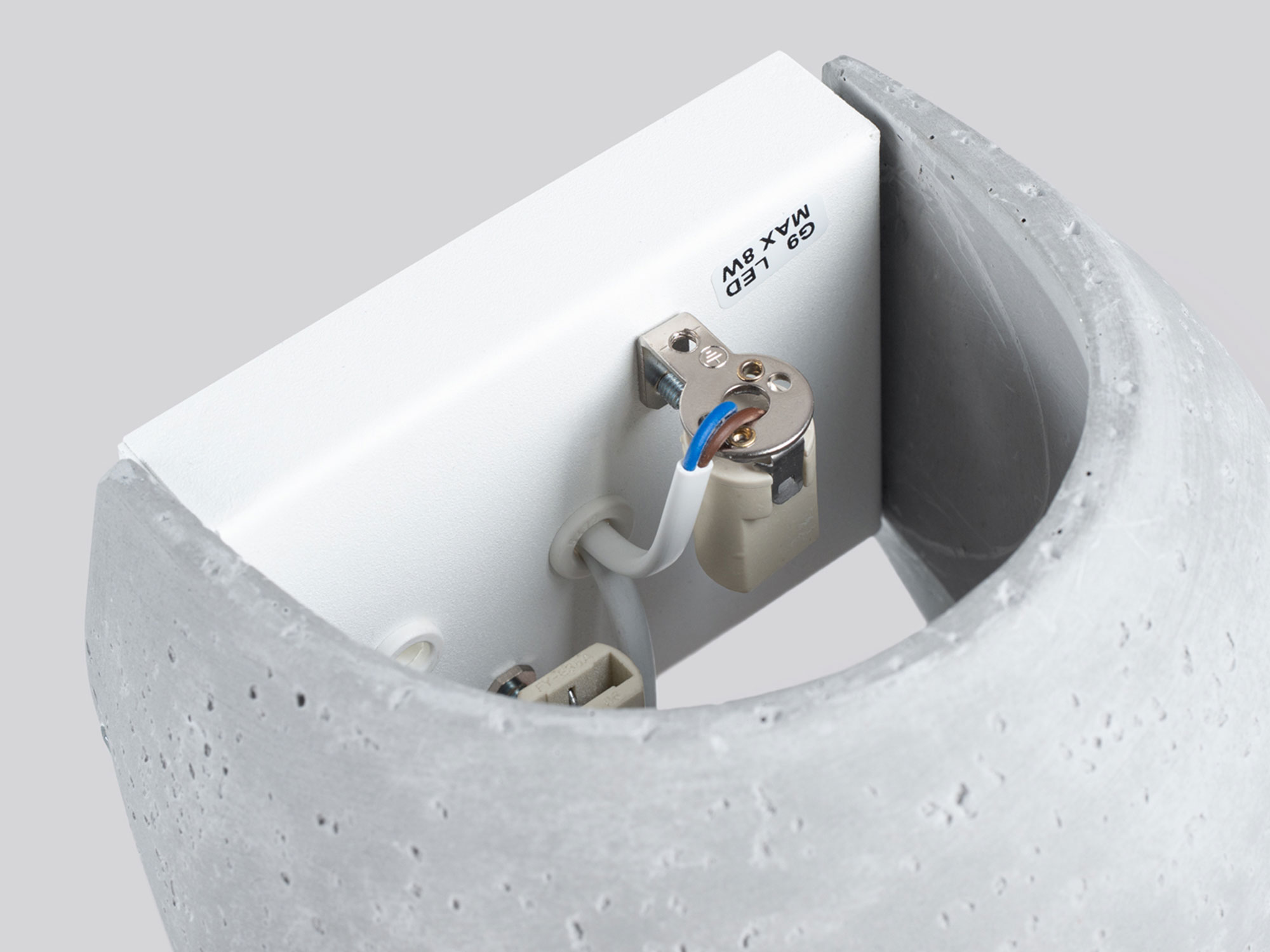 ORBITA została wyposażona w dwa źródła światła typu G9 (max 8W LED każde), co zapewnia nie tylko funkcjonalne doświetlenie, ale także efektowną grę światła i cienia. Betonowy korpus pięknie rozprasza światło, tworząc przytulną, ale jednocześnie dynamiczną atmosferę. To idealne rozwiązanie do salonu, sypialni, przedpokoju czy gabinetu – wszędzie tam, gdzie chcesz połączyć nowoczesny styl z nutą industrialnego klimatu.