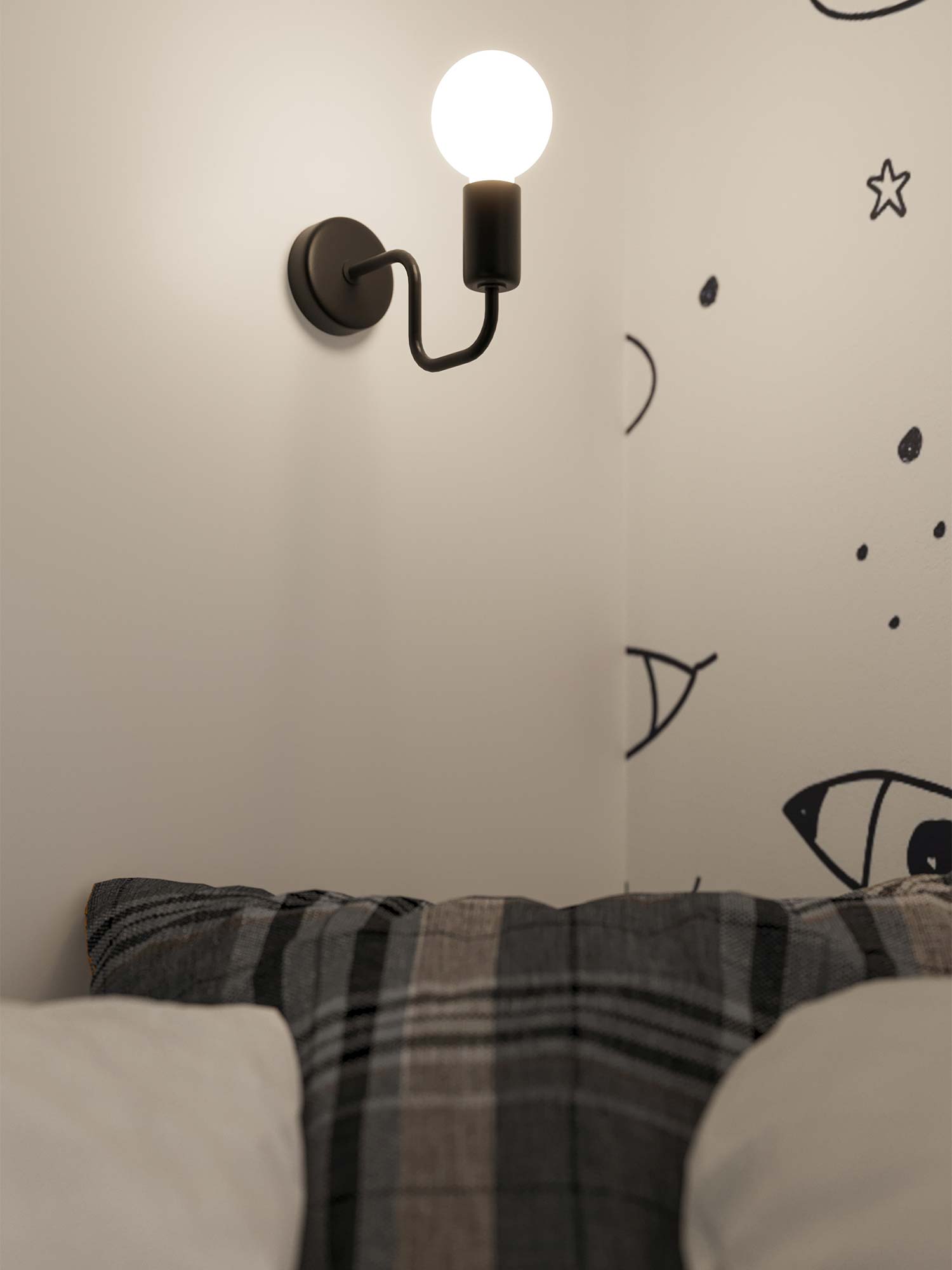 Solidna stal, elegancka czerń i możliwość dopasowania żarówki LED sprawiają, że kinkiet ten łączy w sobie funkcjonalność, trwałość i estetykę. Idealny do sypialni, salonu czy korytarza, gdzie światło powinno być miękkie i nastrojowe.
