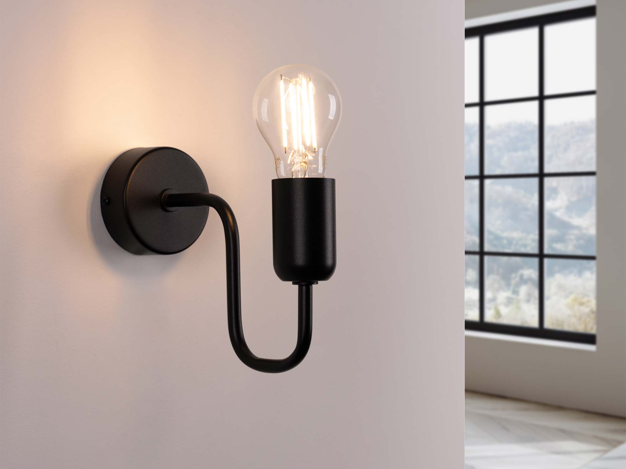 Prosta forma pozwala wyeksponować piękno samej żarówki. Wybierając żarówkę dekoracyjną typu filament, uzyskasz niezwykły efekt świetlny – kinkiet stanie się ozdobą samą w sobie. To idealny wybór dla osób ceniących minimalizm z nutą industrialnej elegancji.