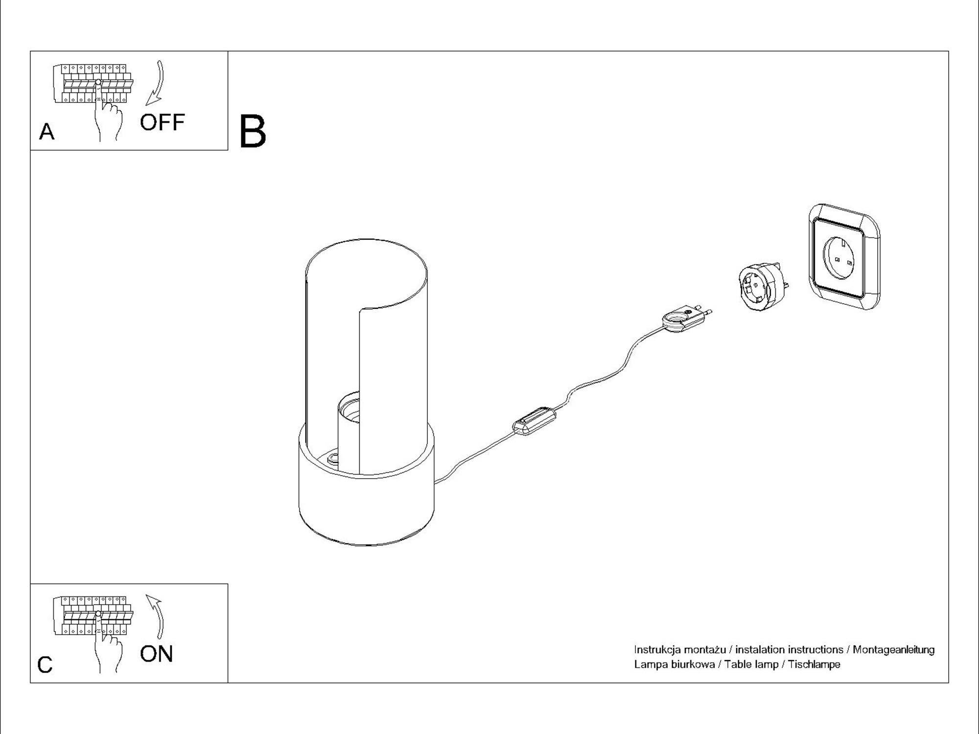 Źródło światła: E27, 1x max 15W LED, ~230V, 50Hz, IP20, klasa ochronności II