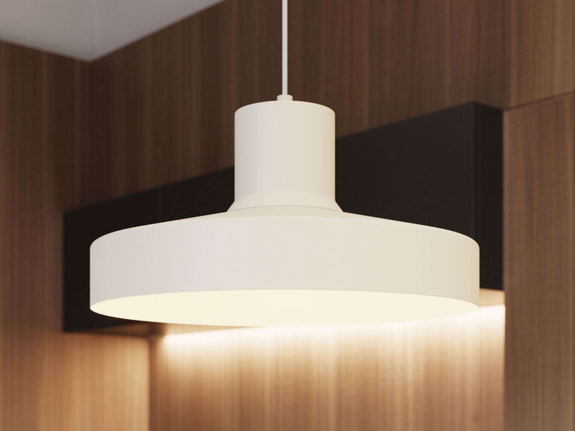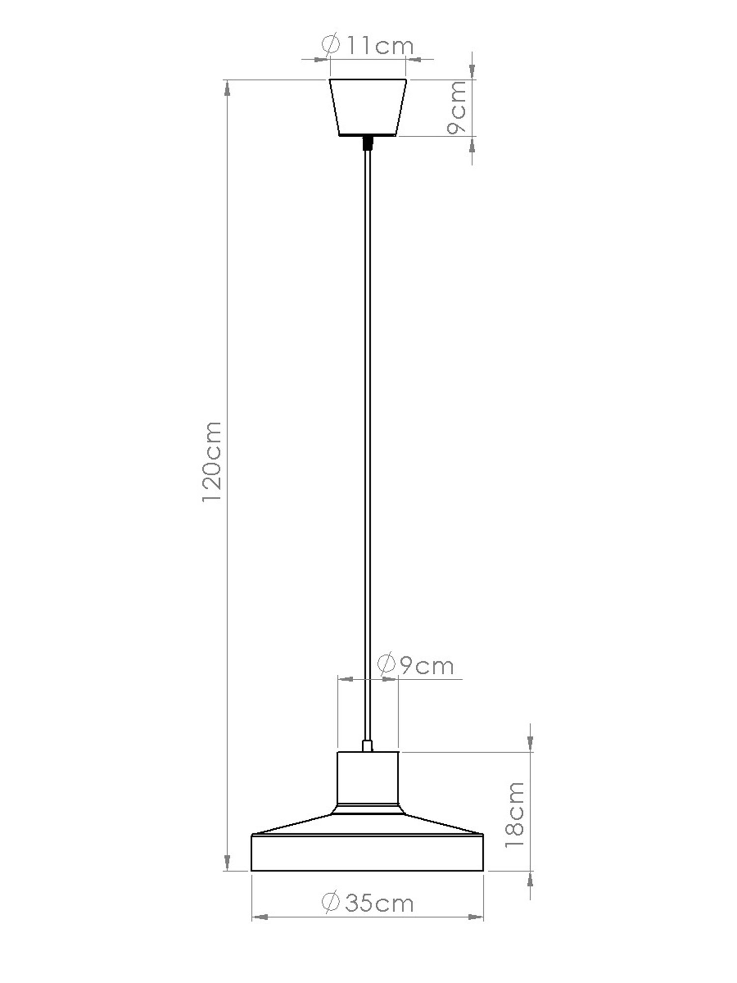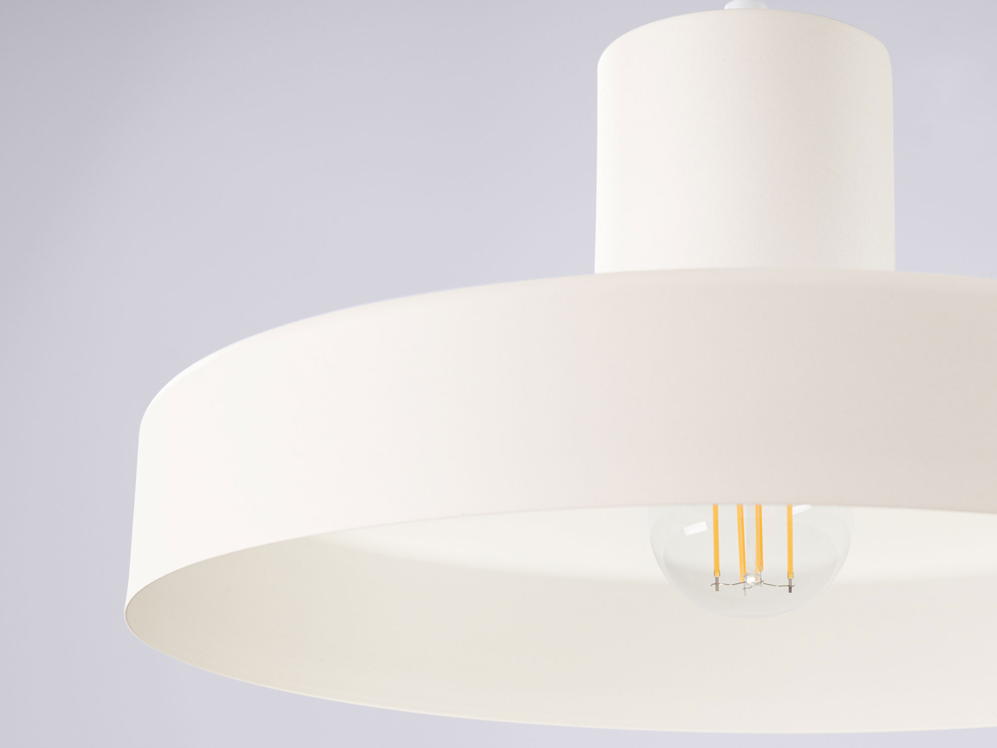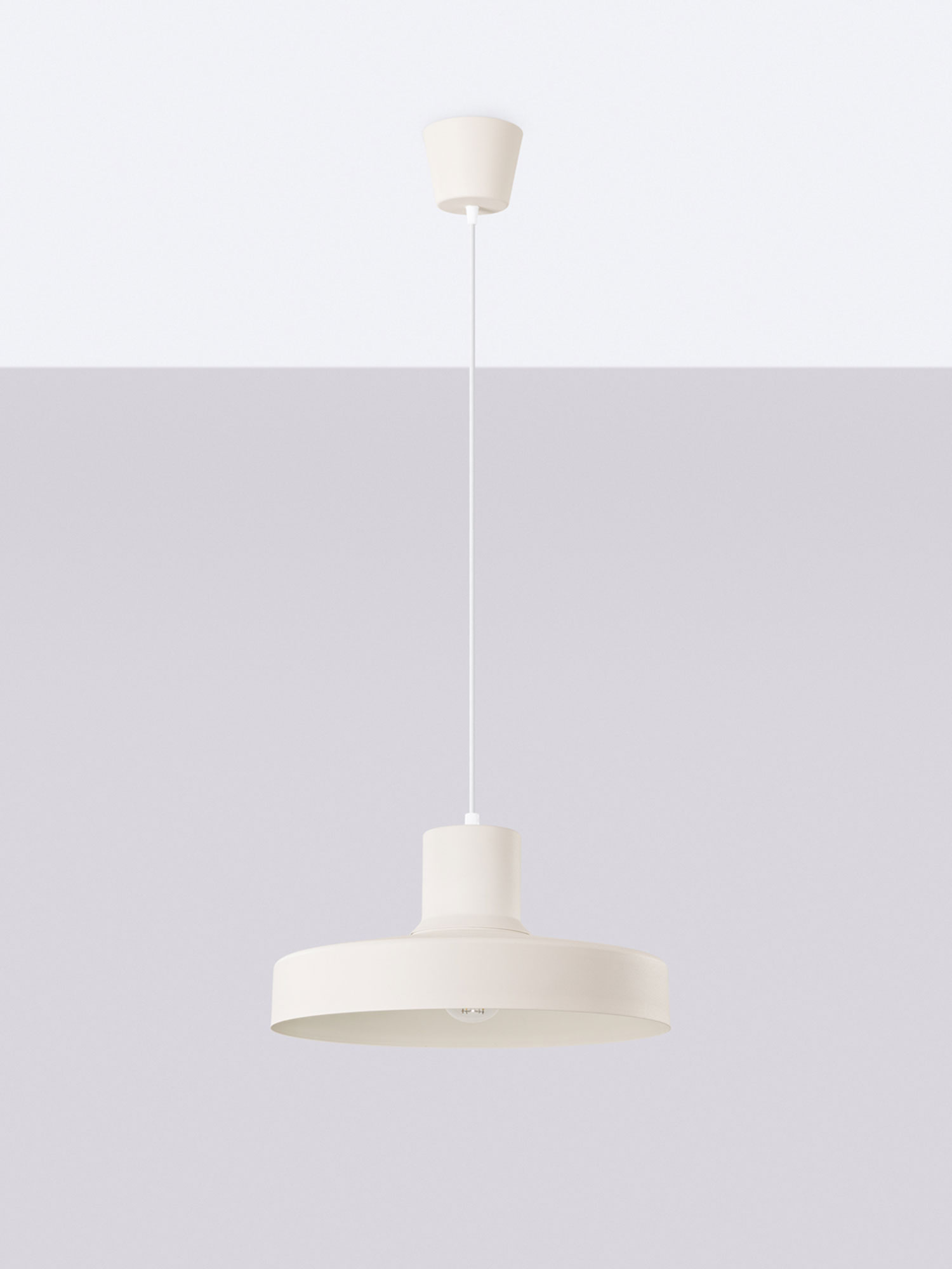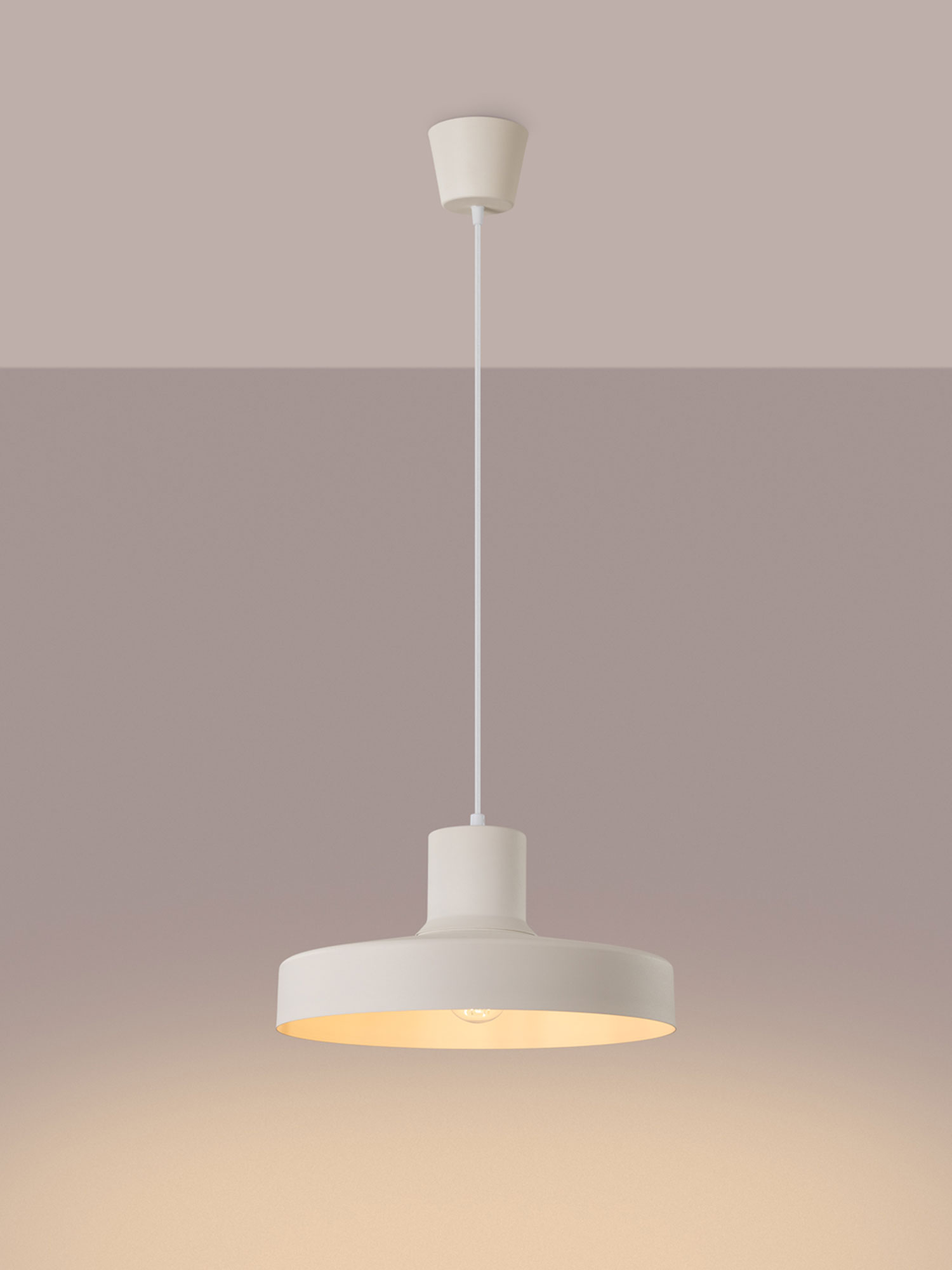 Klosz o średnicy 35 cm wykonany ze stali prezentuje się solidnie i nowocześnie. Prosta forma podkreśla minimalistyczny charakter lampy, a subtelna kolorystyka sprawia, że nie dominuje we wnętrzu, lecz delikatnie je dopełnia.