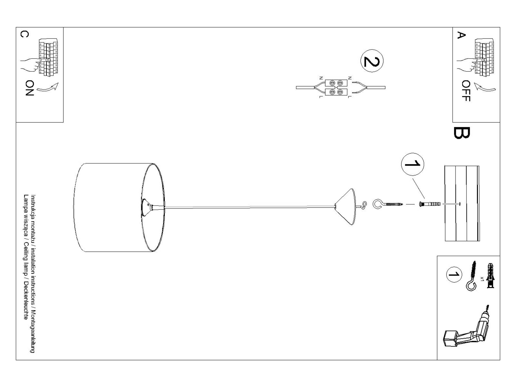 Źródło światła: E27, 1x max 15W LED, ~230V, 50Hz, IP20, klasa ochronności II