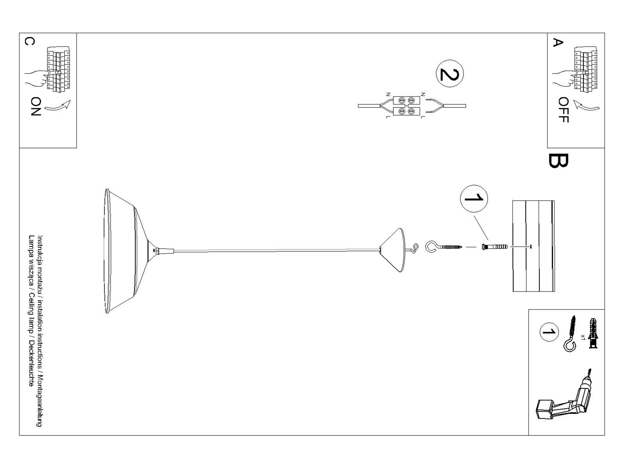 Źródło światła: E27, 1x max 15W LED, ~230V, 50Hz, IP20, klasa ochronności II