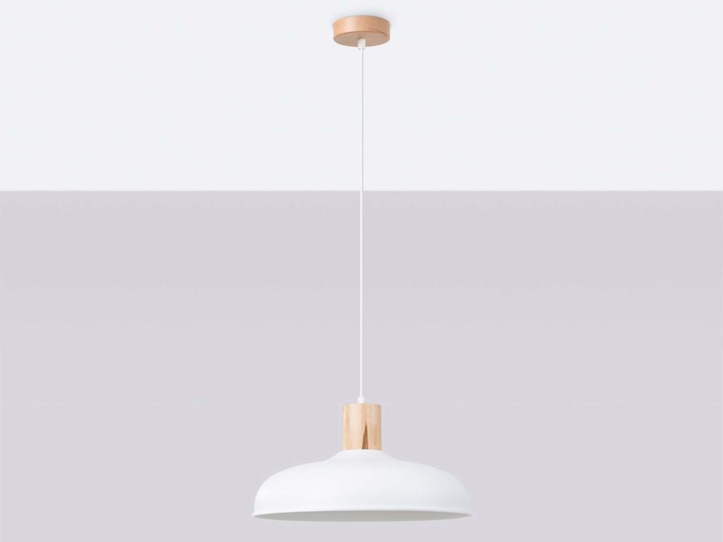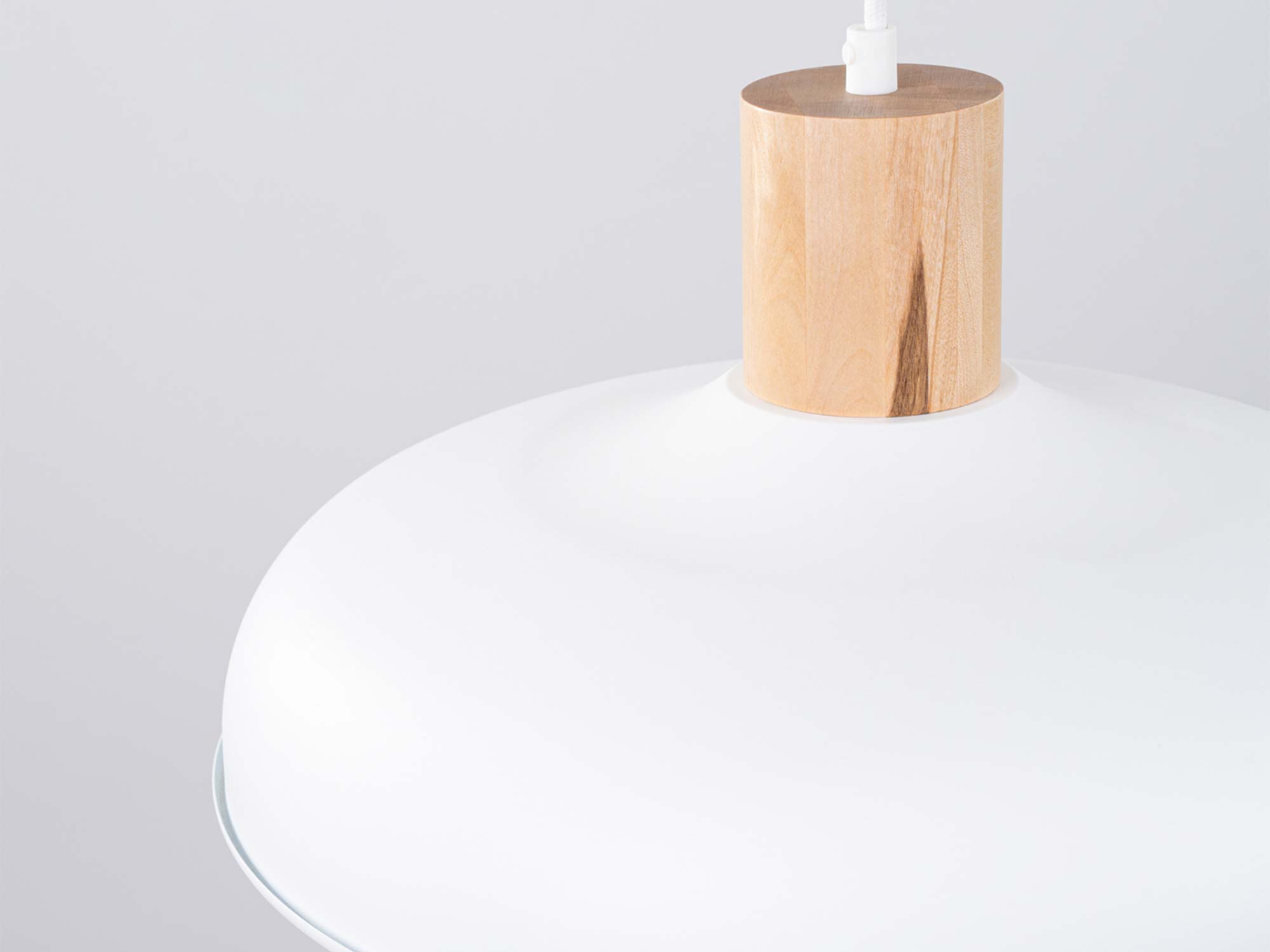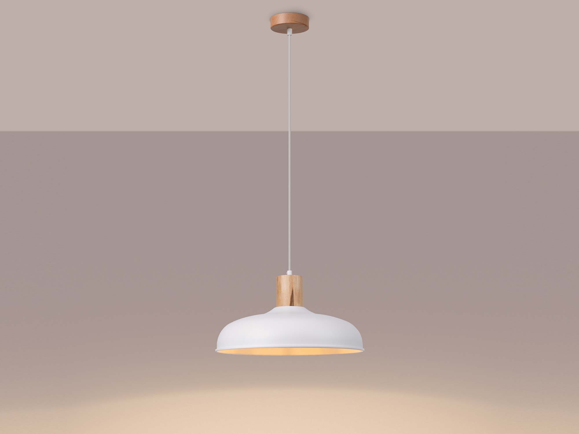 Lampa została wykonana z trwałej stali oraz drewna, co nadaje jej wyjątkowego charakteru i naturalnego akcentu. Zawieszona nad stołem w jadalni, nad wyspą kuchenną lub w centralnym punkcie salonu, tworzy nie tylko źródło światła, ale i dekoracyjny element, który przyciąga wzrok. Jej wysokość całkowita – 120 cm – sprawia, że równomiernie oświetla przestrzeń, zachowując przy tym lekkość wizualną.