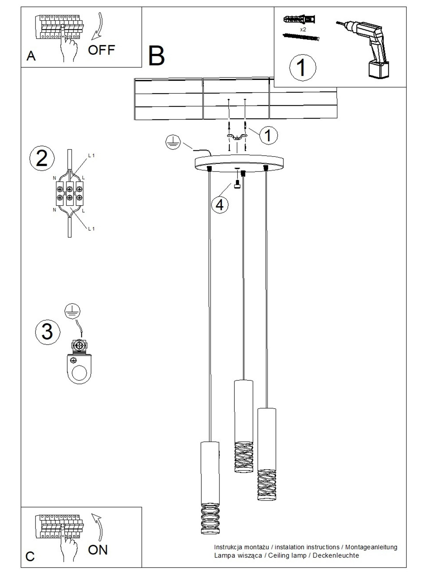 Źródło światła: GU10, 3x max 10W LED, ~230V, 50Hz, IP20, klasa ochronności I