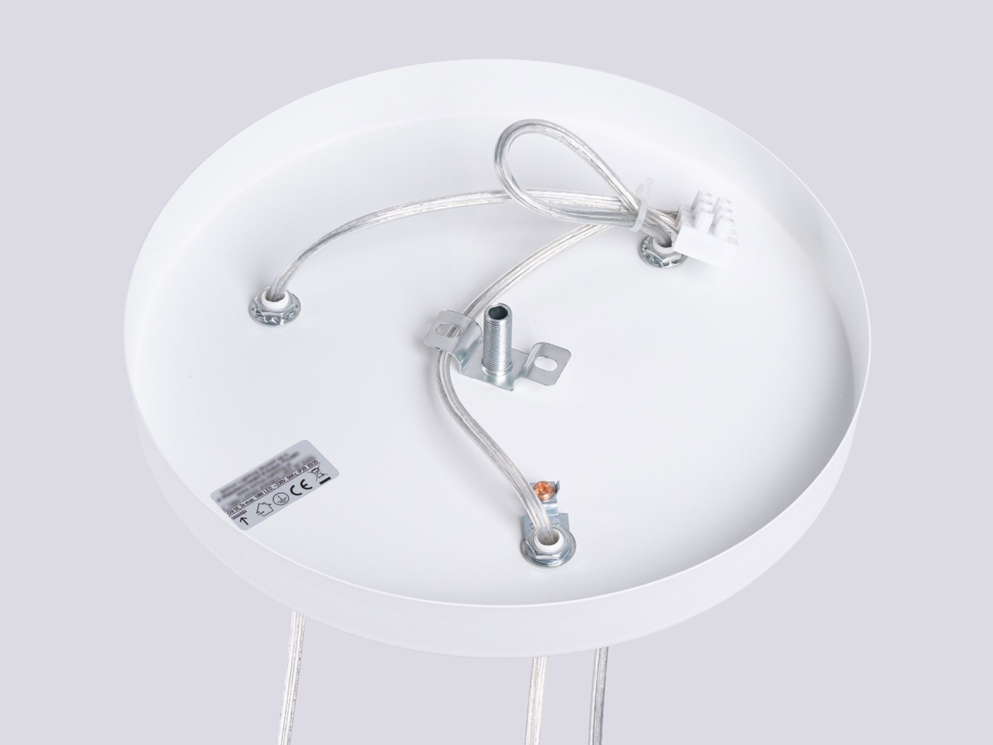- Designerska forma – smukłe klosze i biały kolor pasują do nowoczesnych wnętrz.