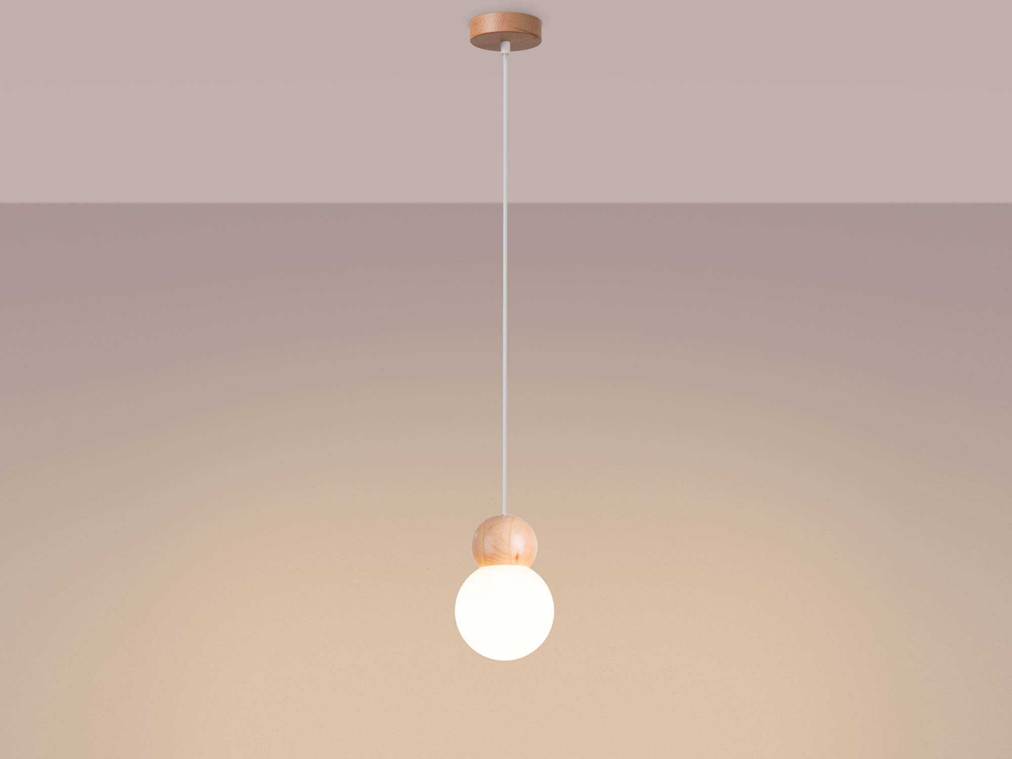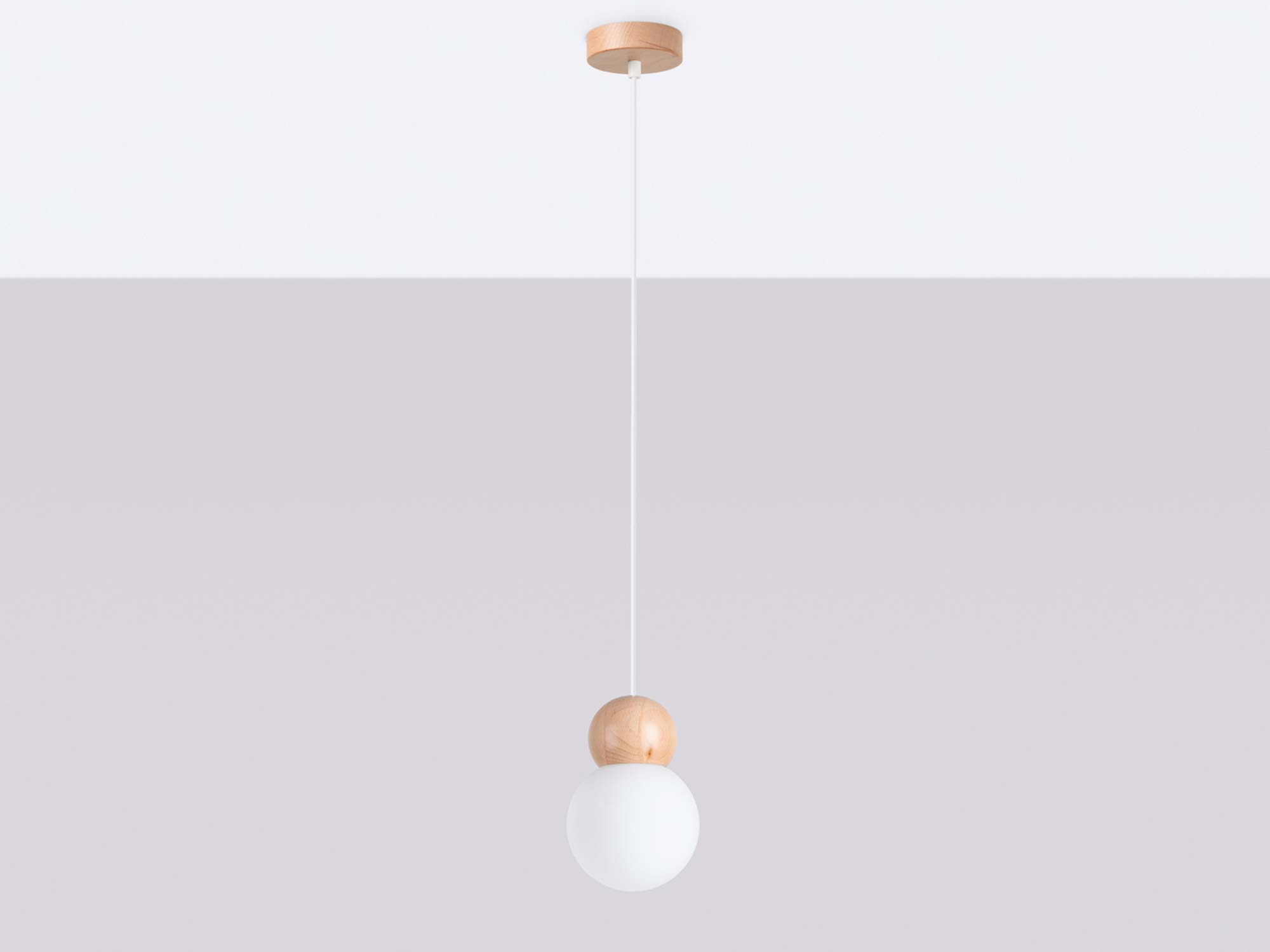 Lampa wisząca PEKTO 1 biała z naturalnym drewnem