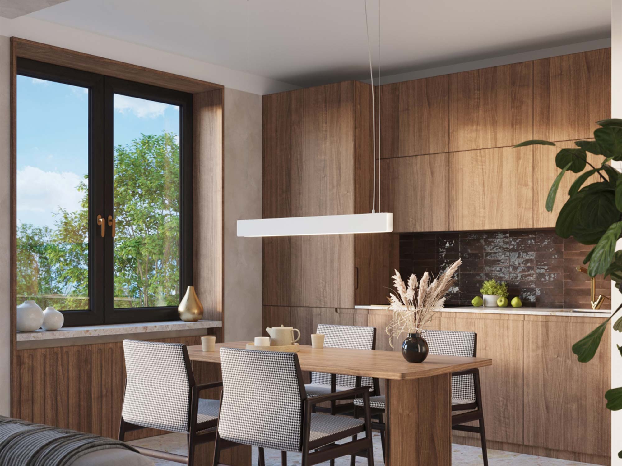Lampa SPARQ znakomicie sprawdzi się w kuchni, jadalni, biurze czy nad stołem w salonie. Jej podłużna forma równomiernie rozświetla większe powierzchnie, a wysokość zawieszenia można dostosować do indywidualnych potrzeb. To produkt, który łączy piękno minimalistycznego designu z praktycznym zastosowaniem w codziennym życiu.