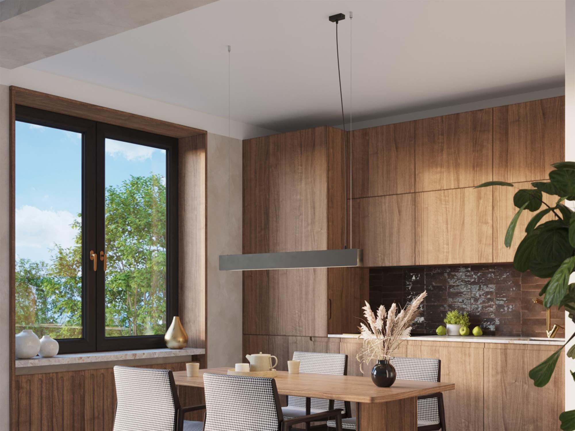 Lampa wykorzystuje źródło światła LED G13 o mocy 14W, które emituje jasność na poziomie 1200 lm. Barwa światła 3000K wprowadza do wnętrza ciepły, przytulny klimat. Co ważne, źródło LED jest w komplecie – od razu po montażu lampa jest gotowa do użycia. Jej podłużna forma sprawia, że idealnie nadaje się do oświetlenia większych powierzchni – stołu w jadalni, wyspy kuchennej czy biura.