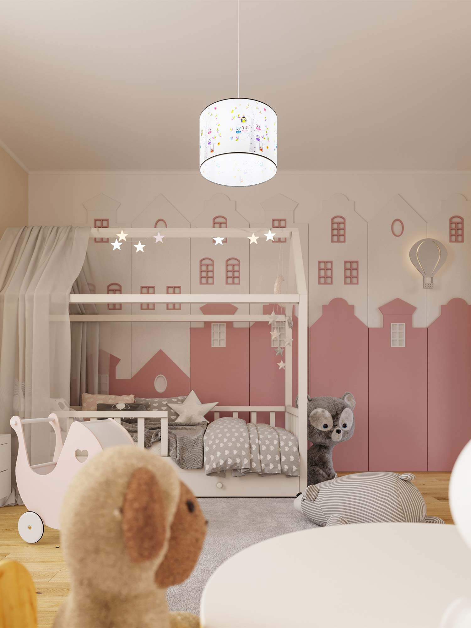 Lampa STRIGO 30 nie jest jedynie praktycznym elementem wyposażenia. To dekoracyjny akcent, który wnosi do przestrzeni lekkość i artystyczny sznyt. Wielokolorowy klosz przełamuje monotonię, tworząc intrygujące refleksy świetlne, które potrafią zupełnie odmienić atmosferę wnętrza.