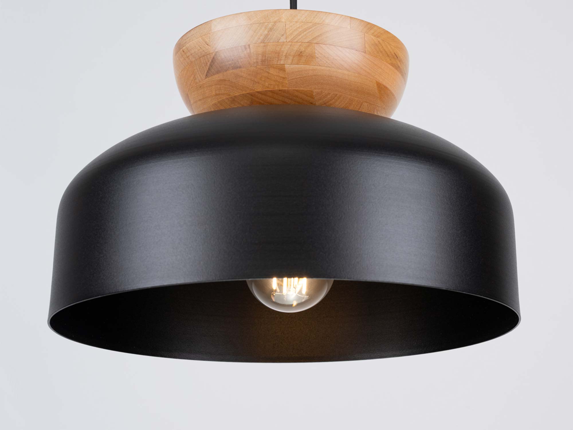 Lampa wisząca MARLA czarna loftowa to kwintesencja stylu industrialnego – czarny, matowy klosz zestawiony z detalami z naturalnego drewna tworzy kompozycję pełną elegancji i charakteru. To rozwiązanie idealne dla osób, które pragną dodać swoim wnętrzom wyjątkowej głębi i designerskiego klimatu.