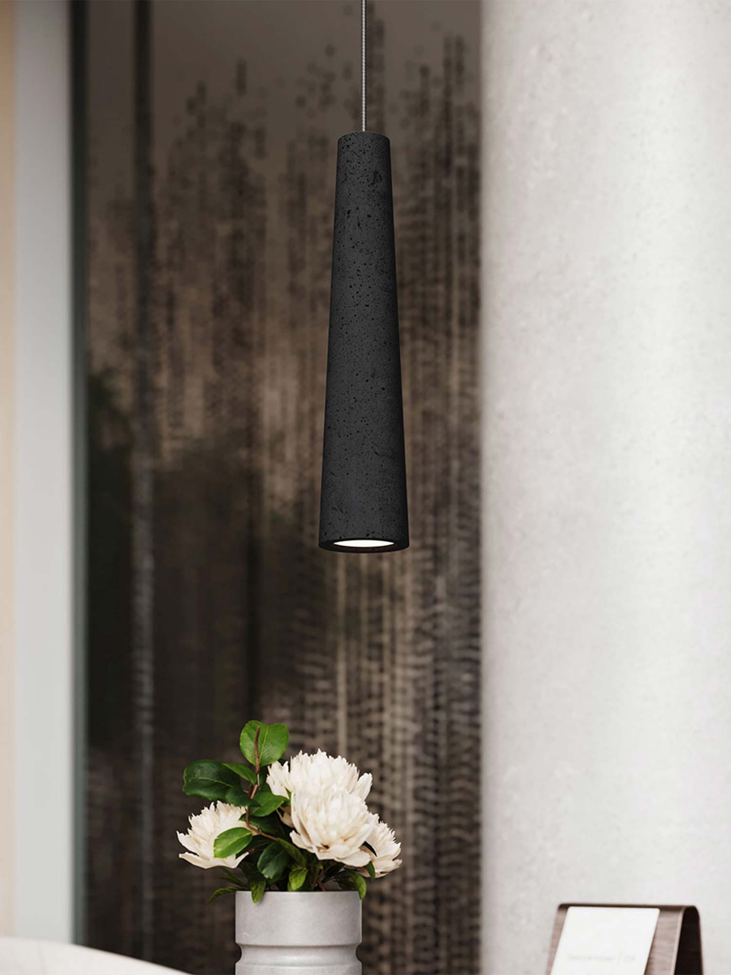 Beton i czerń to duet, który od lat inspiruje projektantów wnętrz. W lampie wiszącej MONOLIT zestawienie to osiągnęło perfekcję – prosty, geometryczny kształt klosza, ręcznie wykończona powierzchnia betonu i elegancki kolor sprawiają, że jest to produkt wyjątkowy. Każda lampa ma swój niepowtarzalny rysunek materiału, co oznacza, że w Twoim domu zawiśnie detal jedyny w swoim rodzaju.