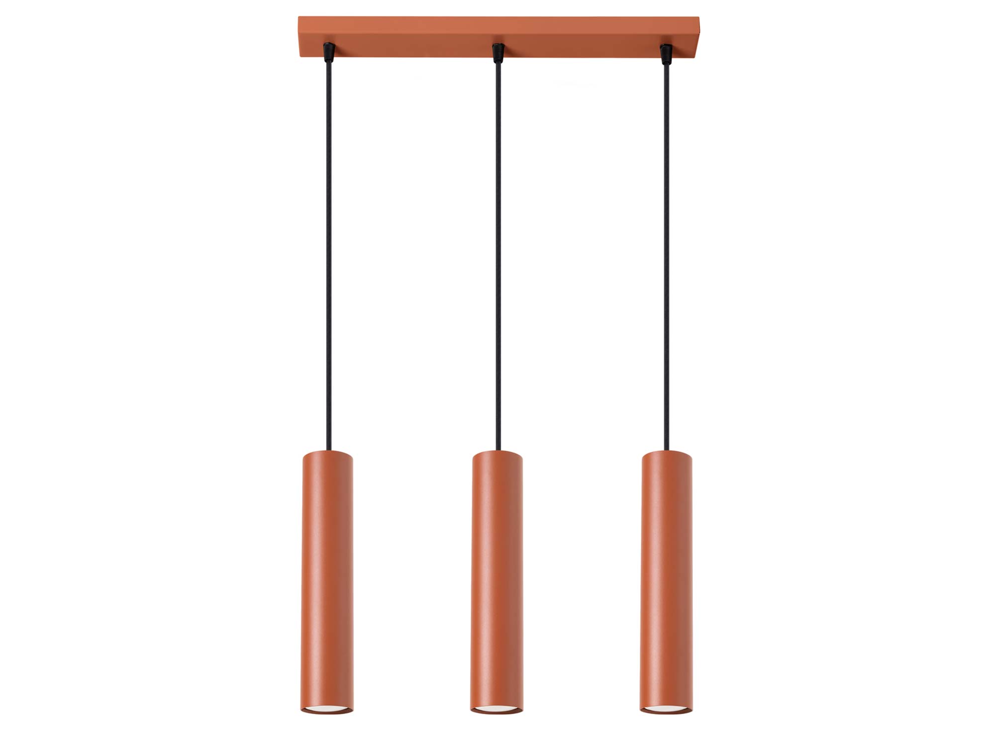 Nowoczesne wnętrza kochają proste formy i nietuzinkowe akcenty. Lampa NOVEL 3L w kolorze ochry czerwonej łączy oba te elementy. Trzy smukłe klosze (6/30 cm) zawieszone na podsufitce o długości 45 cm tworzą kompozycję, która równocześnie zdobi i oświetla przestrzeń. Z jednej strony – prostota i minimalizm, z drugiej – śmiały kolor, który przyciąga wzrok i dodaje charakteru.