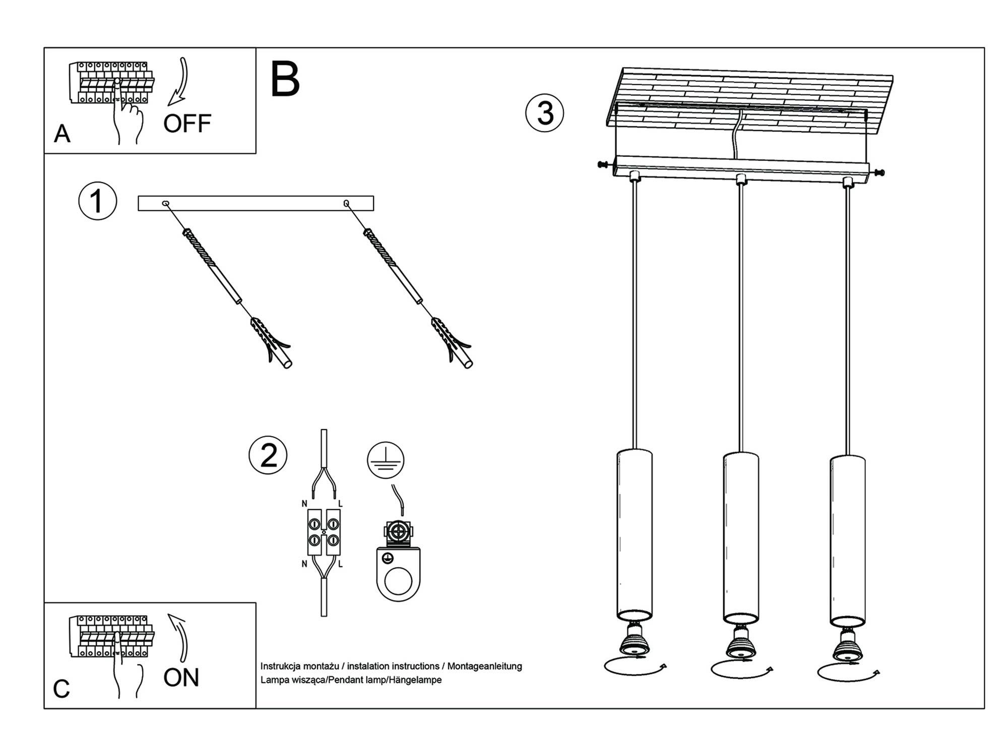 - Ilość źródeł światła: 3