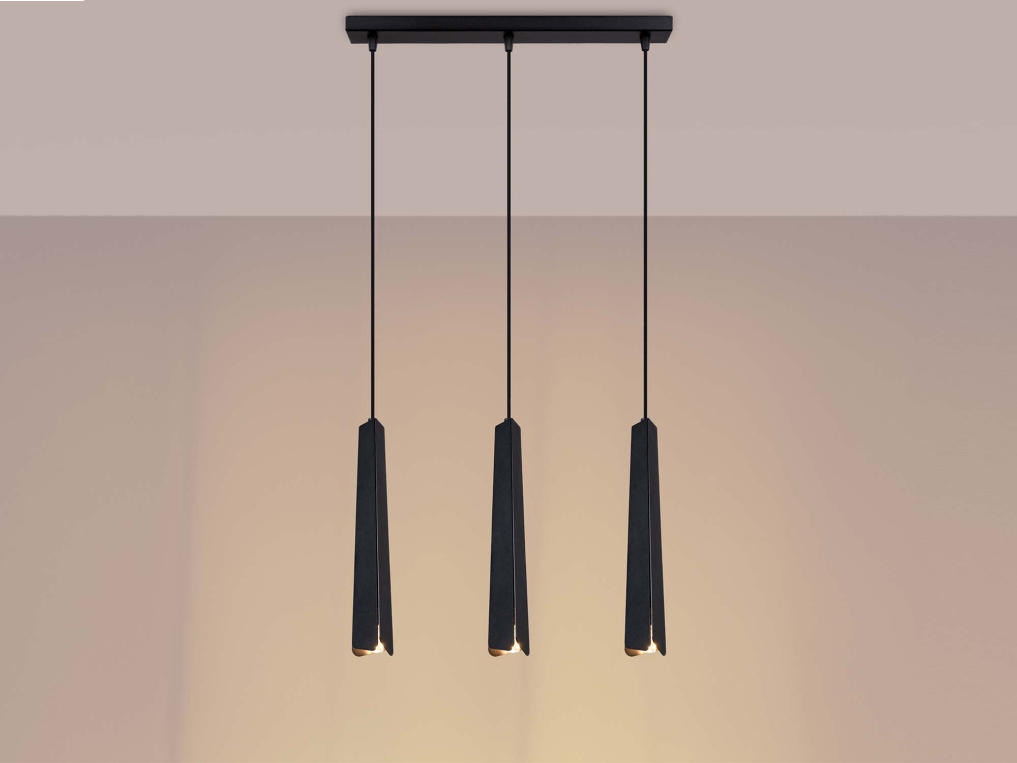 Geometryczna forma modelu PRISMA 3L to odpowiedź na potrzeby współczesnych wnętrz. Minimalizm w połączeniu z czarnym wykończeniem sprawia, że lampa staje się uniwersalnym dodatkiem do wielu aranżacji. Świetnie prezentuje się w nowoczesnych salonach, jadalniach, kuchniach, a także w przestrzeniach biurowych czy loftowych. Jej smukłe klosze o wymiarach 5/5/34 cm nadają wnętrzu lekkości, jednocześnie podkreślając jego nowoczesny charakter.