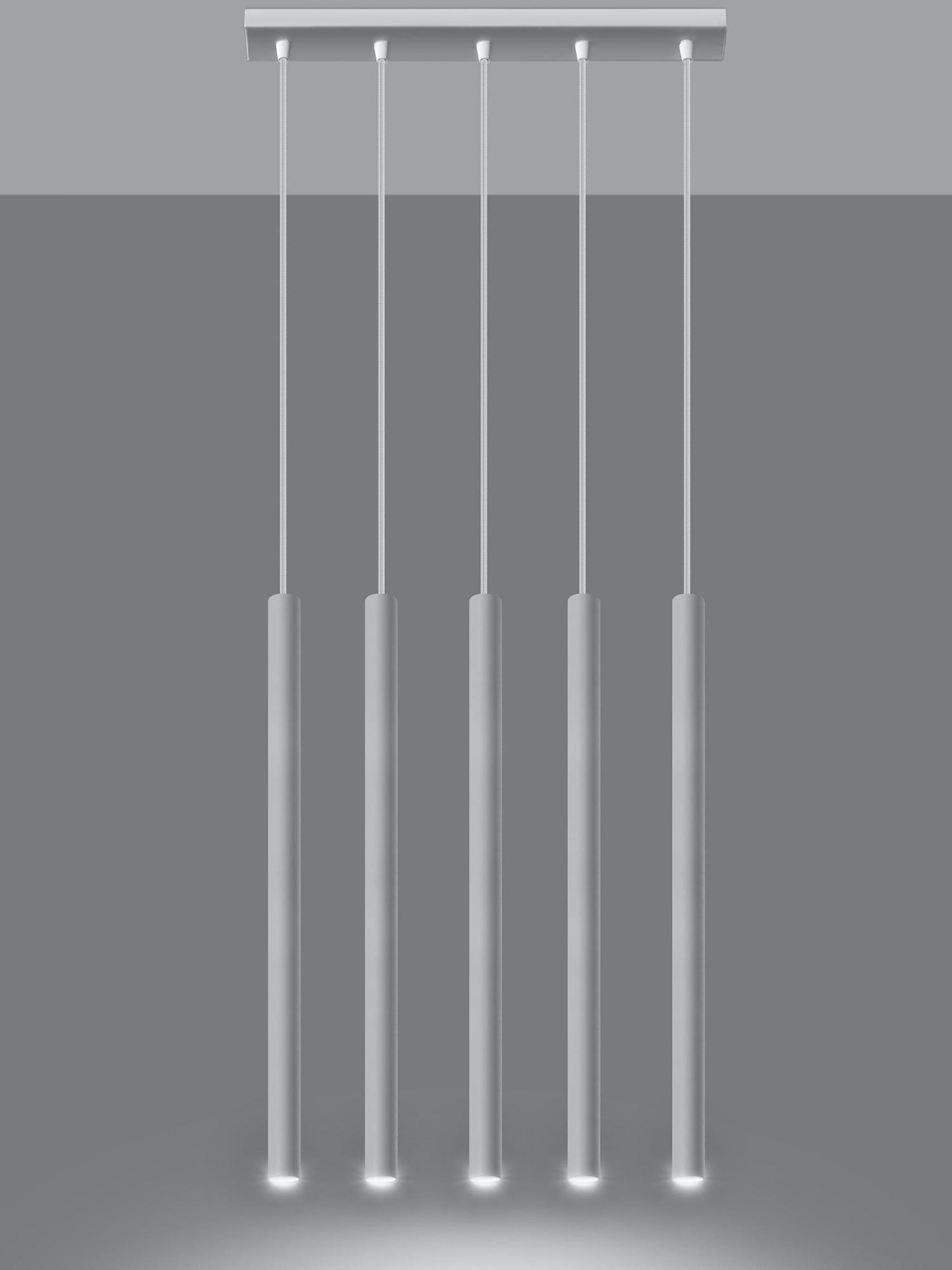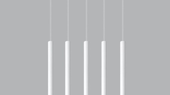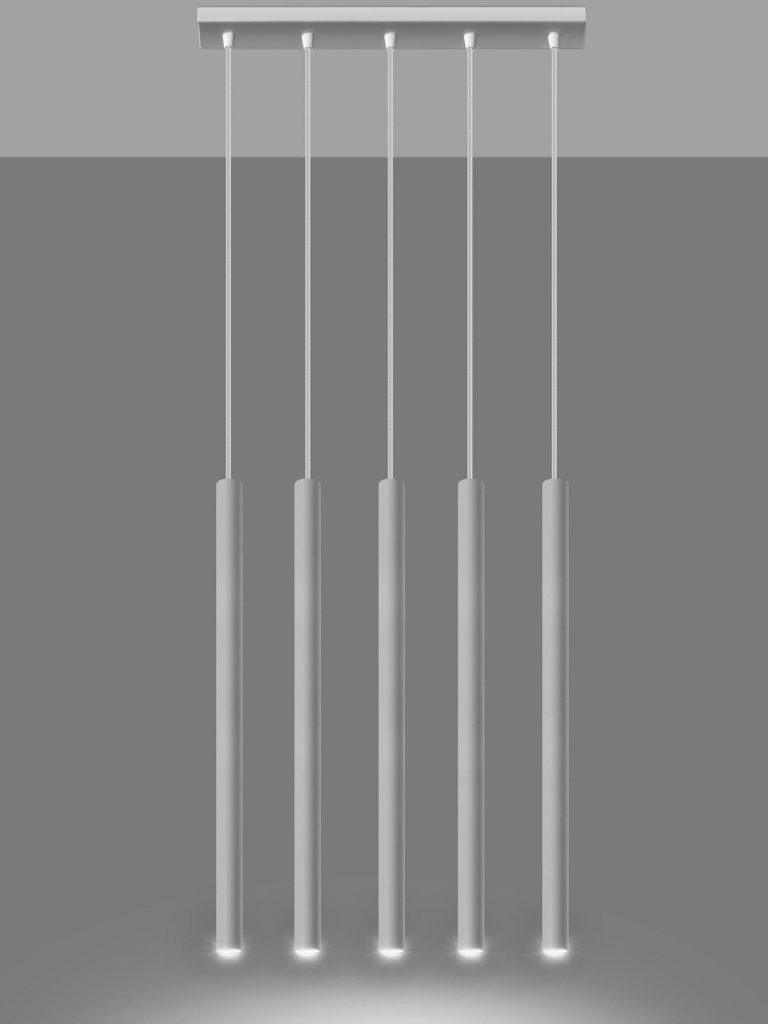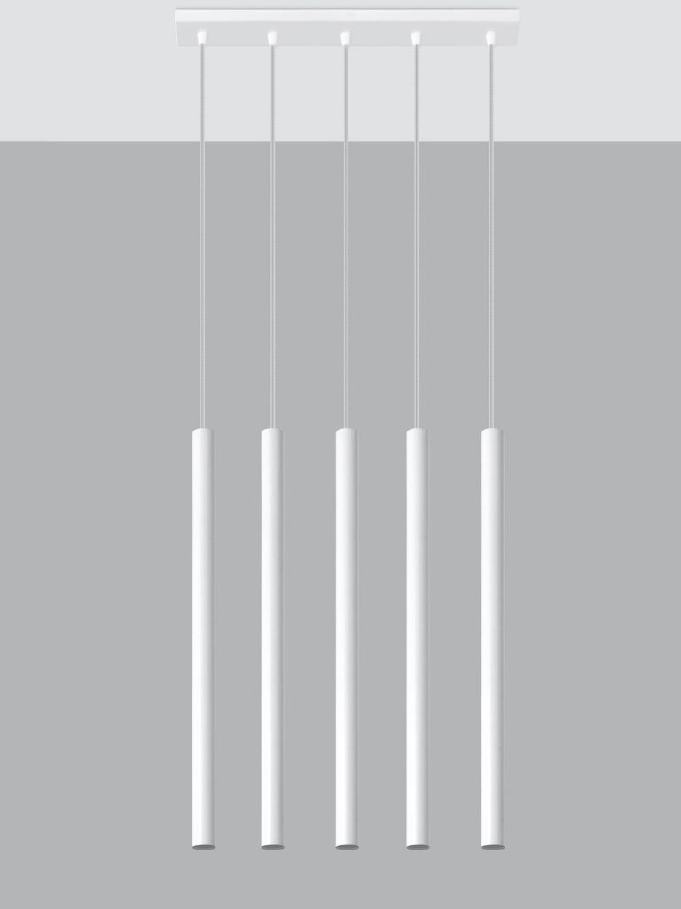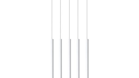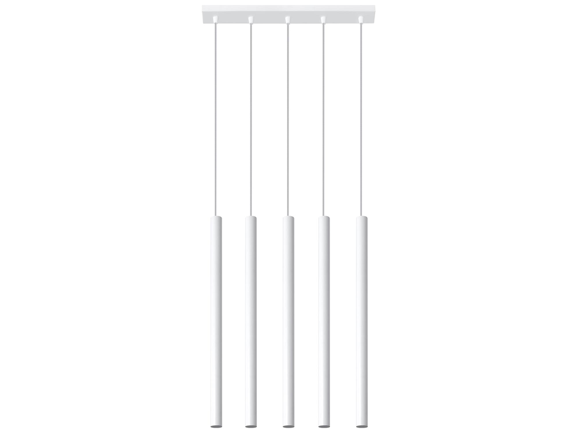 PERSEO 5 – Biała lampa wisząca ze stali: pięć punktów światła, które porządkują przestrzeń i budują nastrój