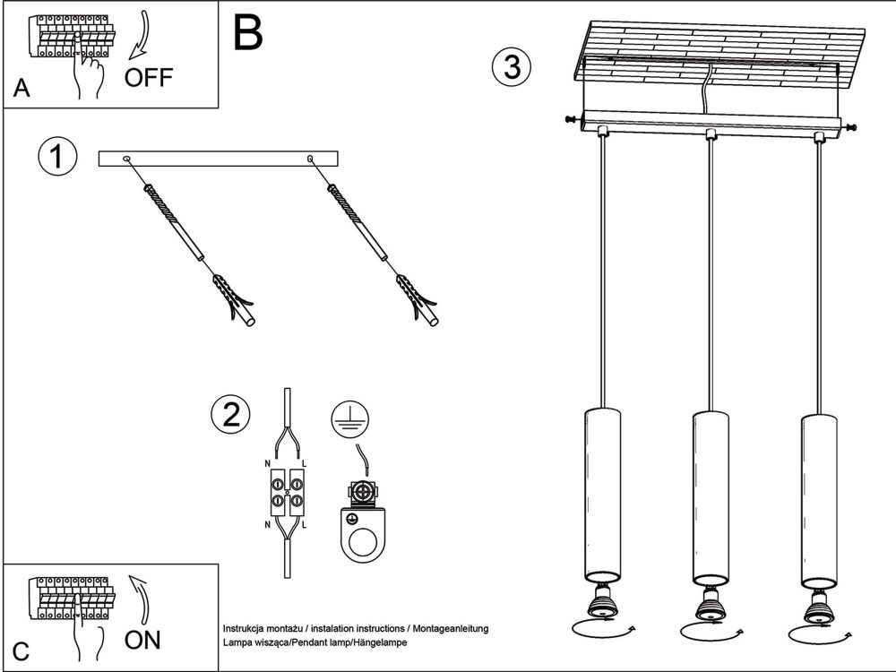 Źródło światła: GU10, 3x max 10W LED, ~230V, 50Hz, IP20, klasa ochronności I