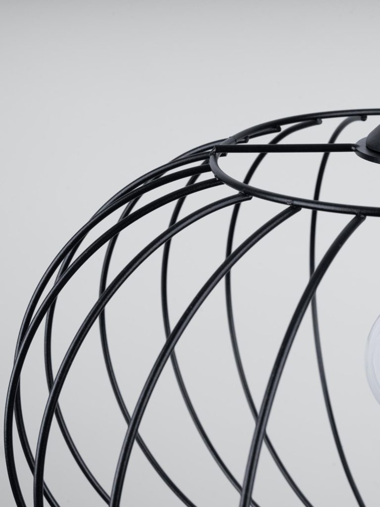 Zbliżenie na metalową konstrukcję lampy kulistej – czarny drut