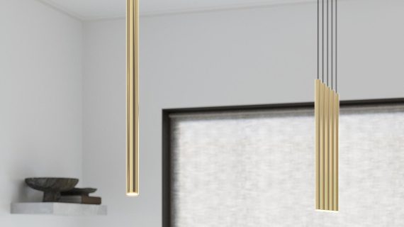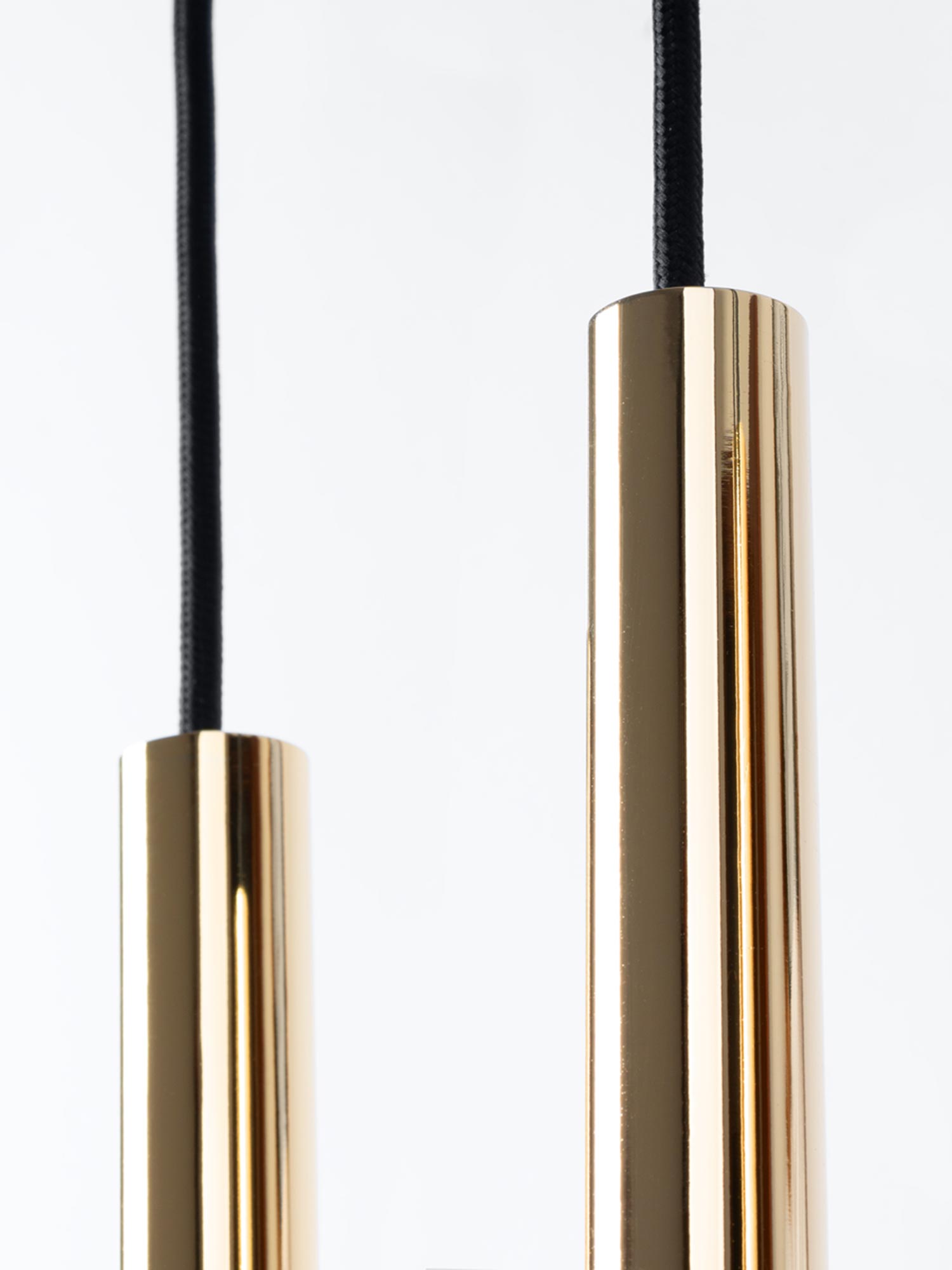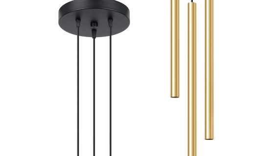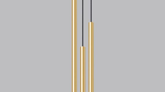 Złote lampy – trzy tuby zawieszone blisko siebie