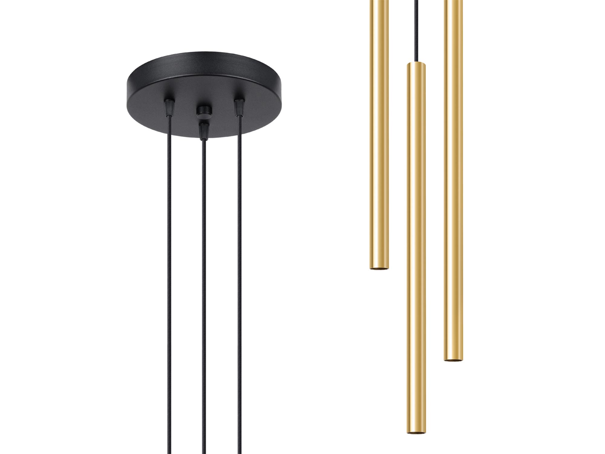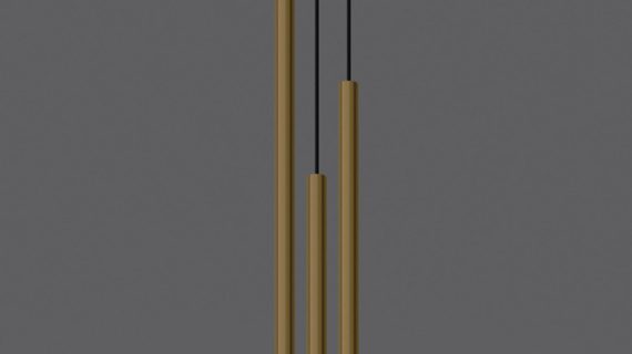 Złote tuby na ciemnym tle – trzy lampy świecące punktowo