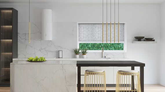 Kuchnia z pięcioma złotymi lampami – aranżacja wnętrza