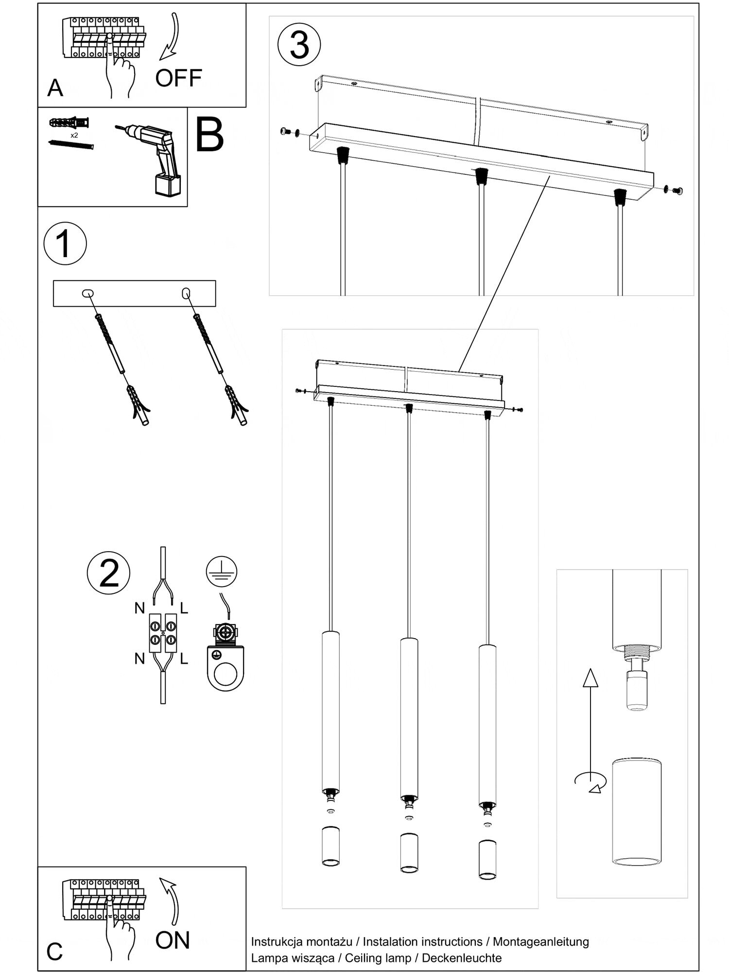 Elegancka Lampa Wisząca 3 Źródła Światła WIND: Połączenie Praktyczności i Nowoczesności