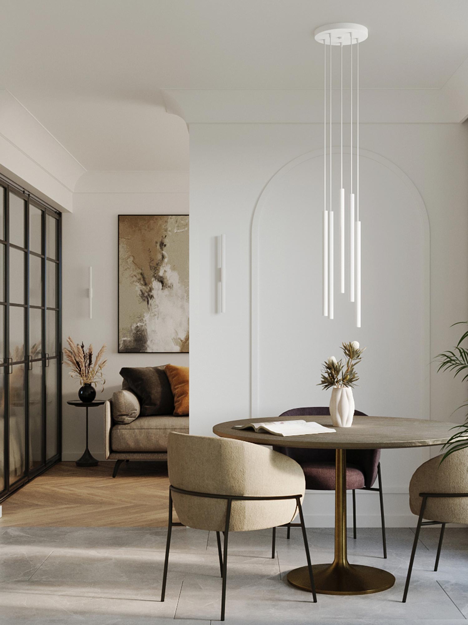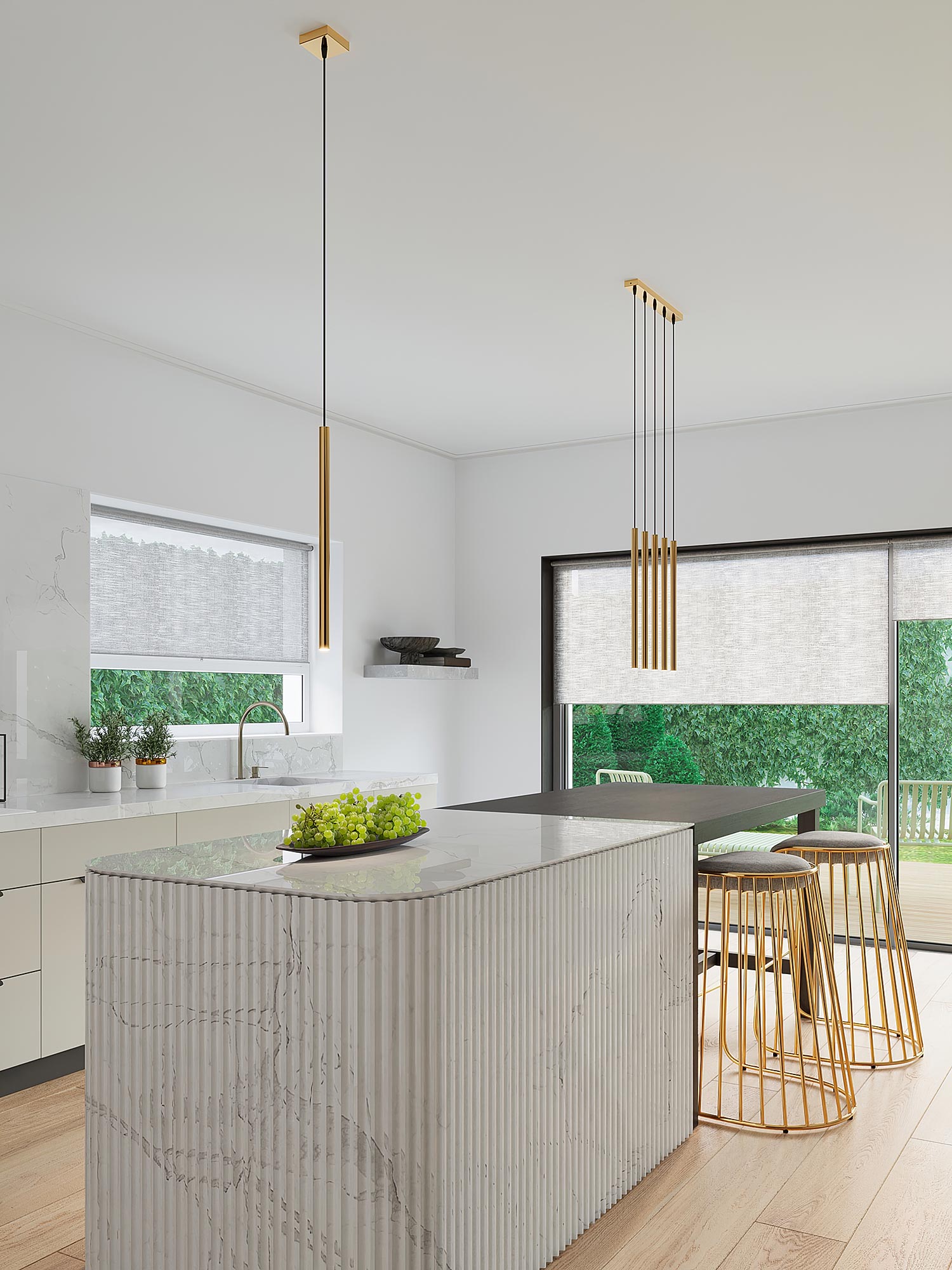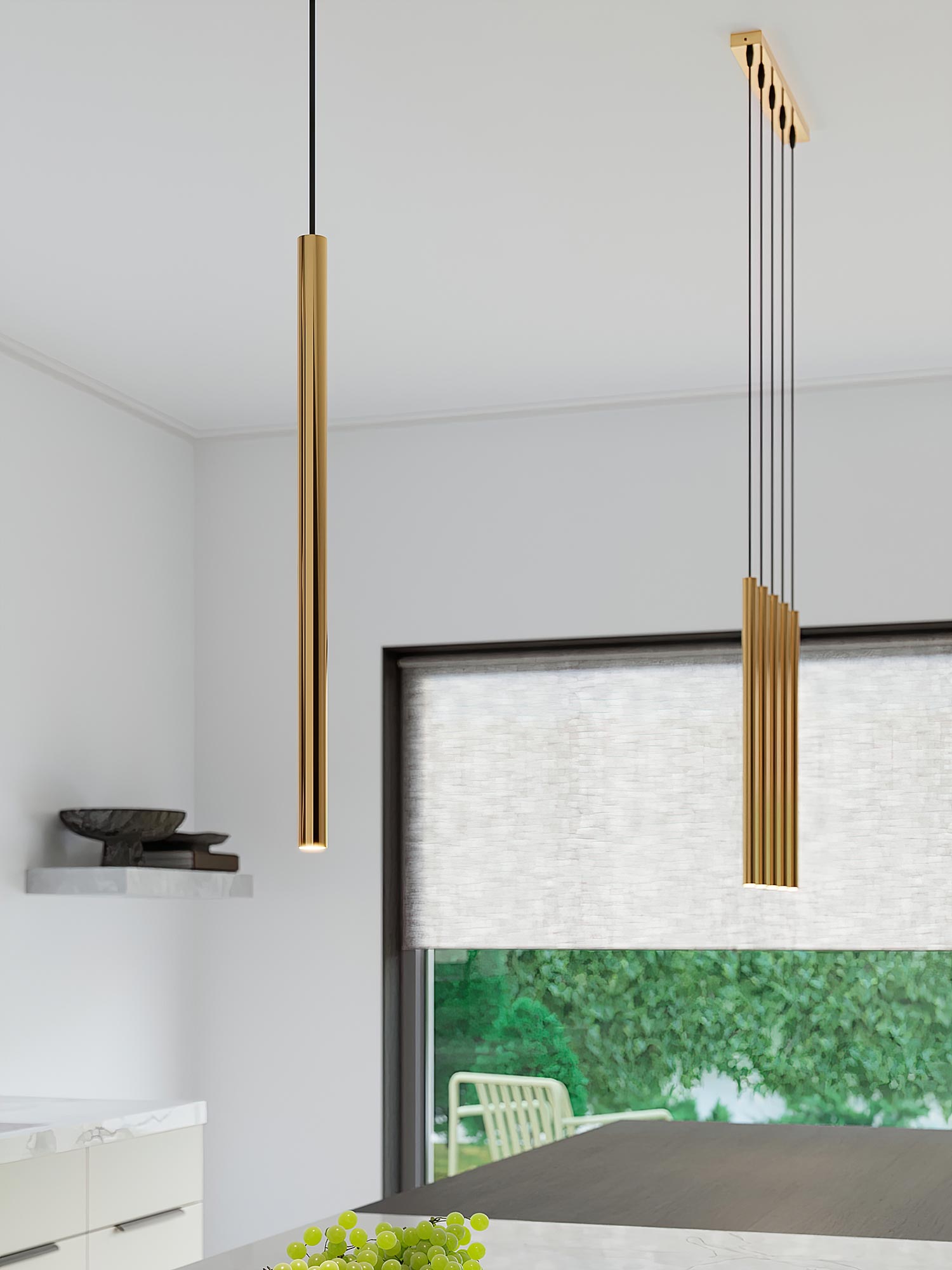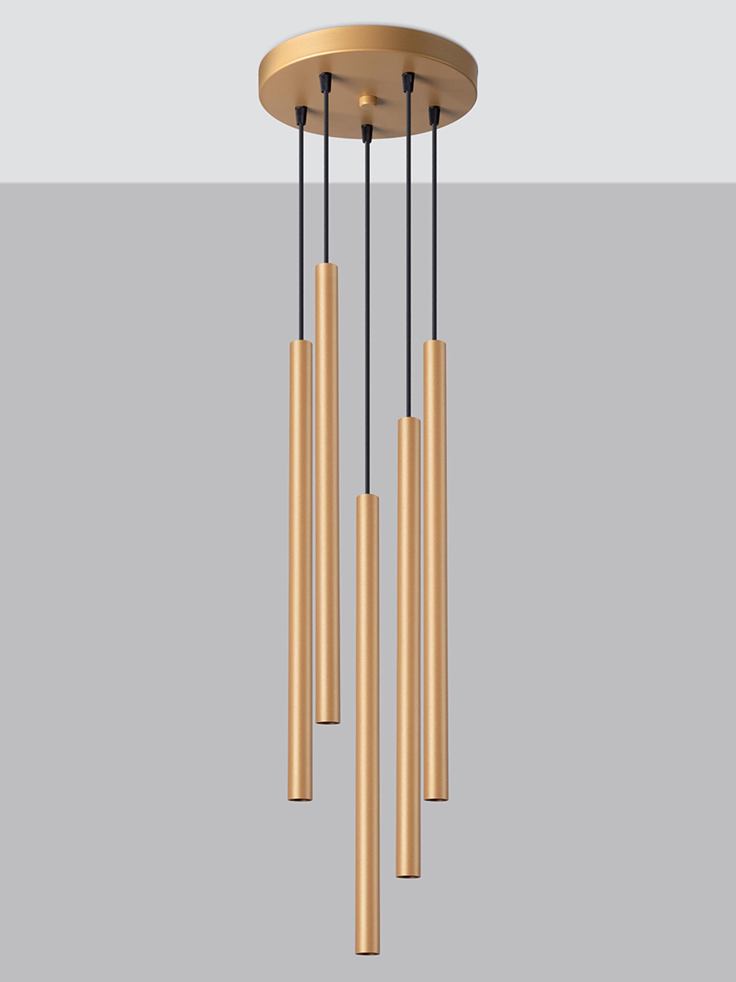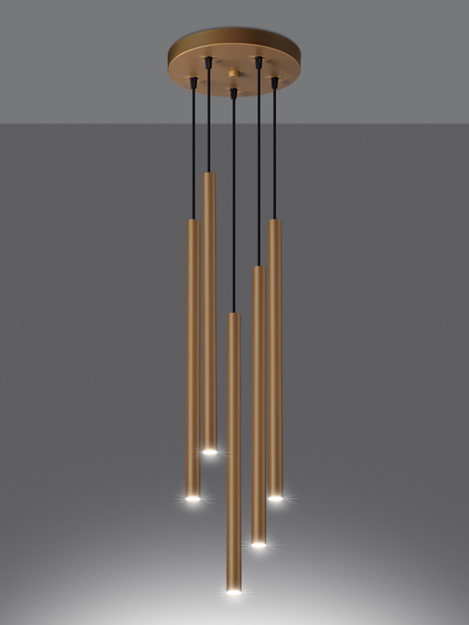 Wyobraź sobie wieczór, w którym ciepłe, luksusowe złoto delikatnie rozświetla Twój salon. AUREO 5P to lampa wisząca, która łączy geometryczną elegancję z nowoczesnym minimalizmem. Zainspirowana estetyką kolekcji FABIANO, łączy stal i szkło w spójną kompozycję pięciu punktów światła na trzonkach G9. To wybór dla osób, które chcą dodać wnętrzu nutę glamour, lecz bez przesady — subtelnie, ponadczasowo i z klasą. Pięć źródeł światła LED (do 8 W każde) pozwala stworzyć nastrojowe, komfortowe oświetlenie, które podkreśli faktury tkanin, barwy ścian i piękno dodatków. Jeśli kochasz estetyczne rozwiązania do domu, AUREO 5P sprawi, że Twoje wnętrze będzie wyglądało tak dobrze, jak się czujesz.
